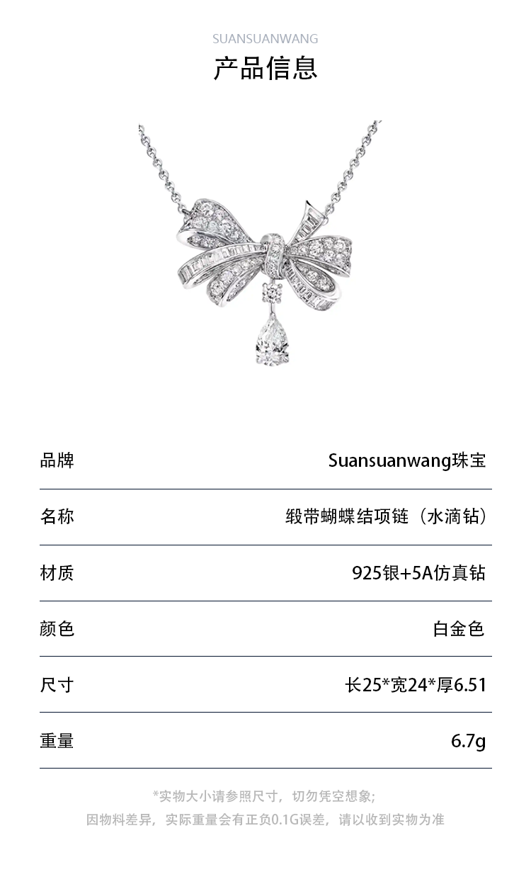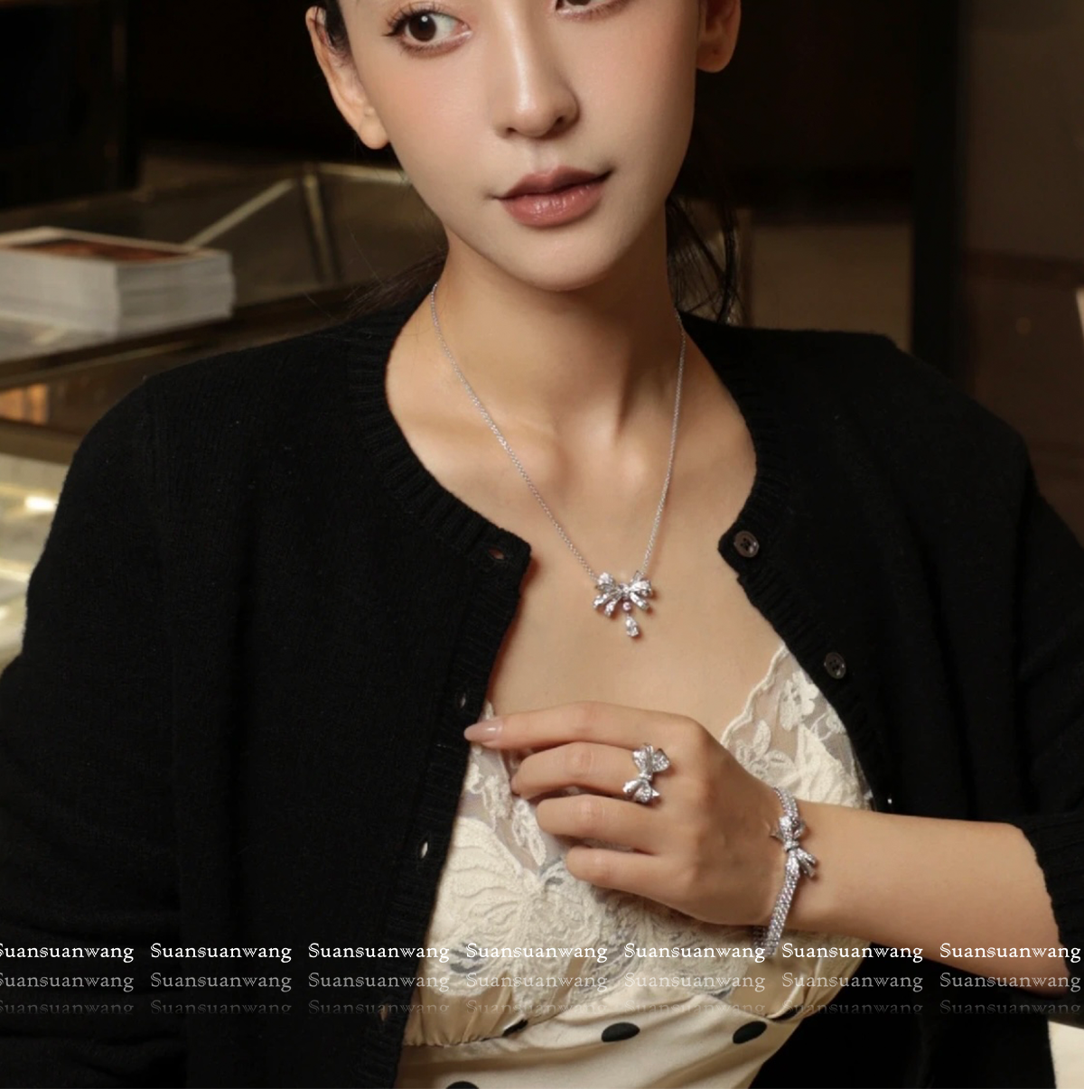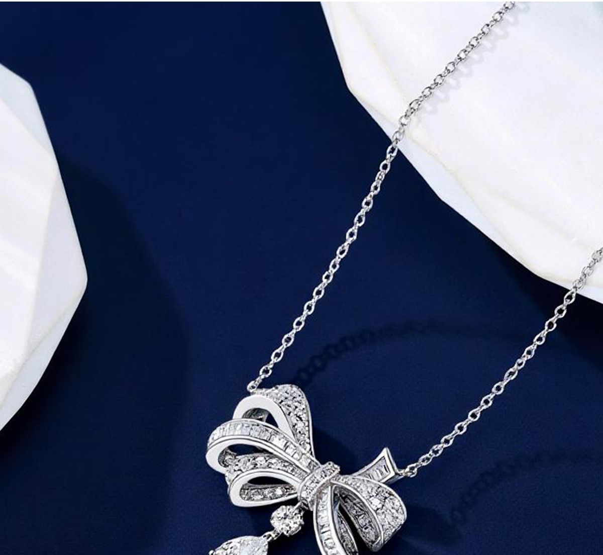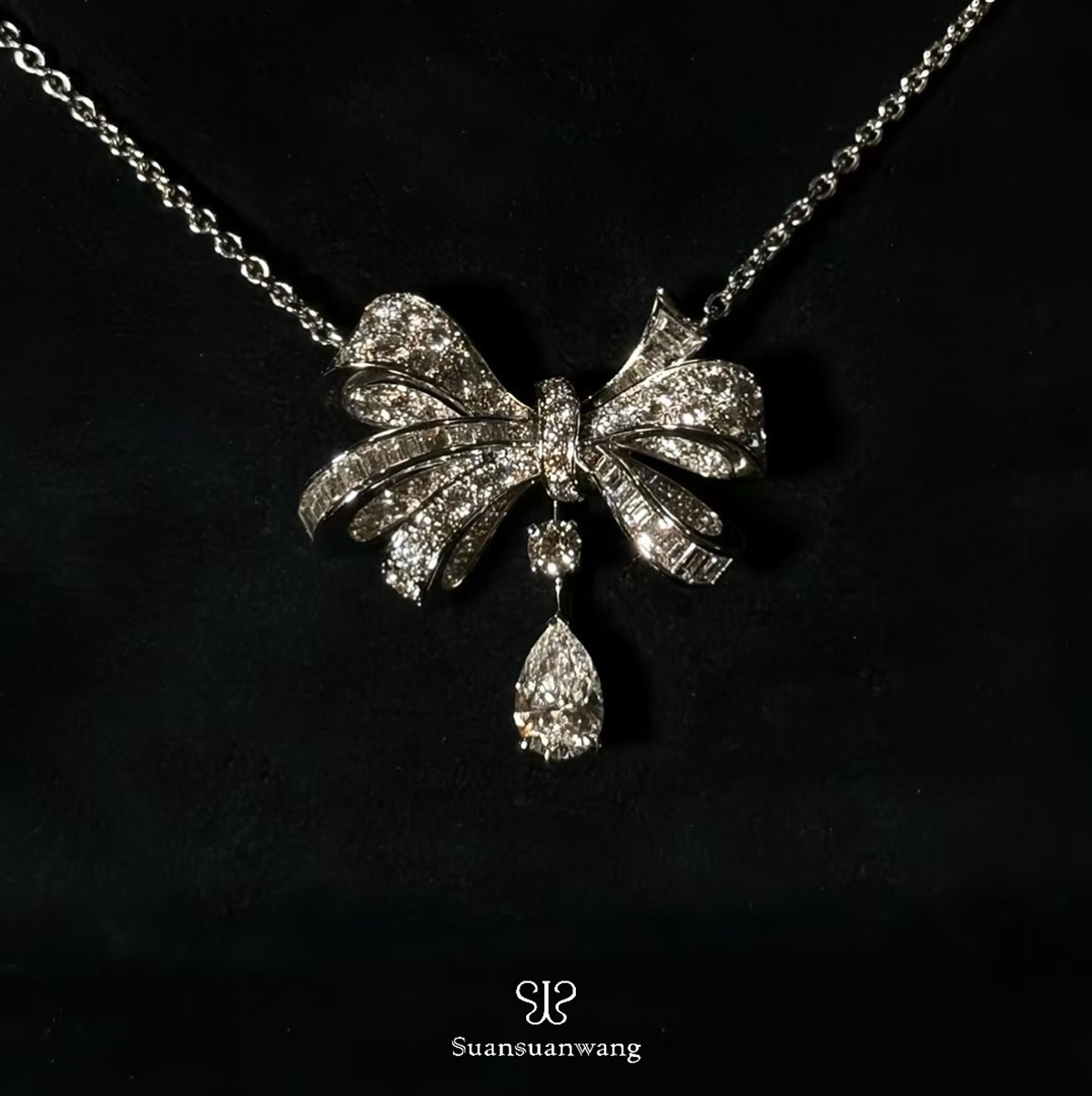 Heavy Craft Jewelry · Bowknot Water Drop Necklace Sweet and Light Luxury Bow Clavicle Chain for Women Light Luxury Full of Diamonds