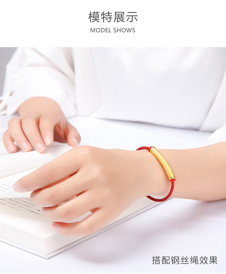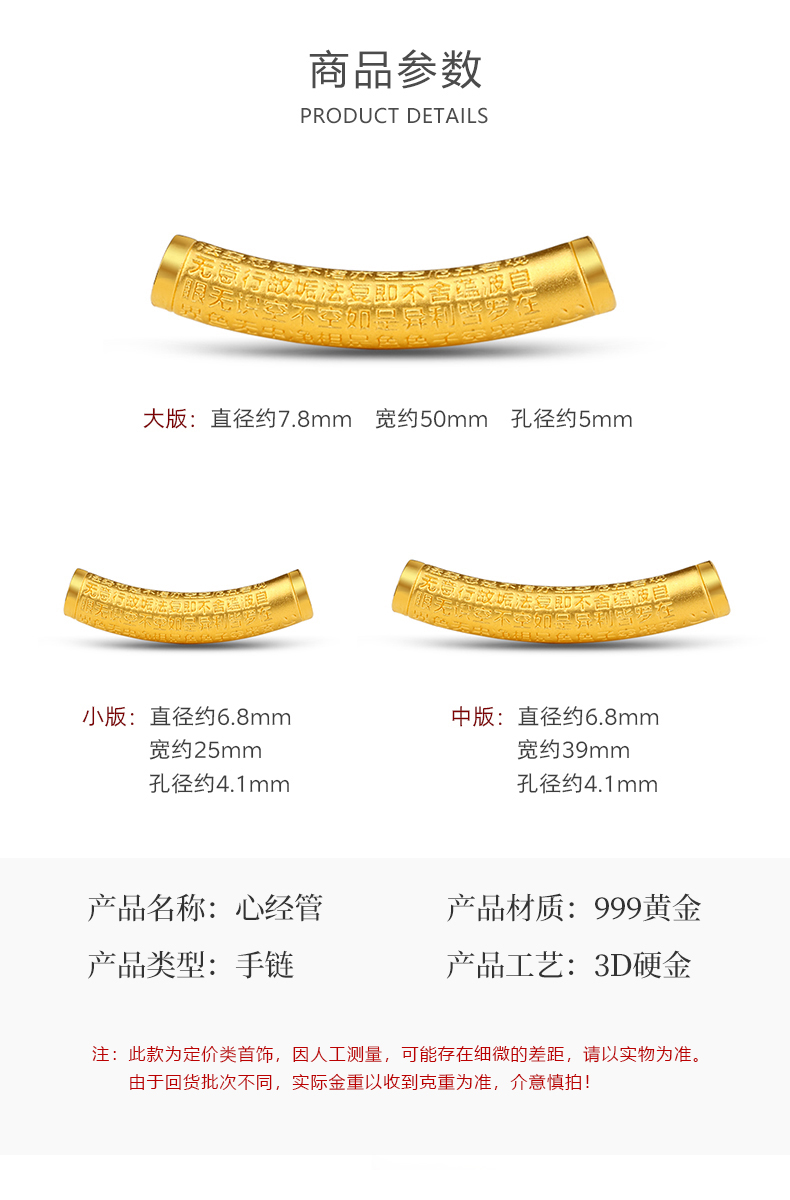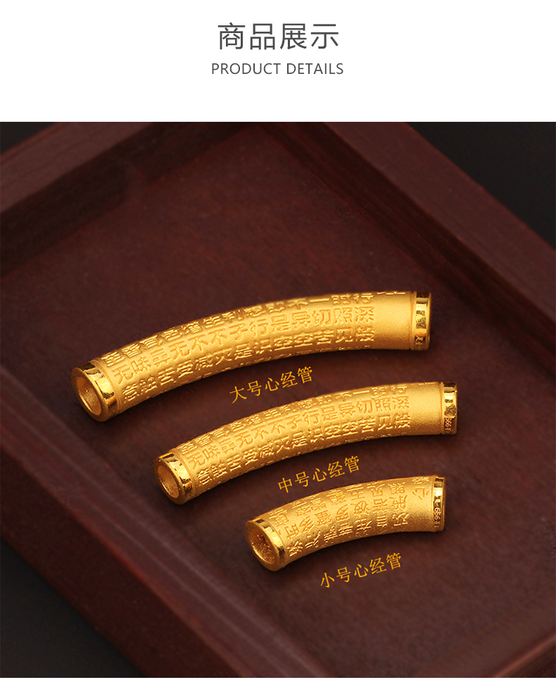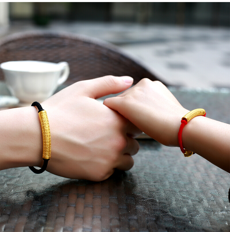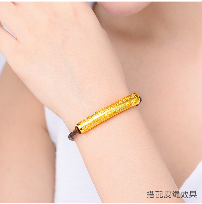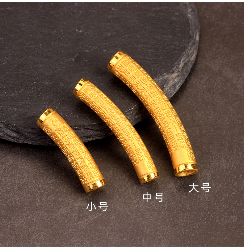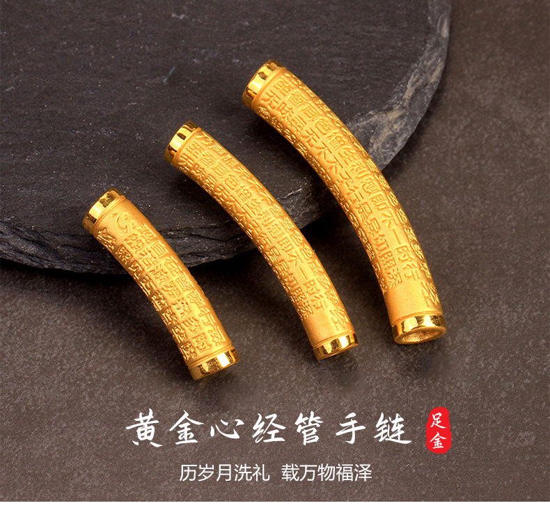 999 Pure Gold Heart Sutra Tube Transfer Bead Gold Six-Character Mantra Curved Tube Bead 3D Hard Gold Zodiac Year Red String Bracelet