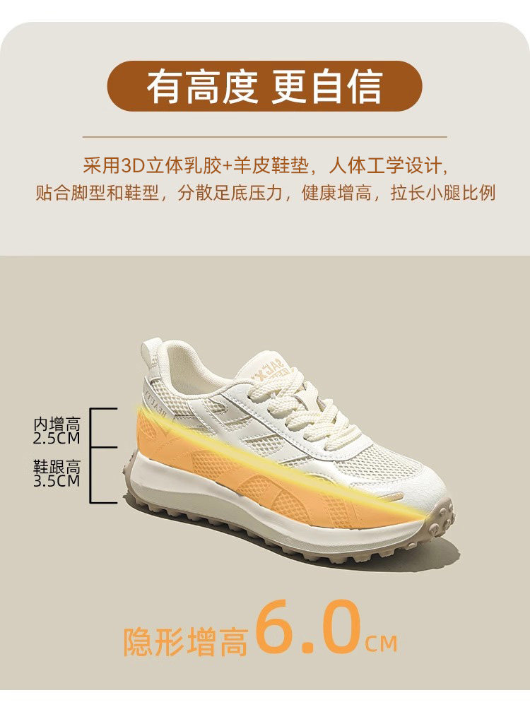 Hong Kong Fashionable Breathable Mesh Forrest Gump Shoes for Women 2026 Spring and Autumn New Simple Thick-Soled Sports Height-Increasing White Sneakers