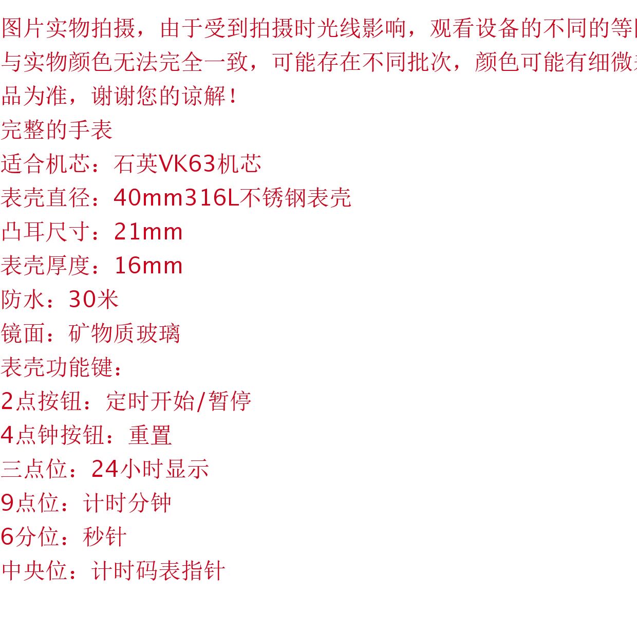 Watch Quartz Chronograph Black Vk63 Movement 39mm Case Mineral Multifunctional Stainless Steel