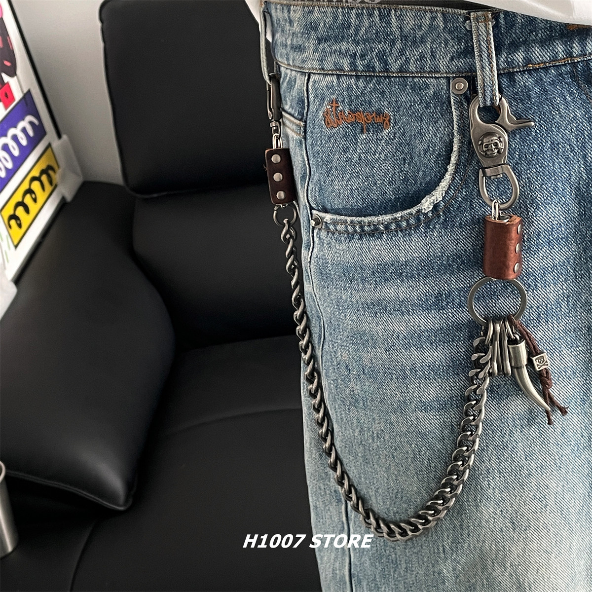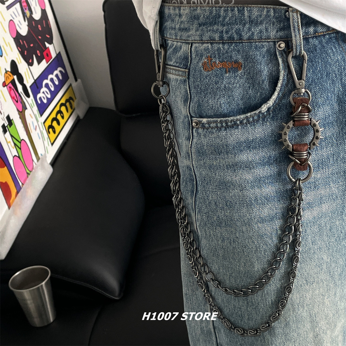 New Vintage Distressed American-Style Chain Men's Pants Chain Women's Niche Design Waist Chain Hip-Hop Jeans Cargo Pants Chain