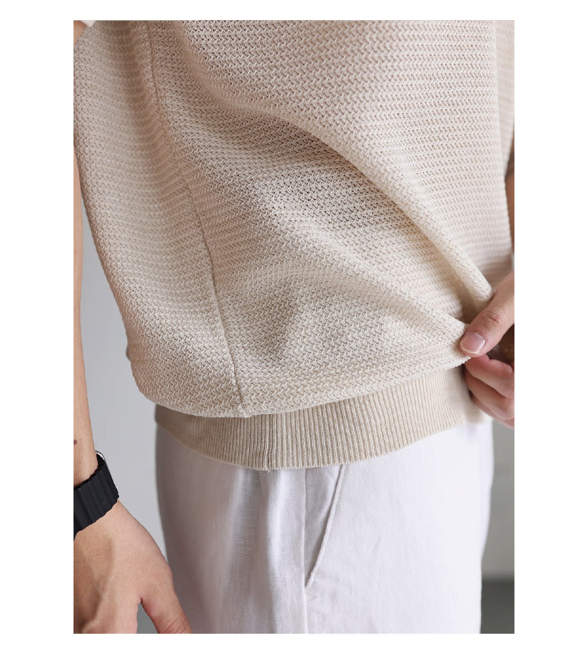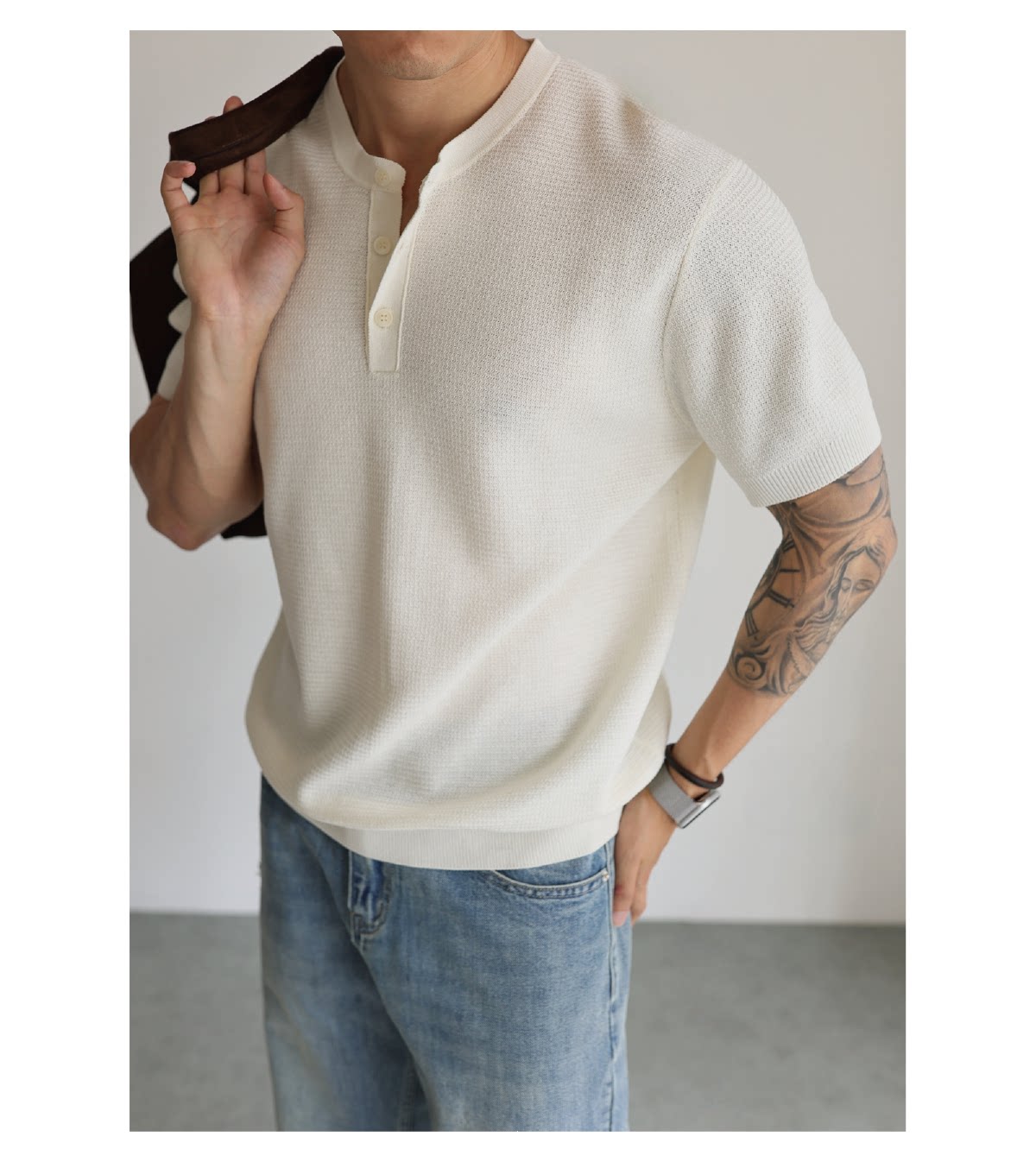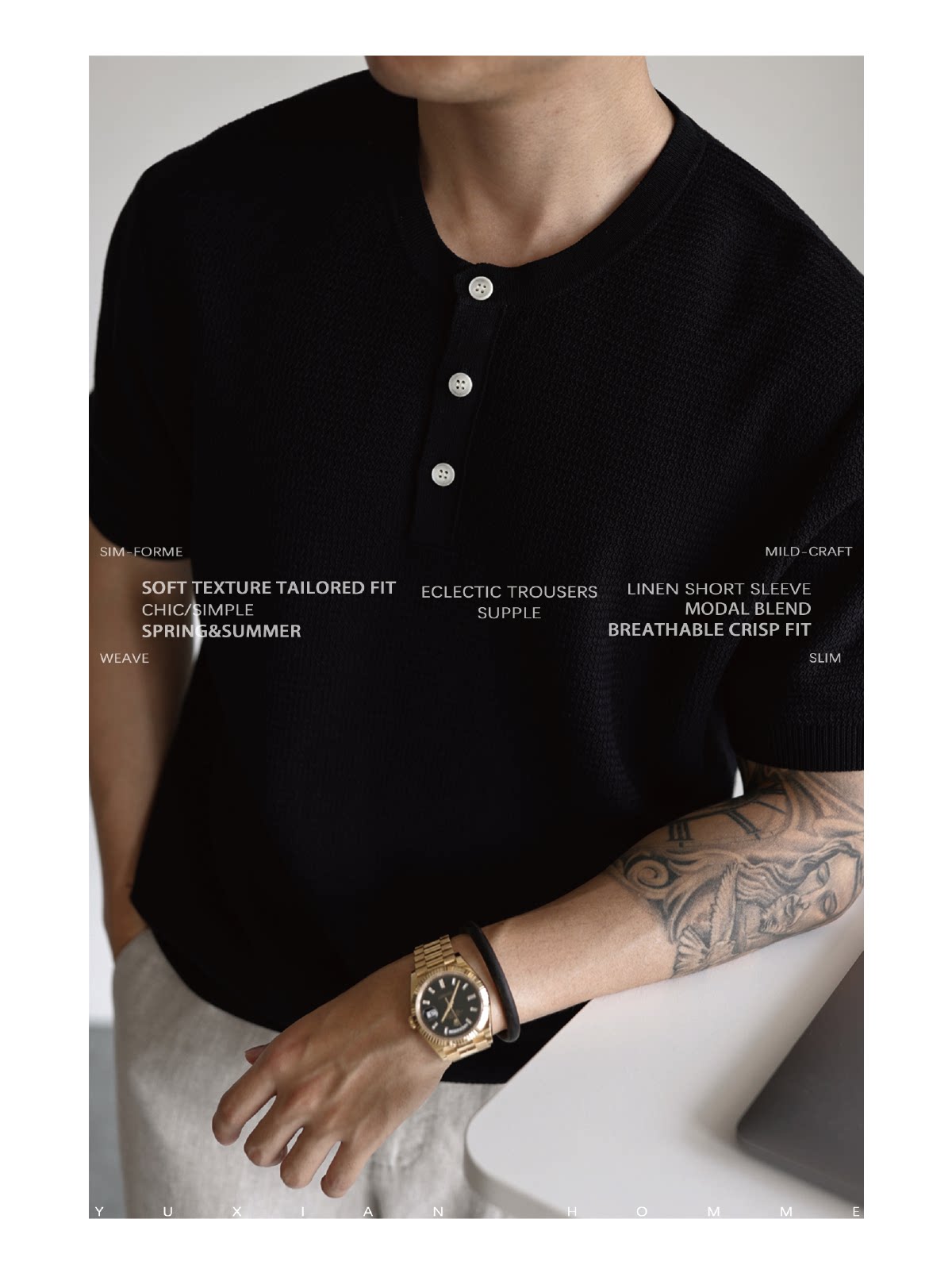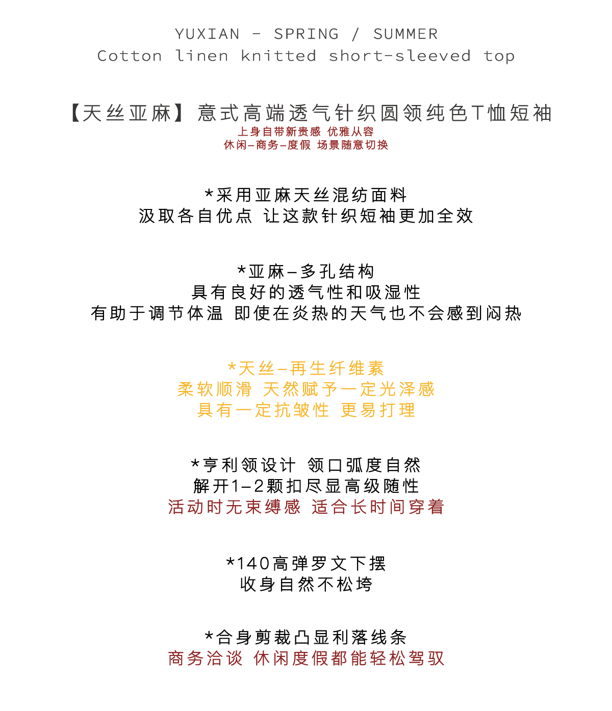 [Tencel Linen] Italian-Style Breathable Natural Linen Blend Henry Collar Knitted Short-Sleeve Casual Business T-Shirt for Summer