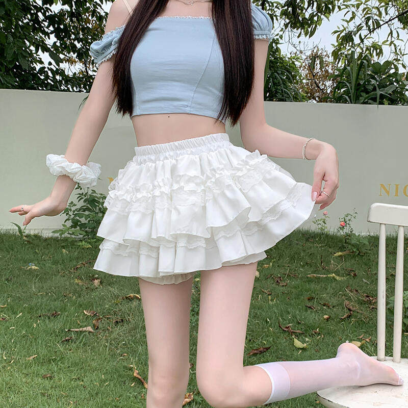 Sweet White Lace Cake Tutu Skirt for Women, A-Line Skirt, High-Waisted, Slimming, Anti-Exposure, Ballet Style Short Skirt