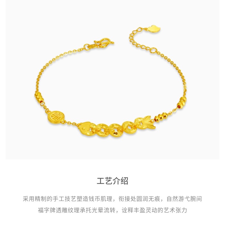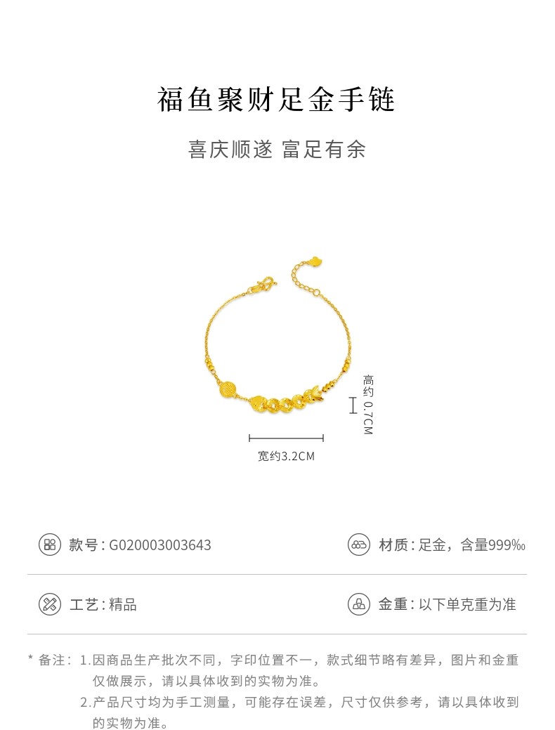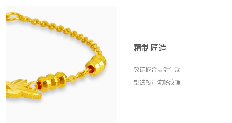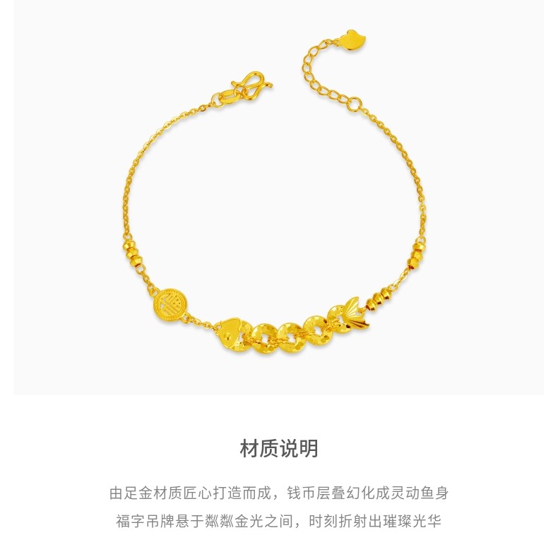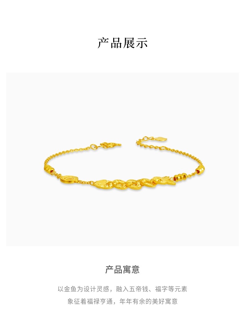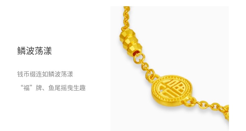 Lao Fengxiang Year of the Fish Coin Small Yellow Fish Gold Bead Pure Gold Bracelet Crushed Ice Pricing New Year Gift