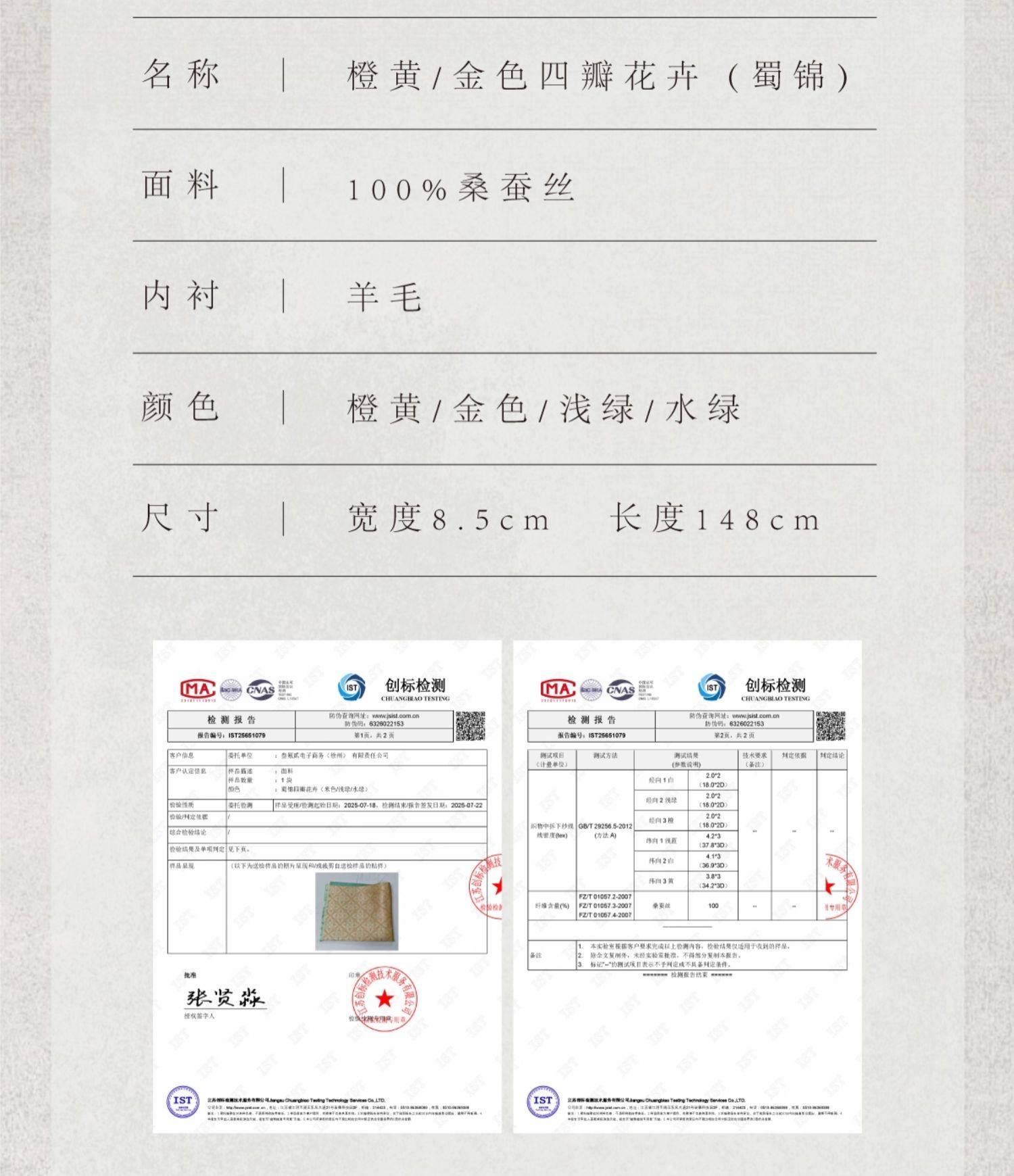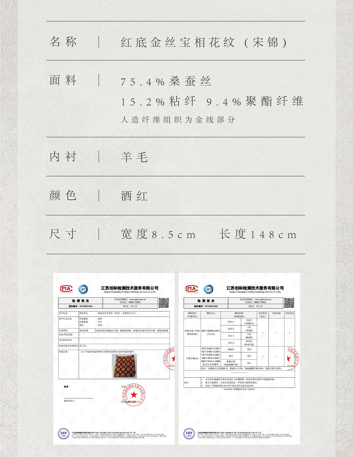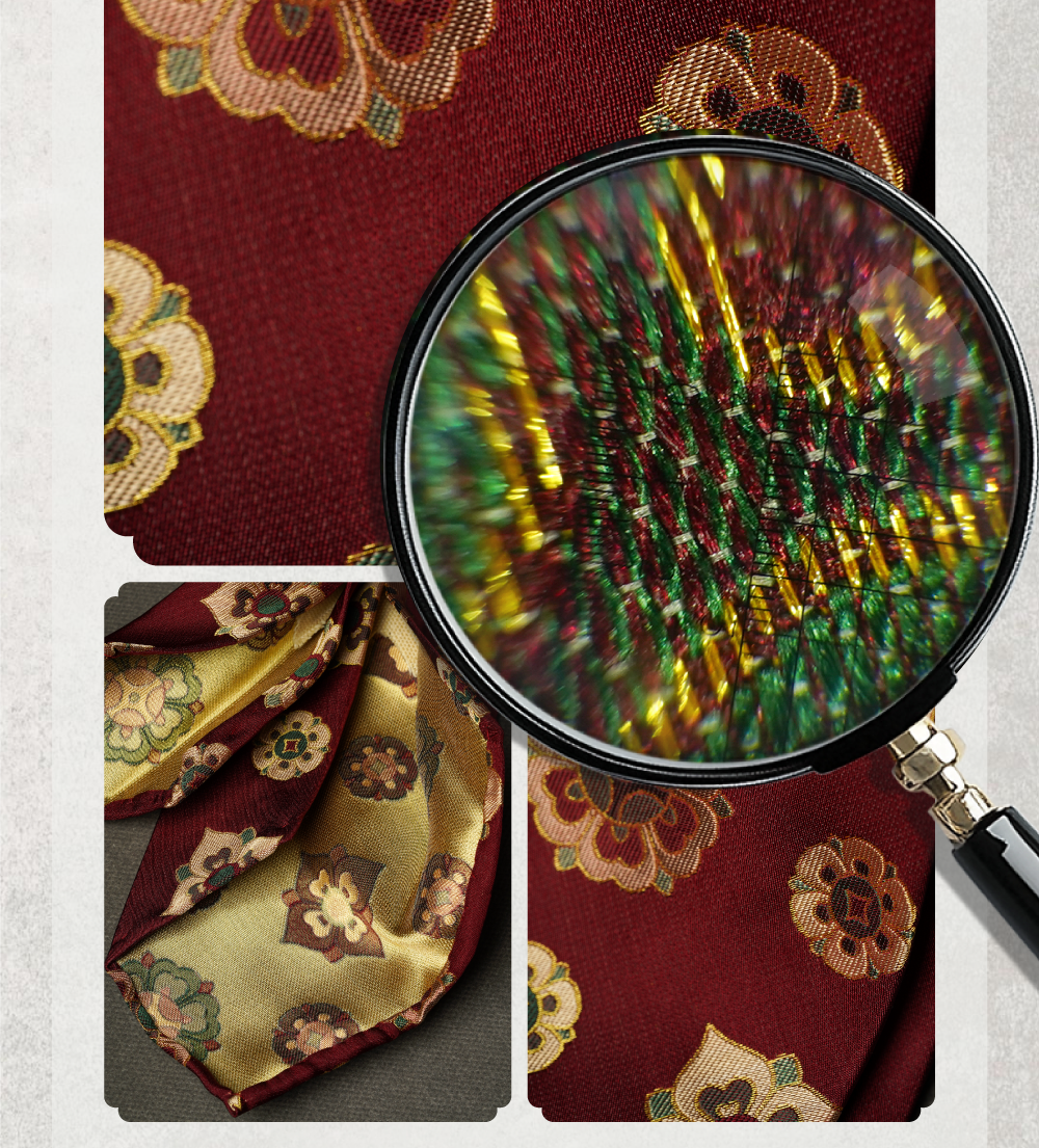 【Red Background with Gold Thread and Auspicious Patterns】Floral Neck Scarf/Tie, Song Brocade, Sichuan Brocade, Limited Supply