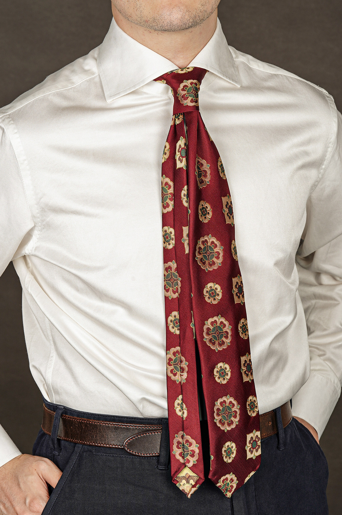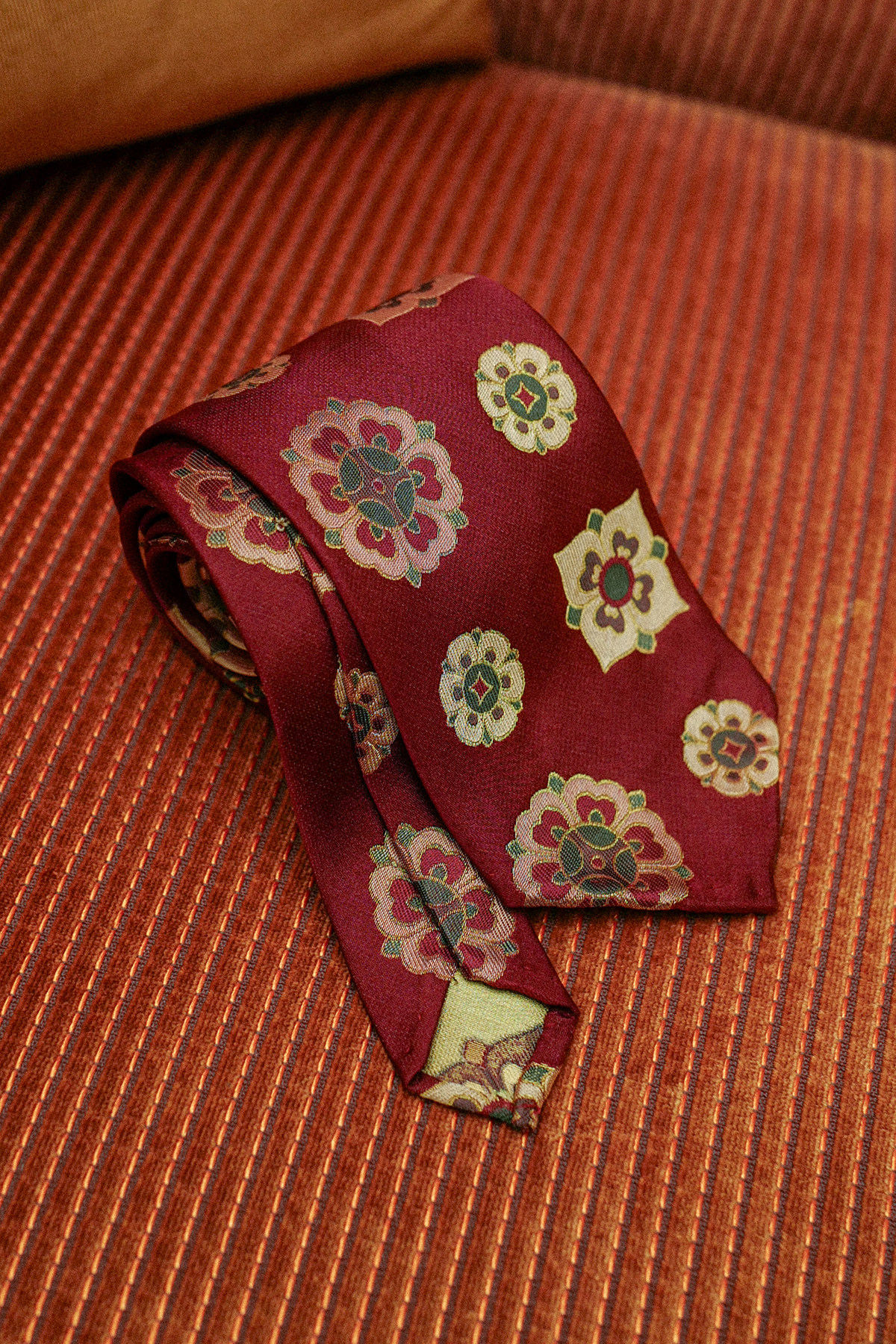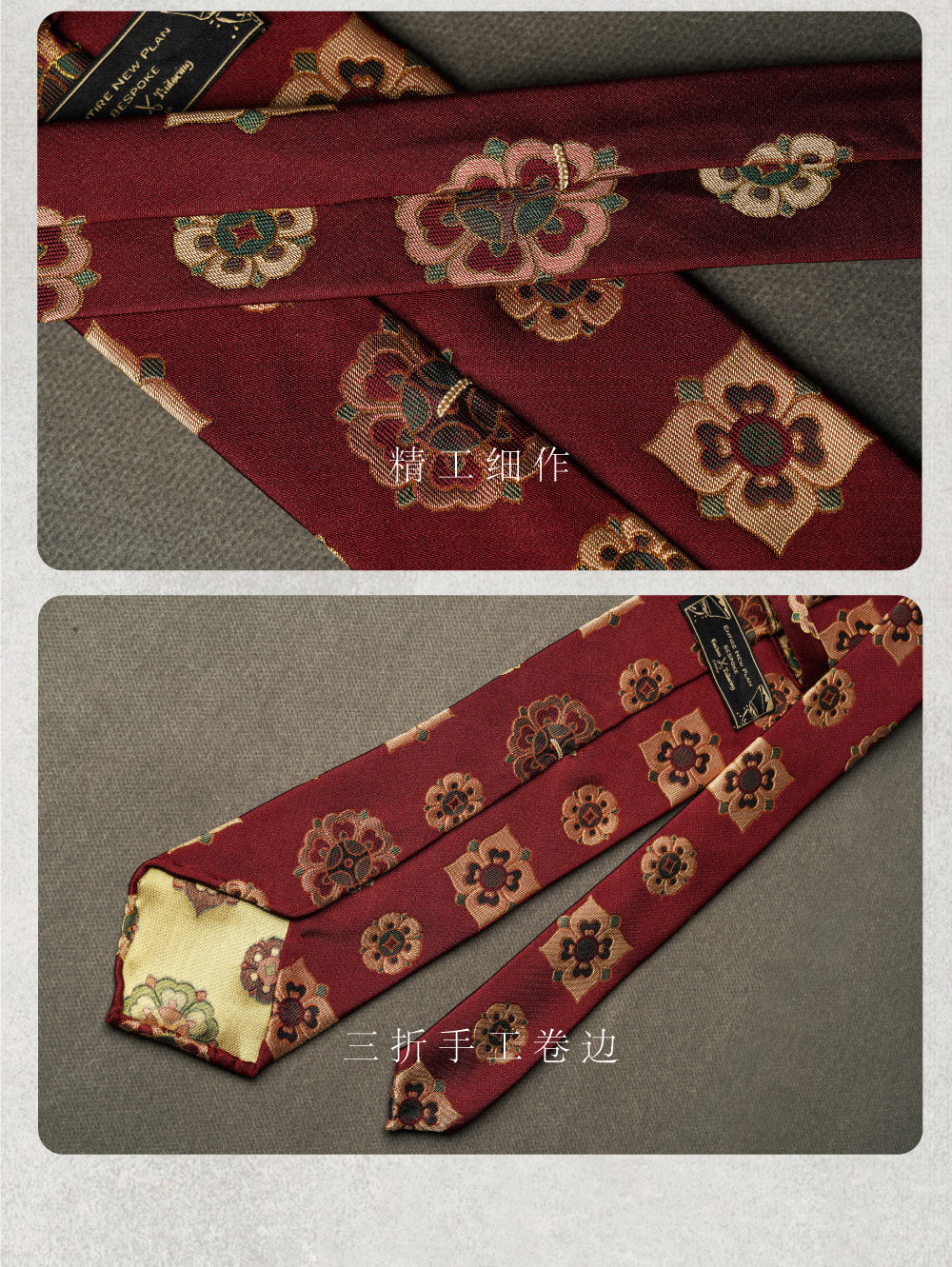 【Red Background with Gold Thread and Auspicious Patterns】Floral Neck Scarf/Tie, Song Brocade, Sichuan Brocade, Limited Supply