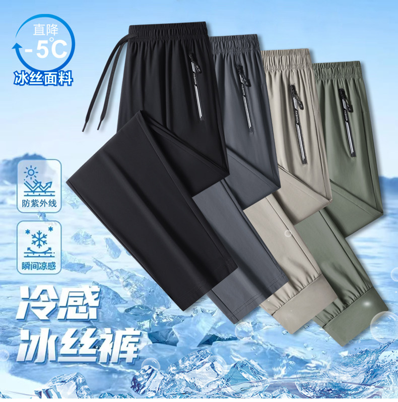 Woodpecker Summer Ice Silk Pants for Men, Thin, Loose, Quick-Drying, Breathable, Straight-Leg Pants, Jogger Sports Casual Pants, Long Pants