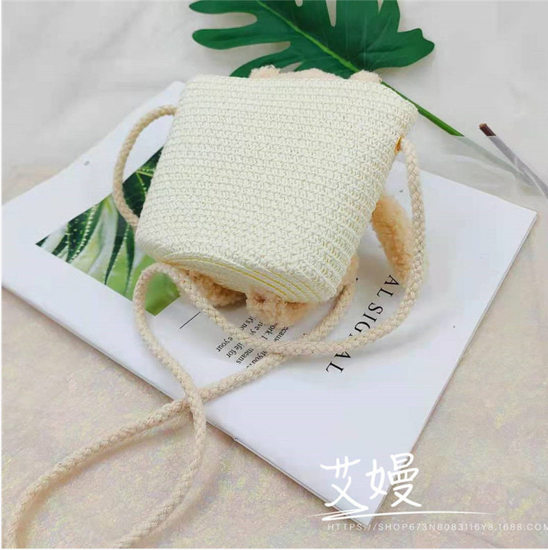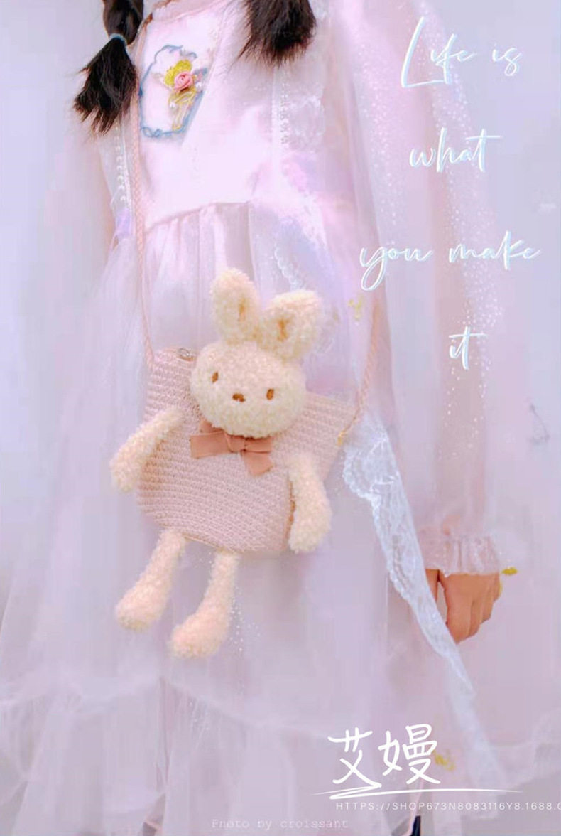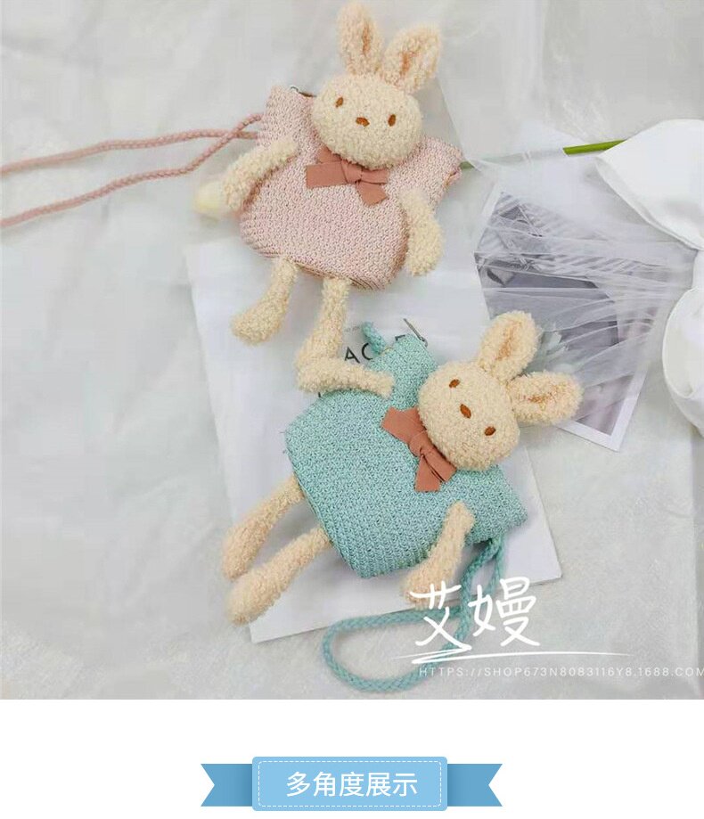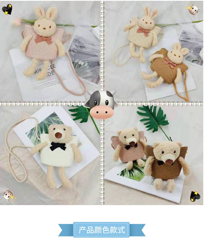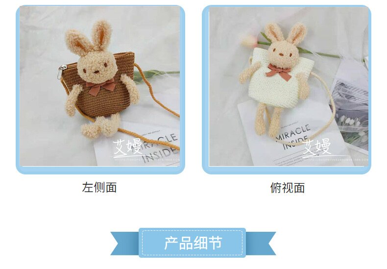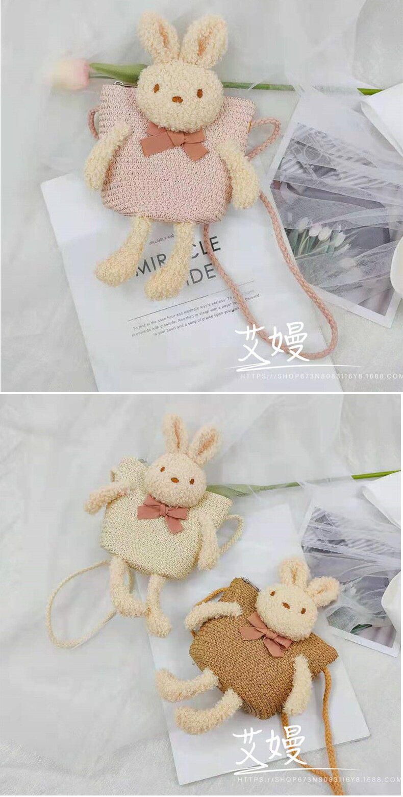 Children's Bag Girl Adult Cute Cartoon Plush Bunny Crossbody Bag Little Girl Straw Bag Baby Small Bag