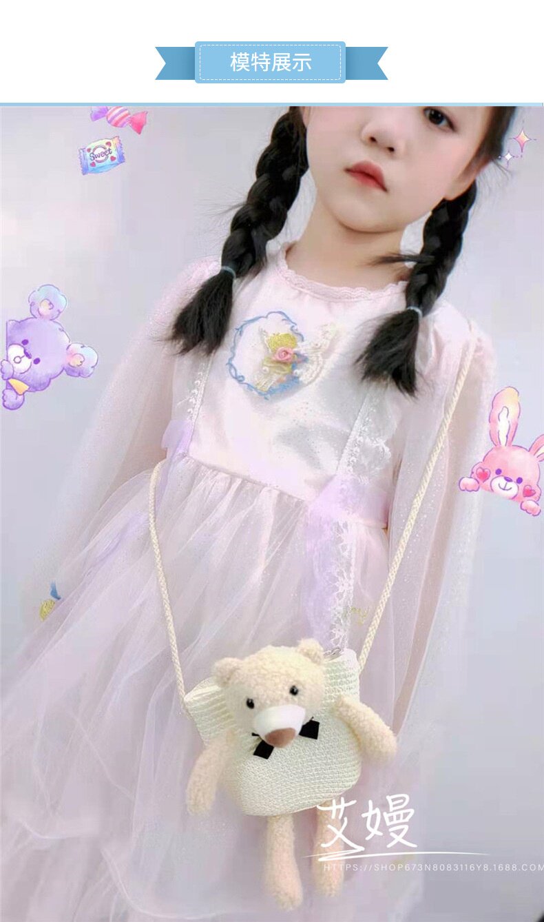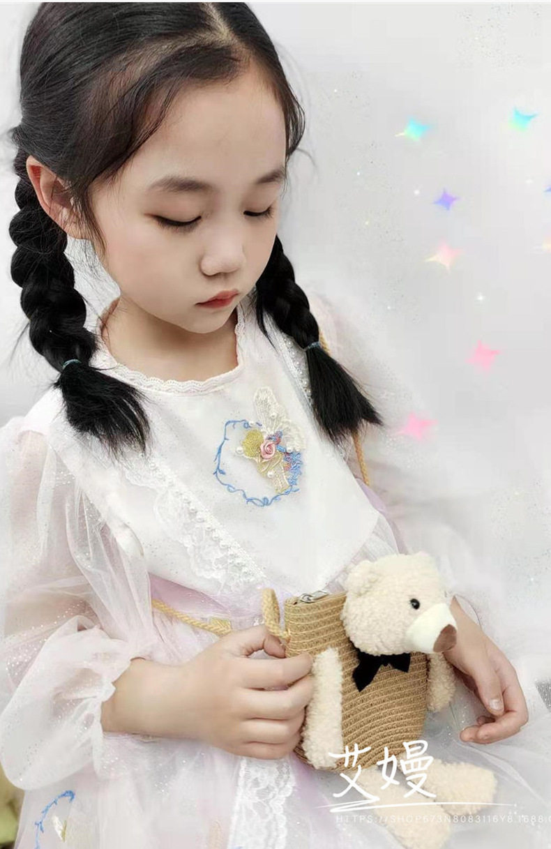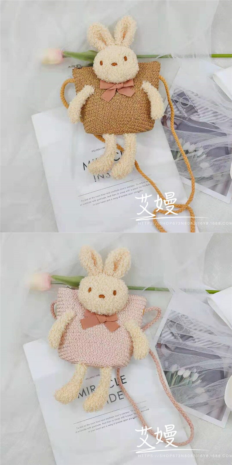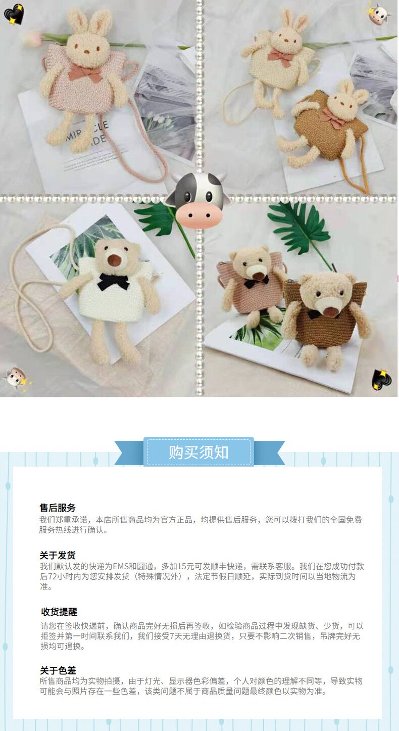 Children's Bag Girl Adult Cute Cartoon Plush Bunny Crossbody Bag Little Girl Straw Bag Baby Small Bag