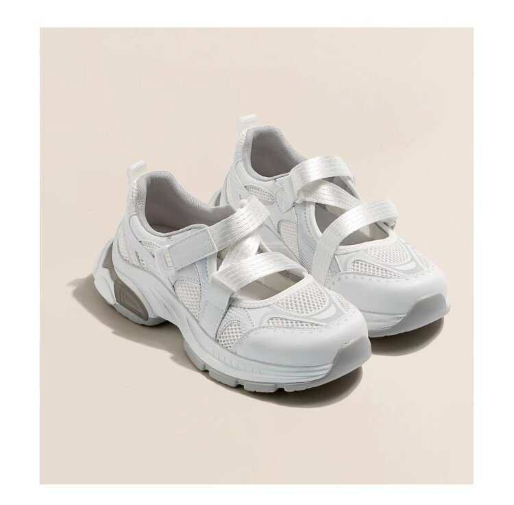 Hong Kong Genuine Leather Thick-Soled Dad Sandals for Women 2026 Summer New Style Velcro Casual Shoes Mesh Breathable Hiking Shoes