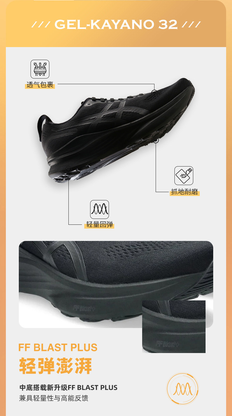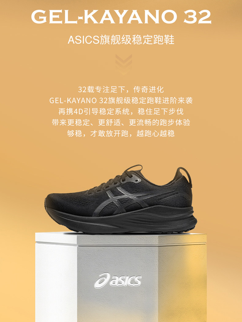 Asics Kayano32 Men's Stable Support Running Shoes K32 Black Warrior High-Elastic Wide-Last Sports Shoes