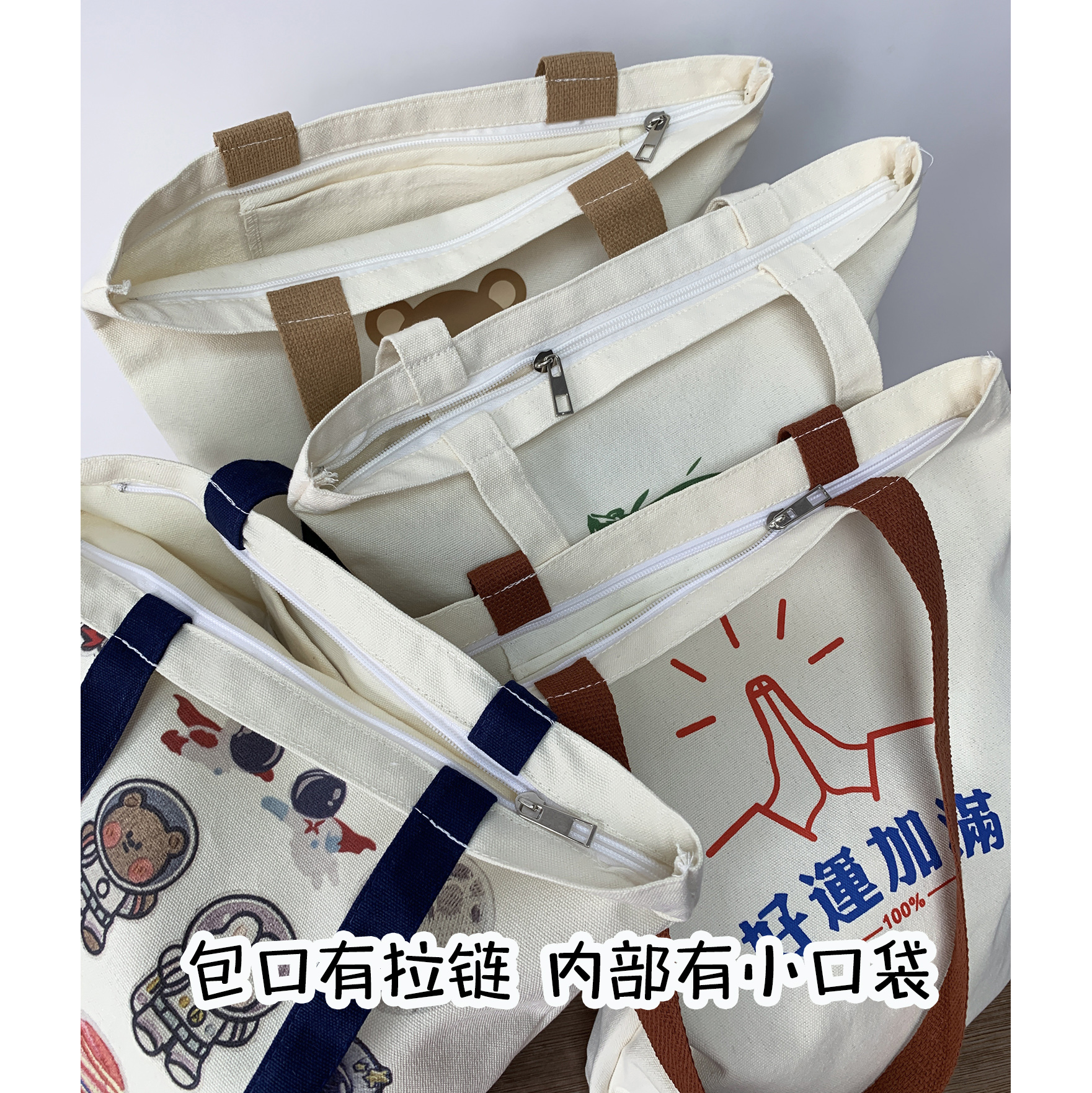 2025 New Style School Bag with Zipper for Primary and Secondary School Students, Unisex Shoulder Canvas Bag, Portable Eco-Friendly Bag