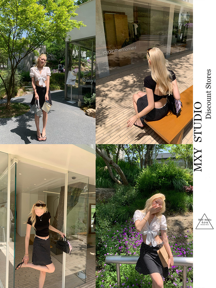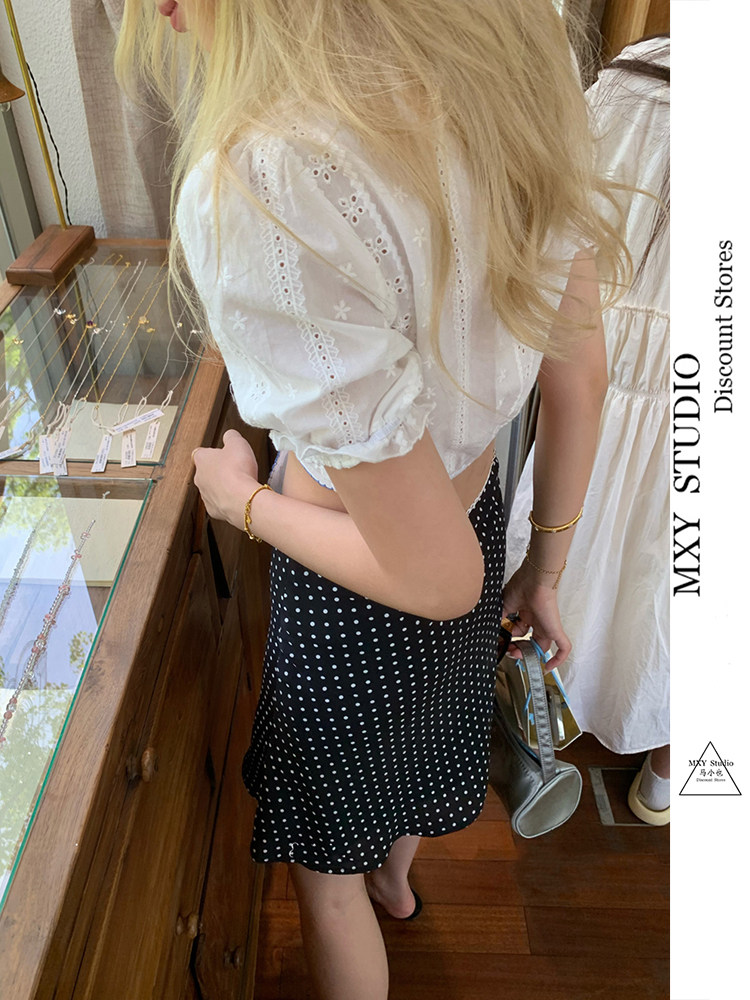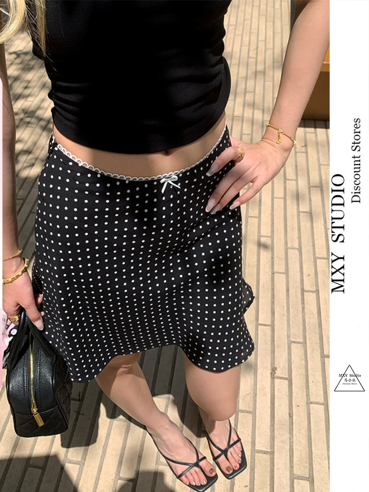 Ma Xiaoye Paris Illustrated Guide French Polka Dot Skirt for Women Summer 2025 New Slimming Lace A-Line Short Skirt