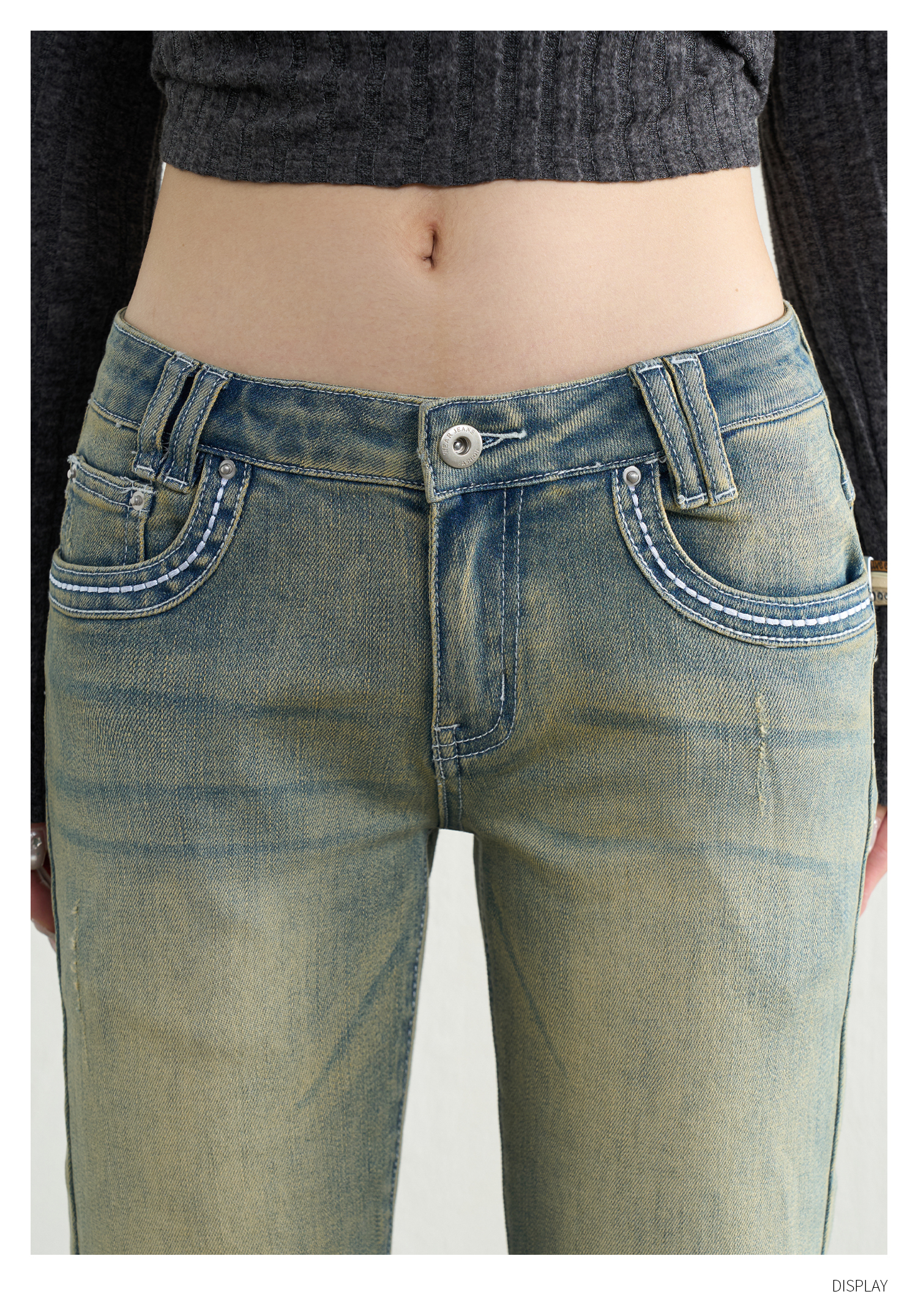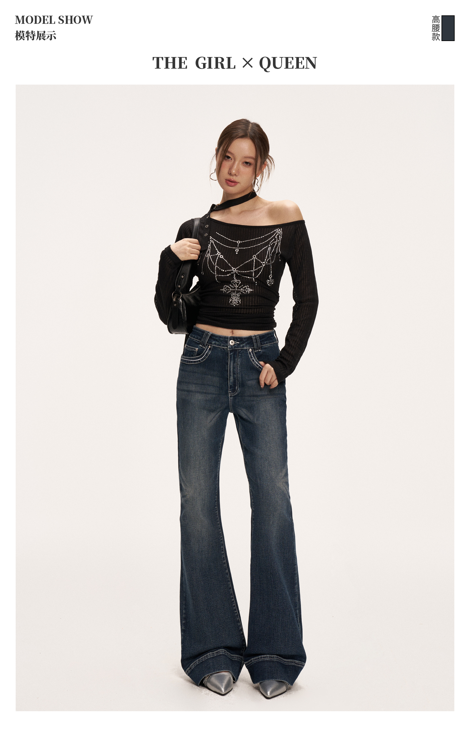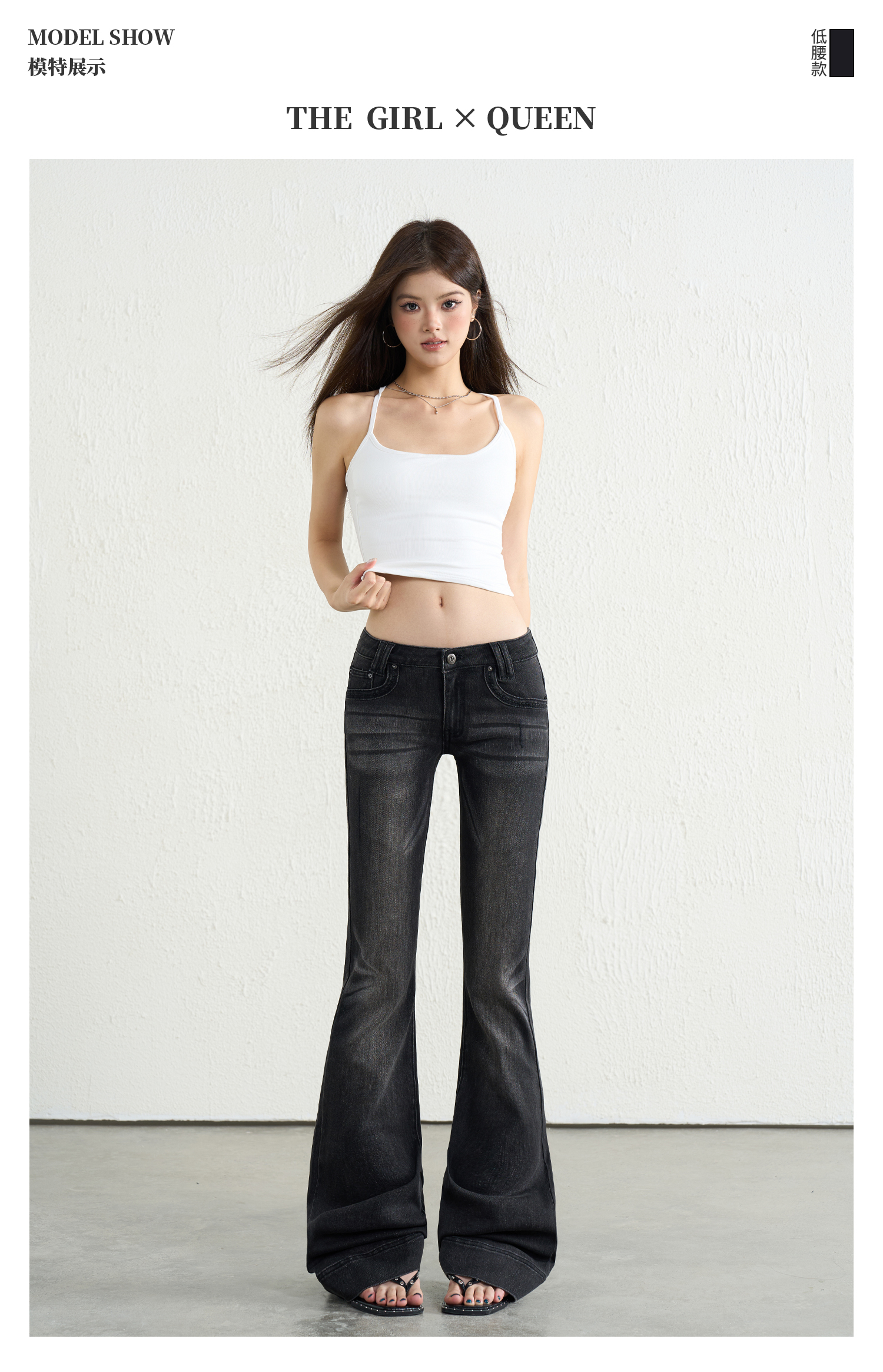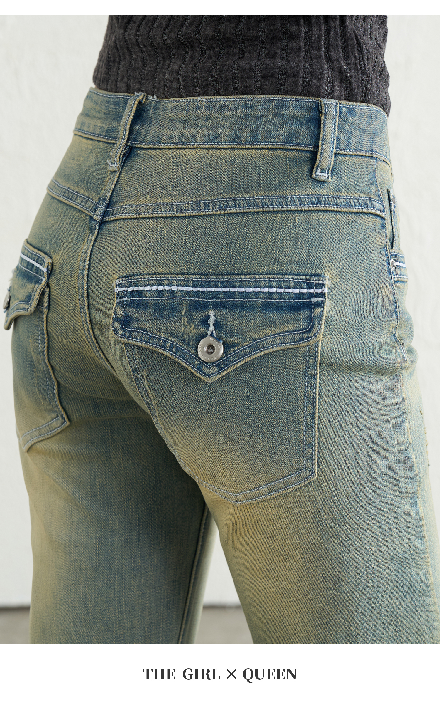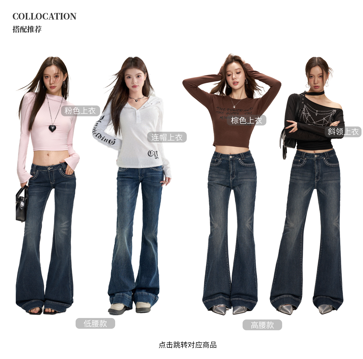 Tgxq American-Style Women's Jeans 2025 New Fleece-Lined Vintage Washed Blue Hot Girl Stretch Ultra-Low Waist Flared Pants