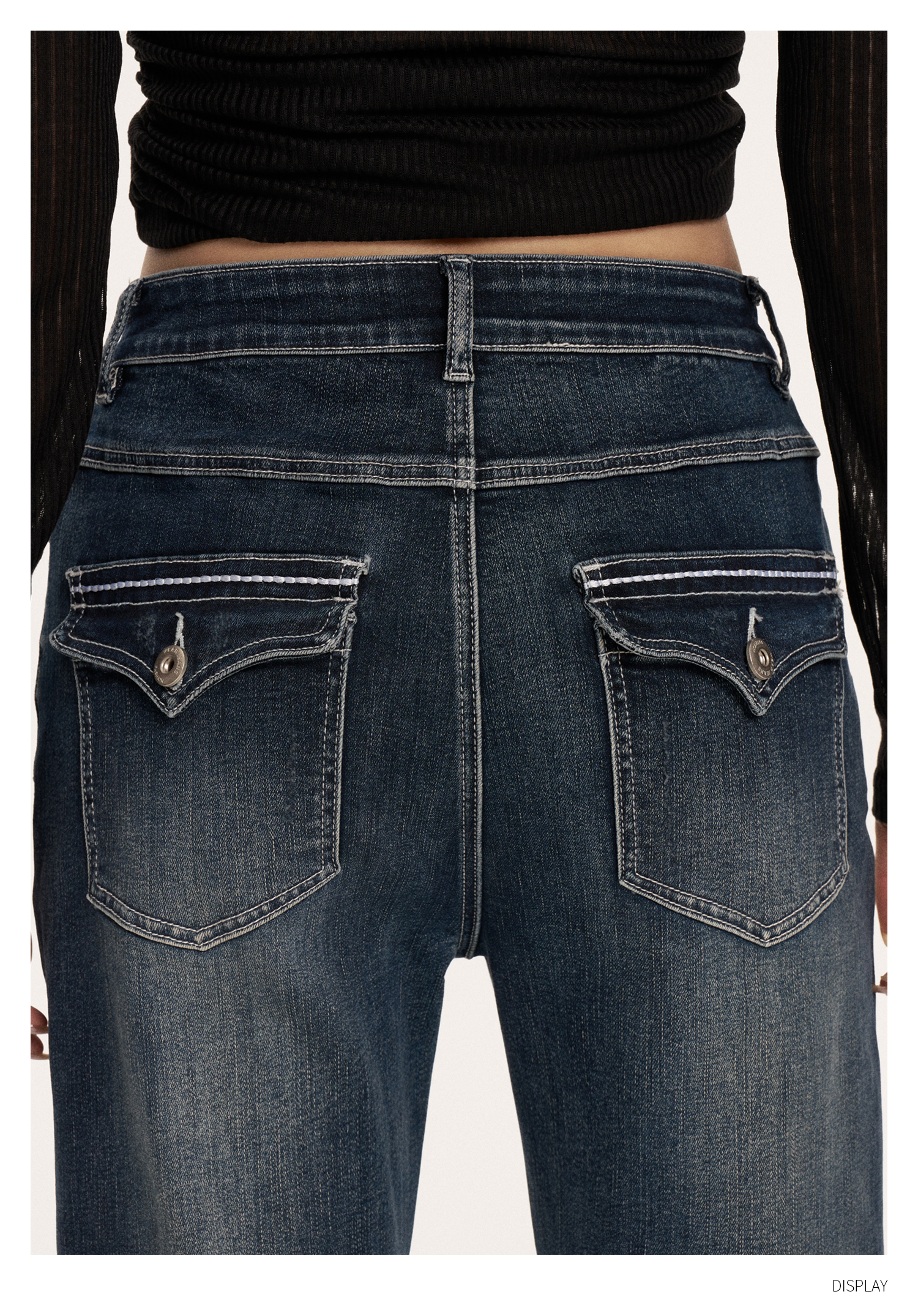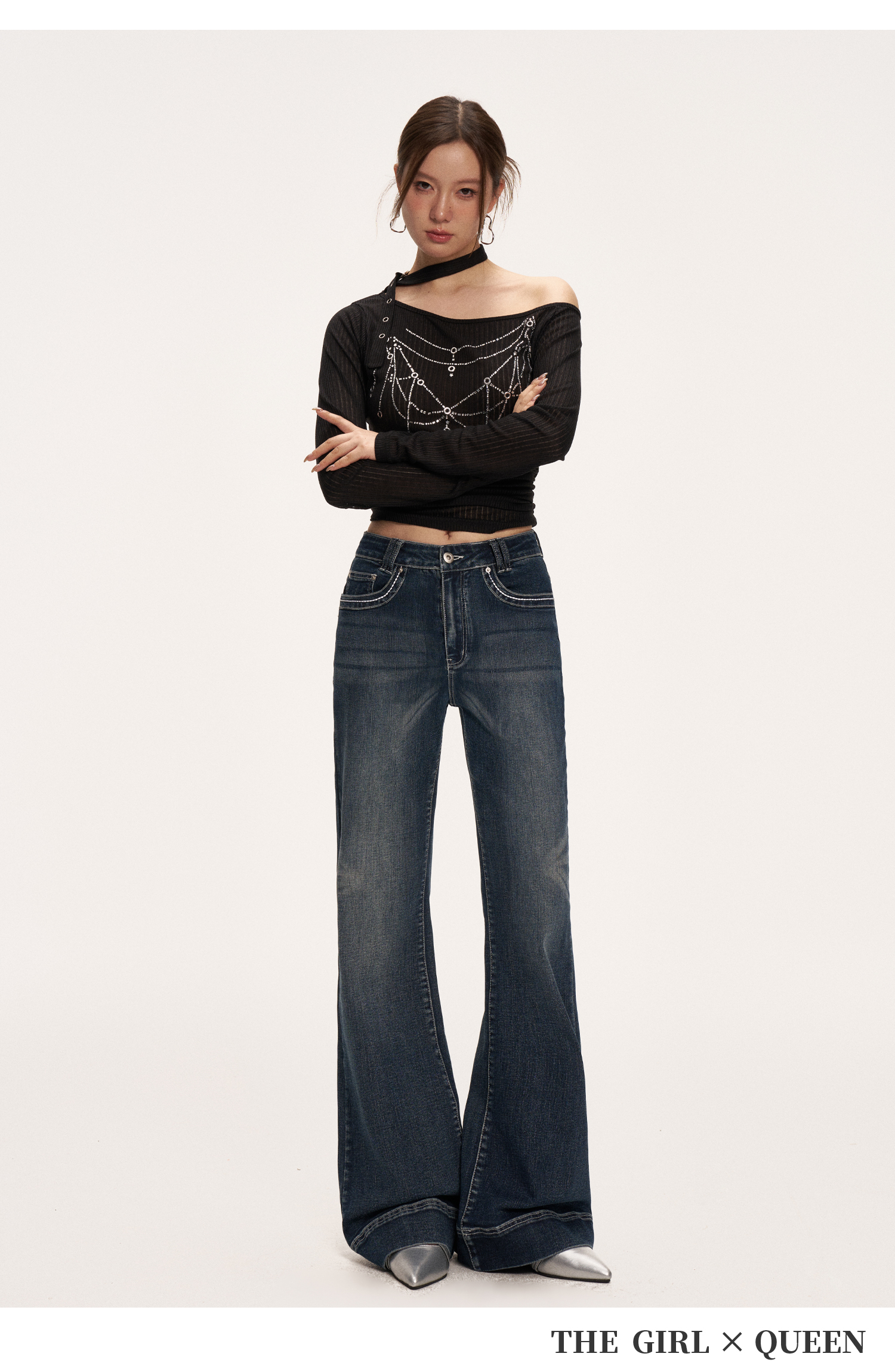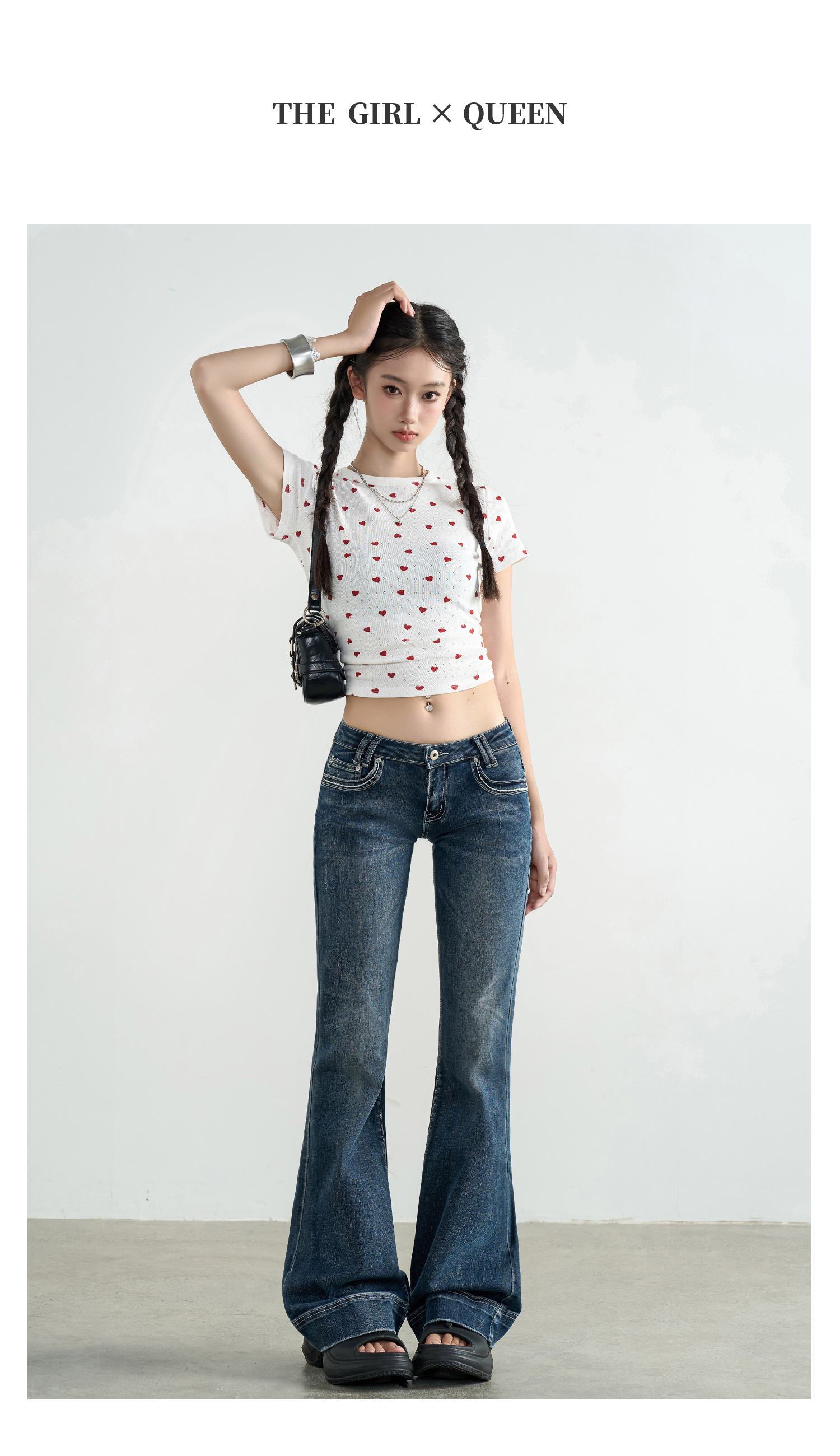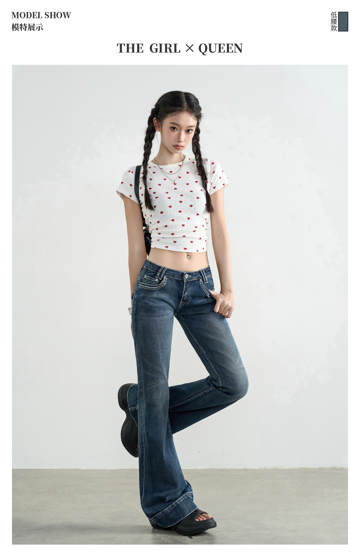 Tgxq American-Style Women's Jeans 2025 New Fleece-Lined Vintage Washed Blue Hot Girl Stretch Ultra-Low Waist Flared Pants
