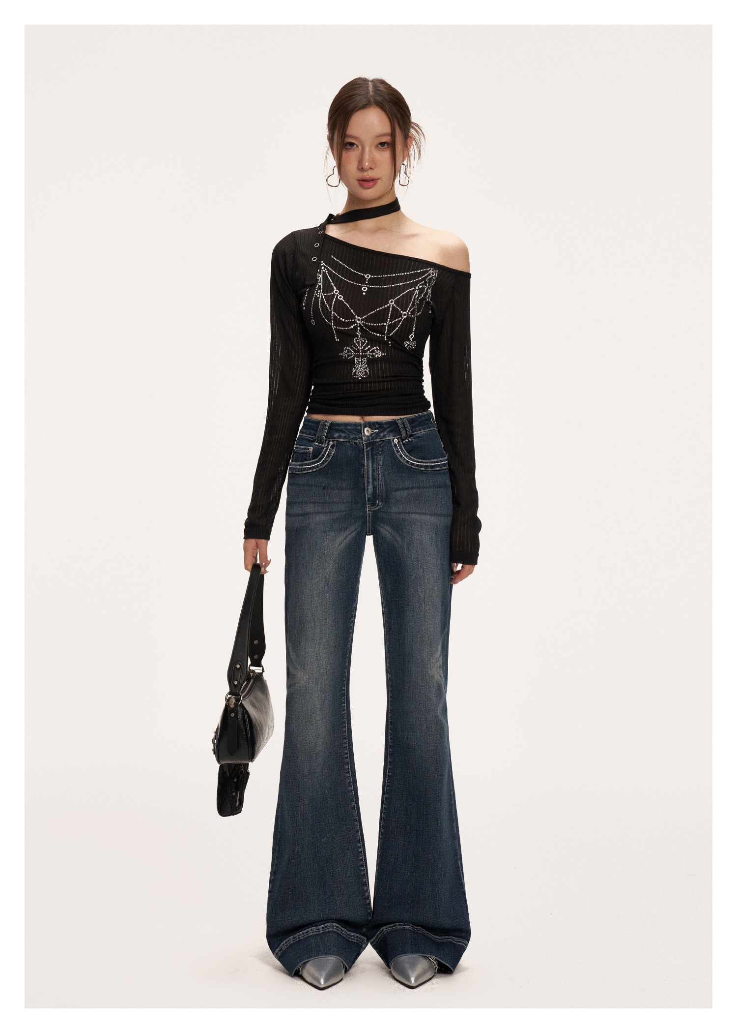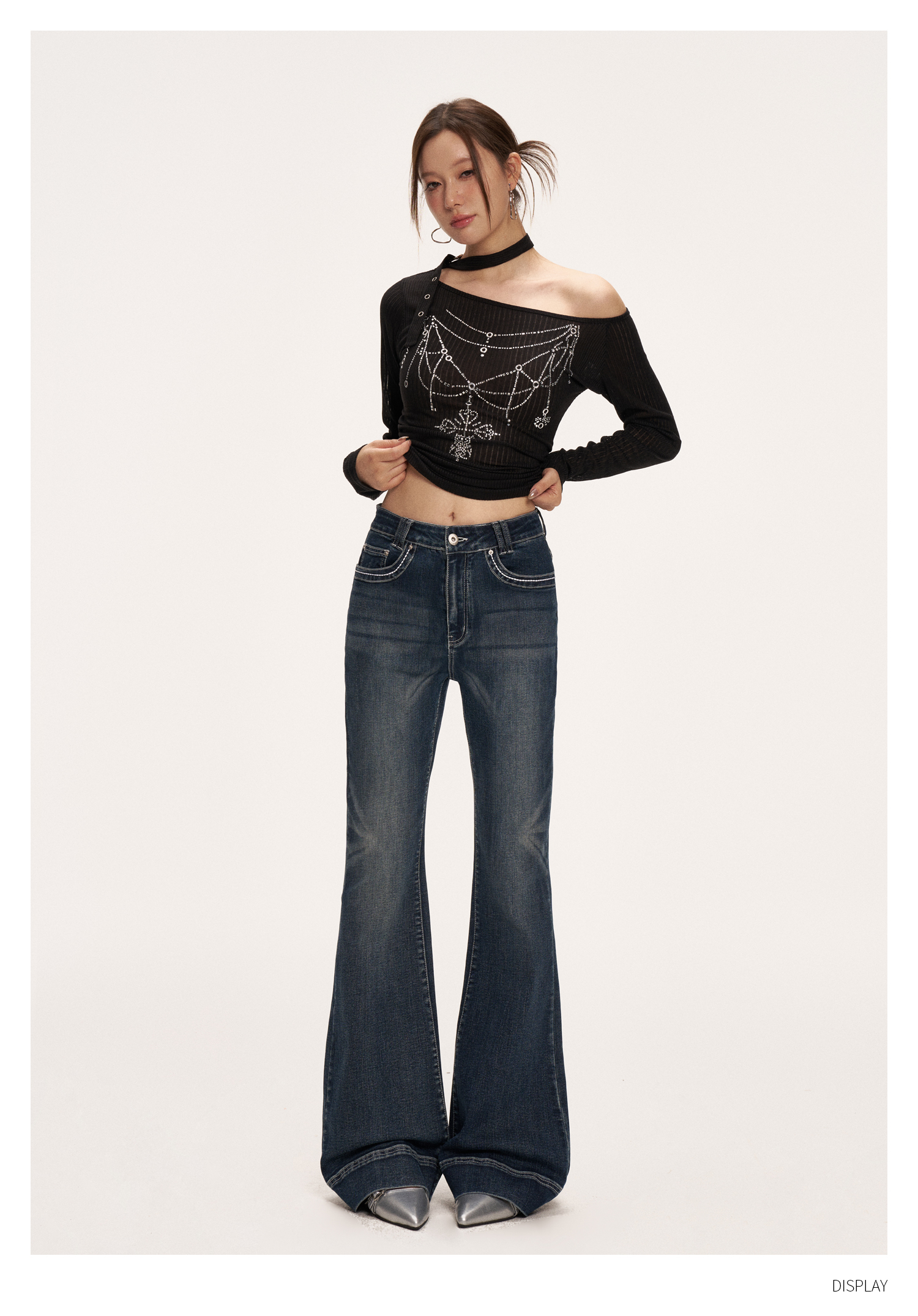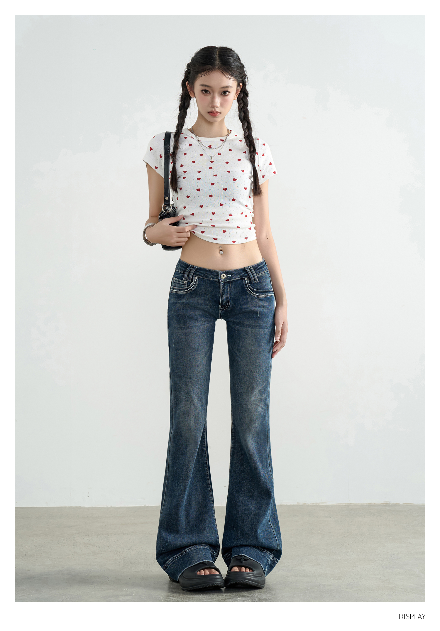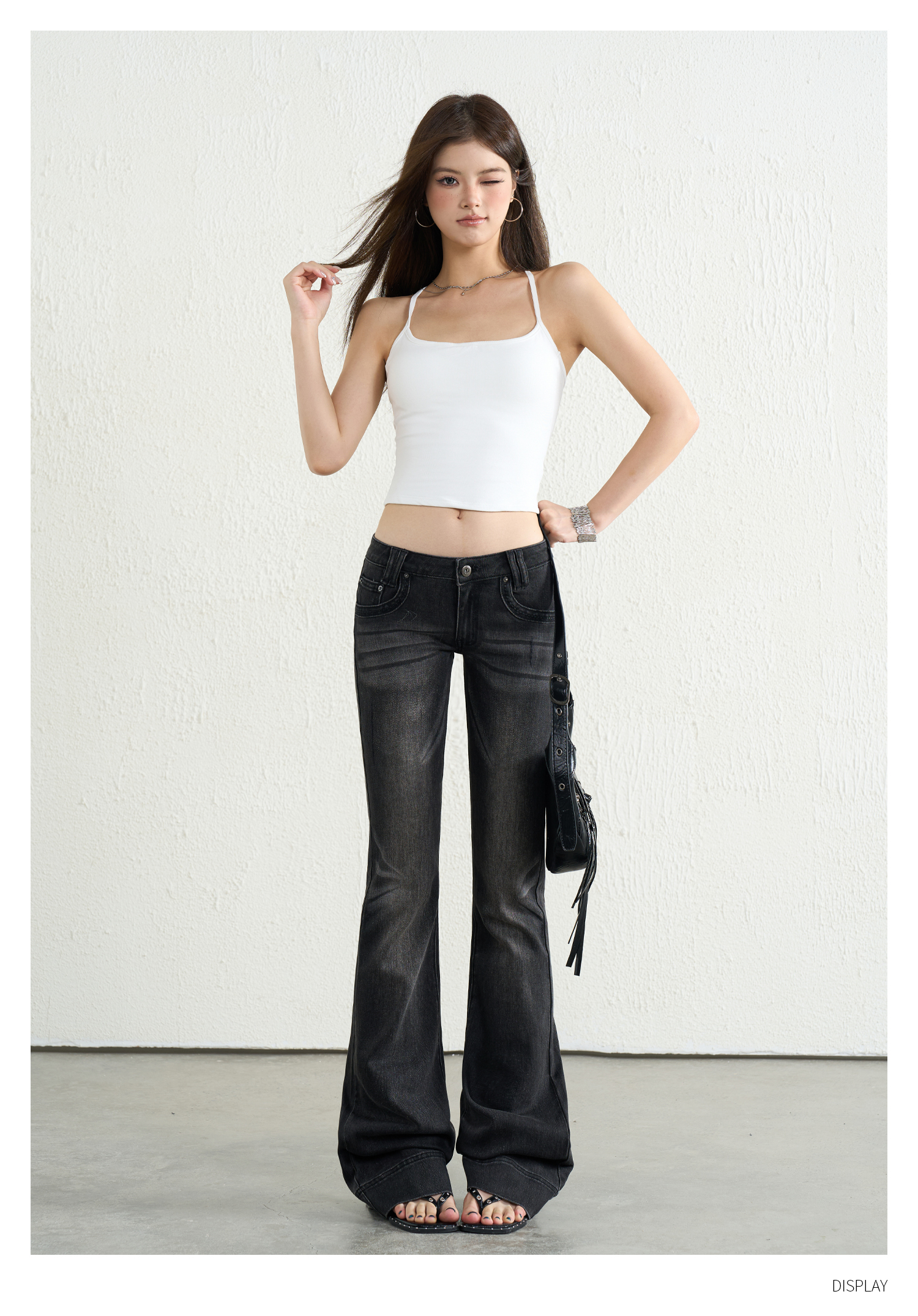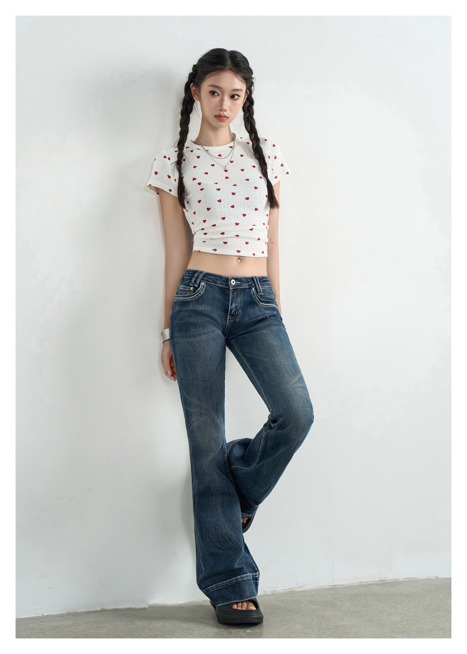 Tgxq American-Style Women's Jeans 2025 New Fleece-Lined Vintage Washed Blue Hot Girl Stretch Ultra-Low Waist Flared Pants