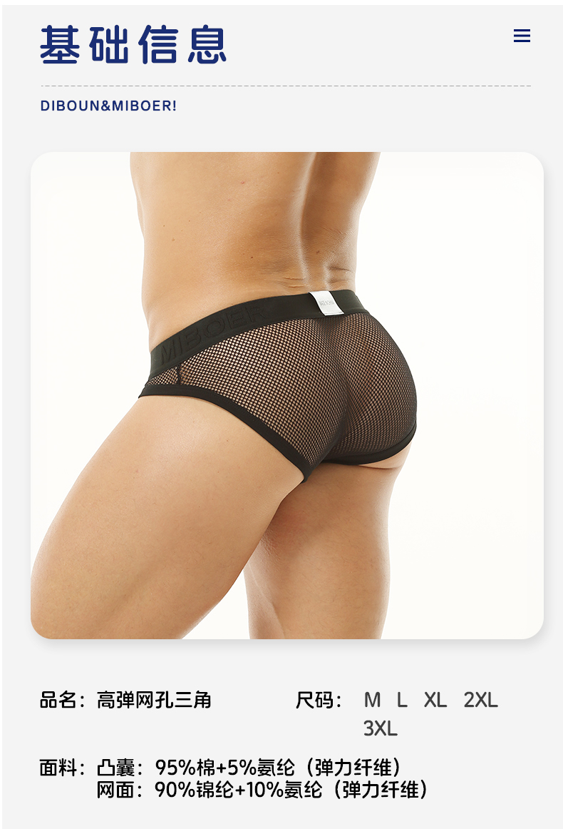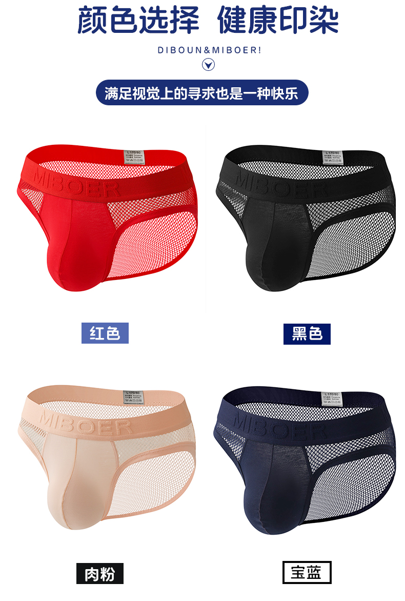 Daguang Sexy Men's Briefs Ice Silk High-Elastic Mesh Transparent Sports Low-Waist Large Pouch Fitness Breathable Underwear for Men