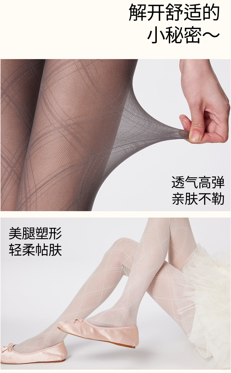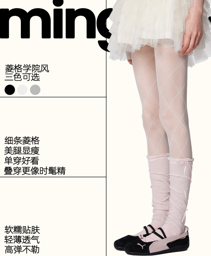 Gray Diamond-Patterned Stockings for Women, Thin Design, Snag-Resistant, Ballet-Style Pattern, Black Pantyhose, Ultra-Thin Base Stockings