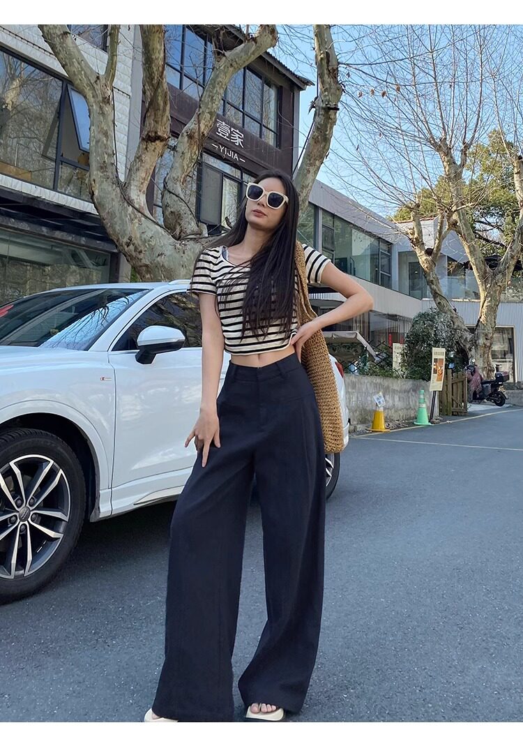 Tall Women's Extra-Long White Ramie Suit Pants, Summer Thin High-Waisted Loose Drapey Extended Straight-Leg Wide-Leg Pants