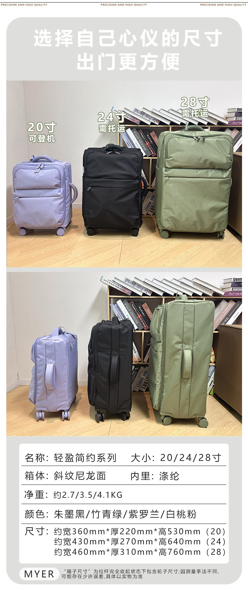 Myer Ultra-Light Soft Trolley Suitcase 20inch Carry-On Suitcase Water-Repellent Silent Wheel Suitcase 24inch Travel Suitcase 28