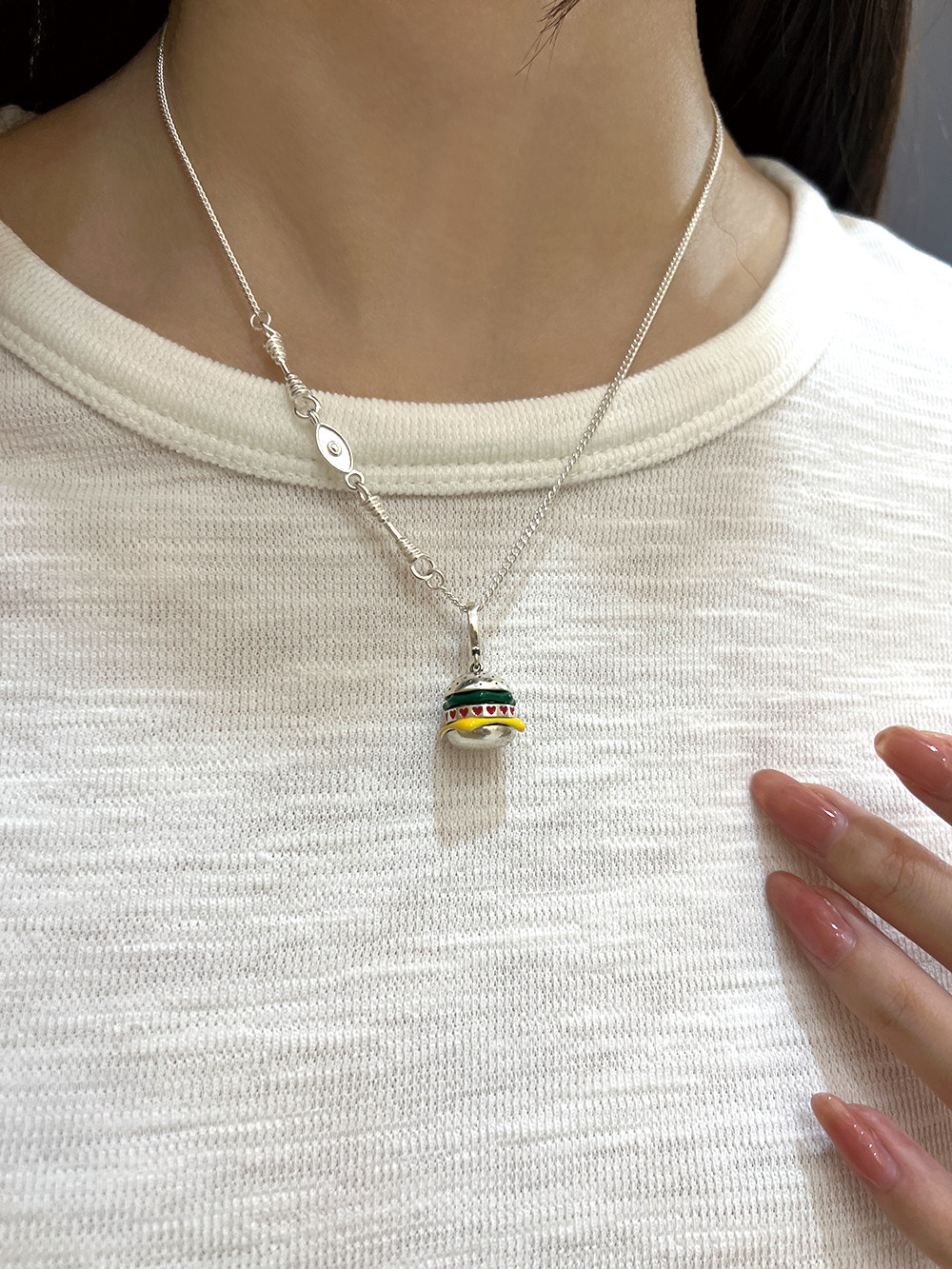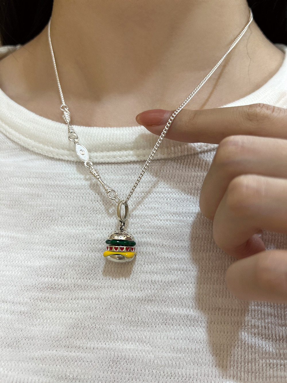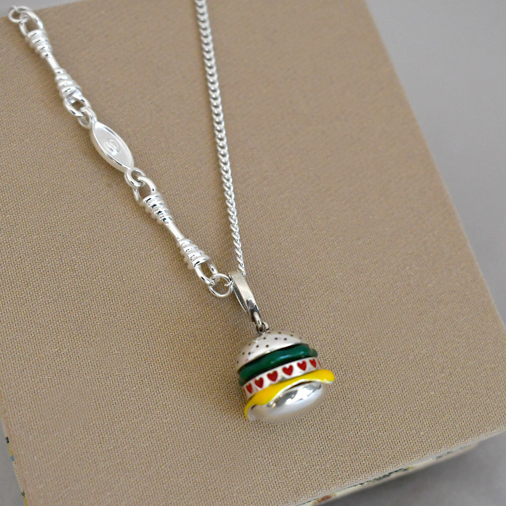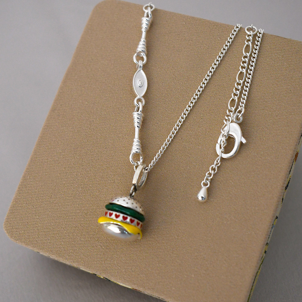 Special Clearance Sale, Approximately 10.6 Grams, 925 Sterling Silver Vintage Hamburger Pendant Necklace for Women, Suitable for Summer and Pairing with T-Shirts