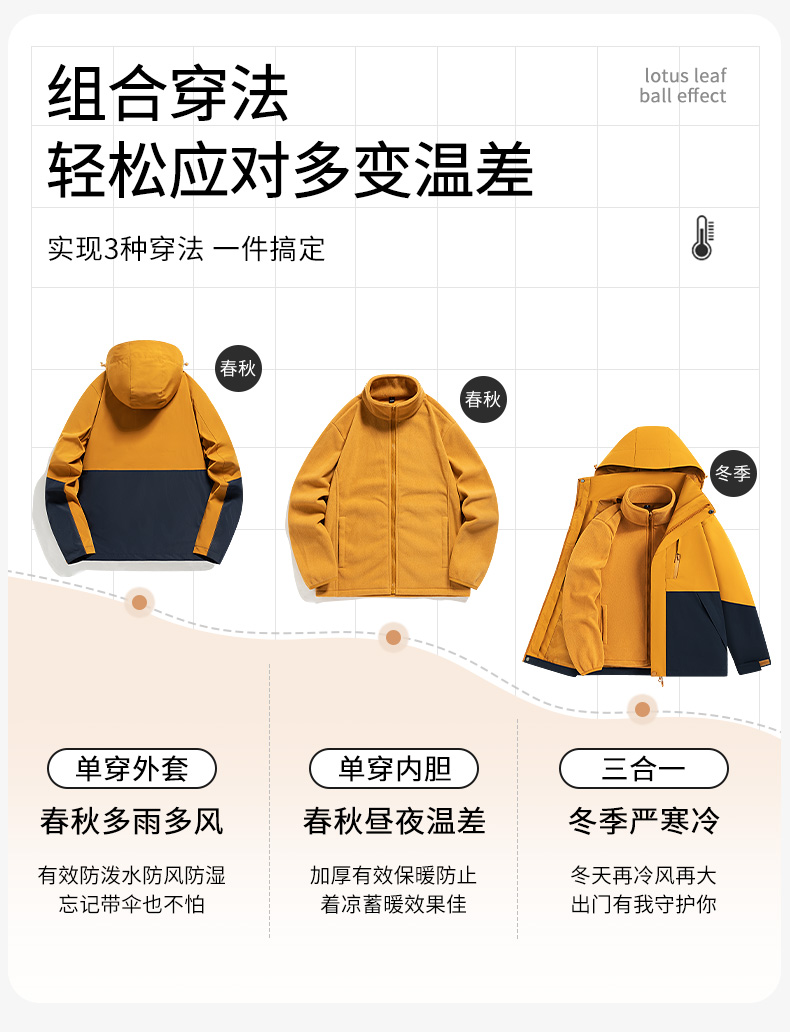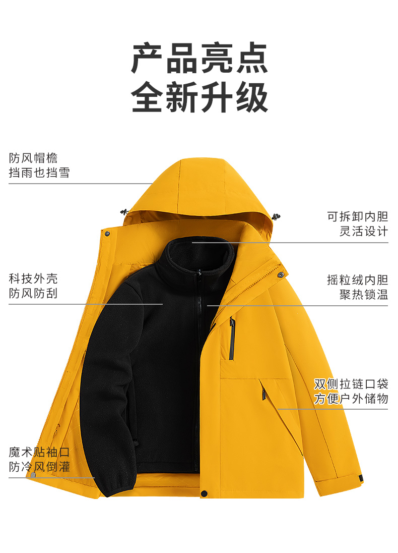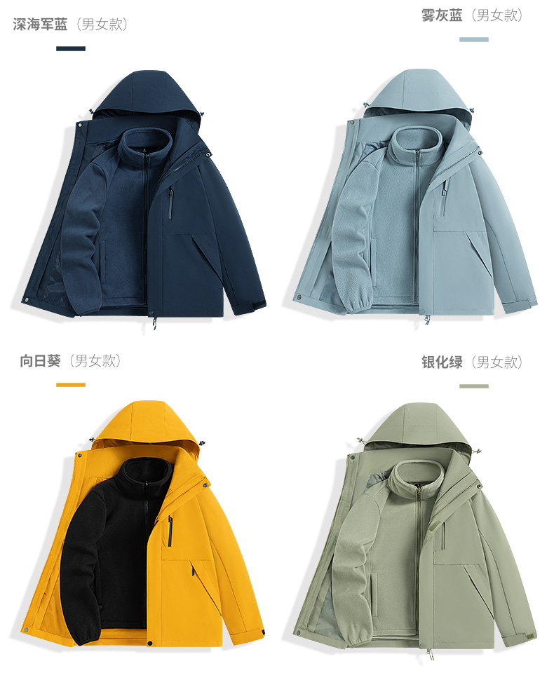 Woodpecker Trendy Brand Three-In-One Windproof and Waterproof Jacket for Women, Petite Size, Spring, Autumn, and Winter Outdoor Hiking Jacket for Men