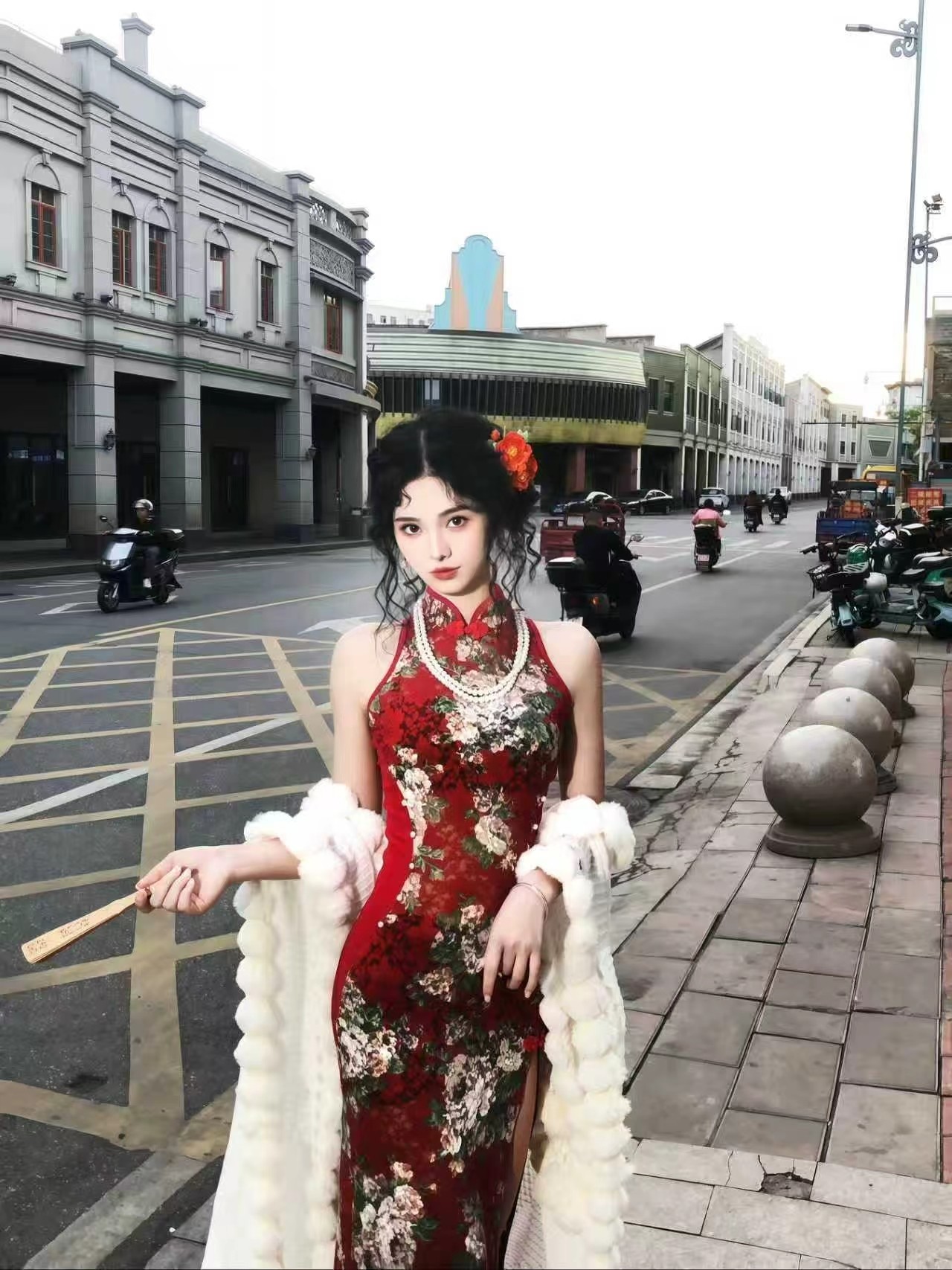 经过改良后的露肩旗袍