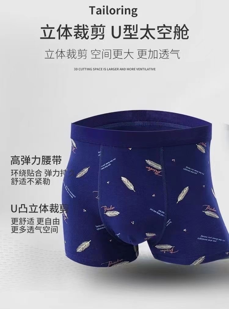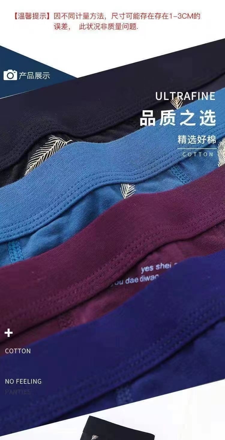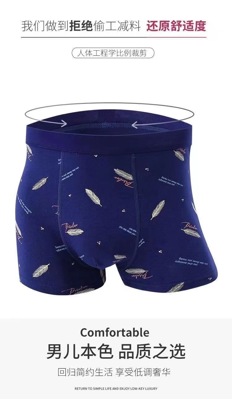【100% Pure Cotton】Men's Boxer Briefs, Mid-Waist, Breathable, Sweat-Absorbent, All-Cotton, Antibacterial, Loose-Fitting, Large Size Underwear