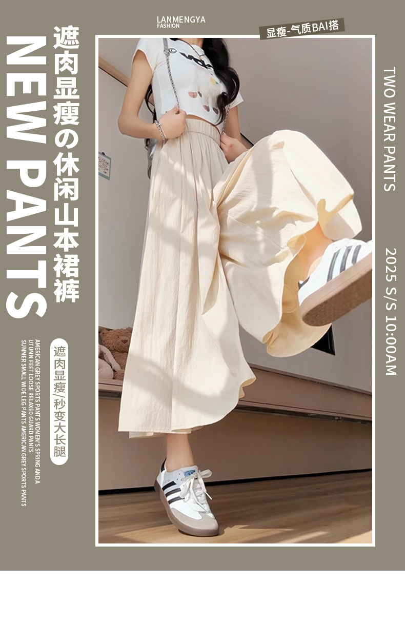 Yamamoto Culottes for Women 2026 New Summer Thin High-Waisted A-Line Skirt Petite Cool Ice Silk Wide-Leg Pants