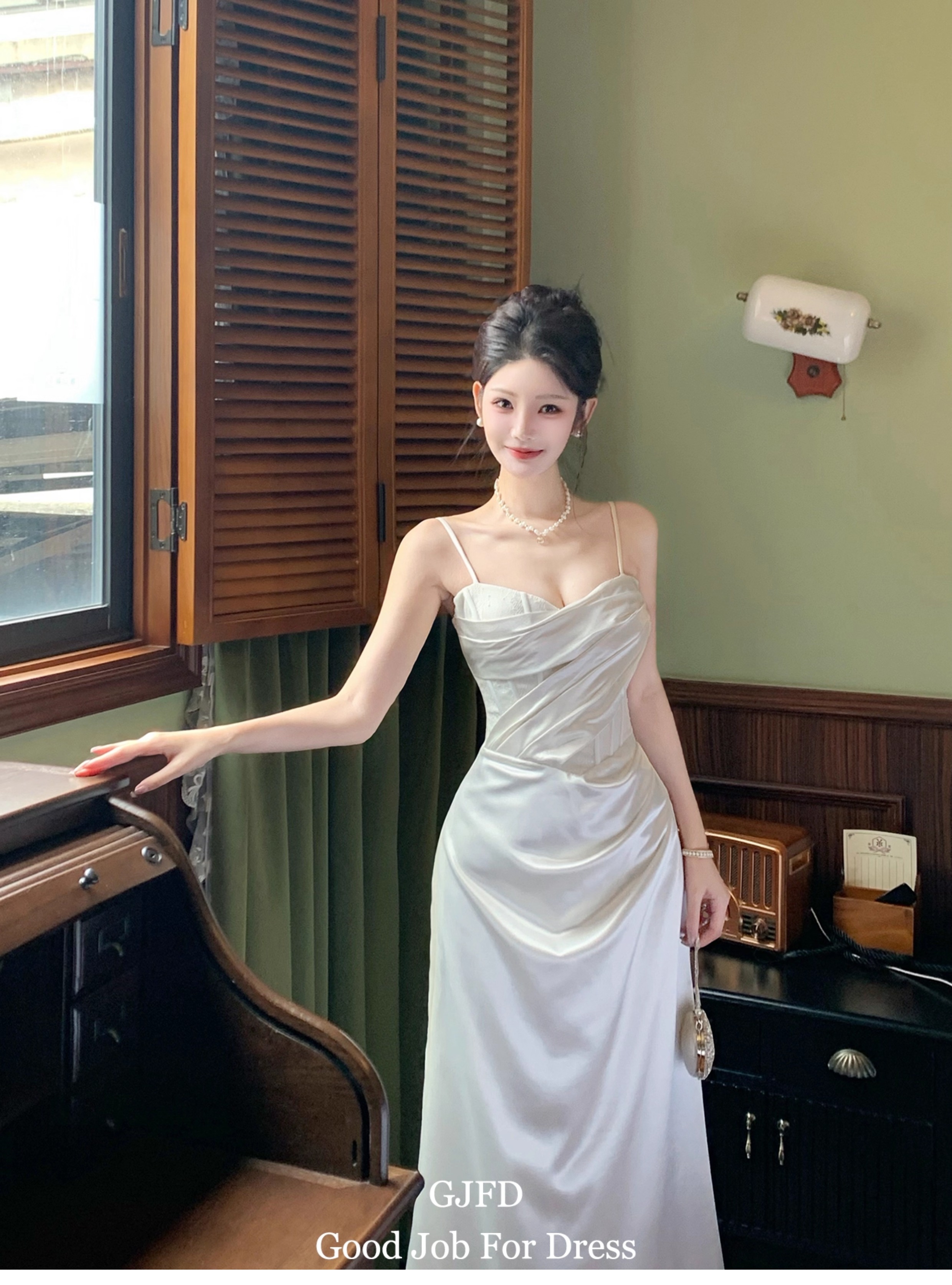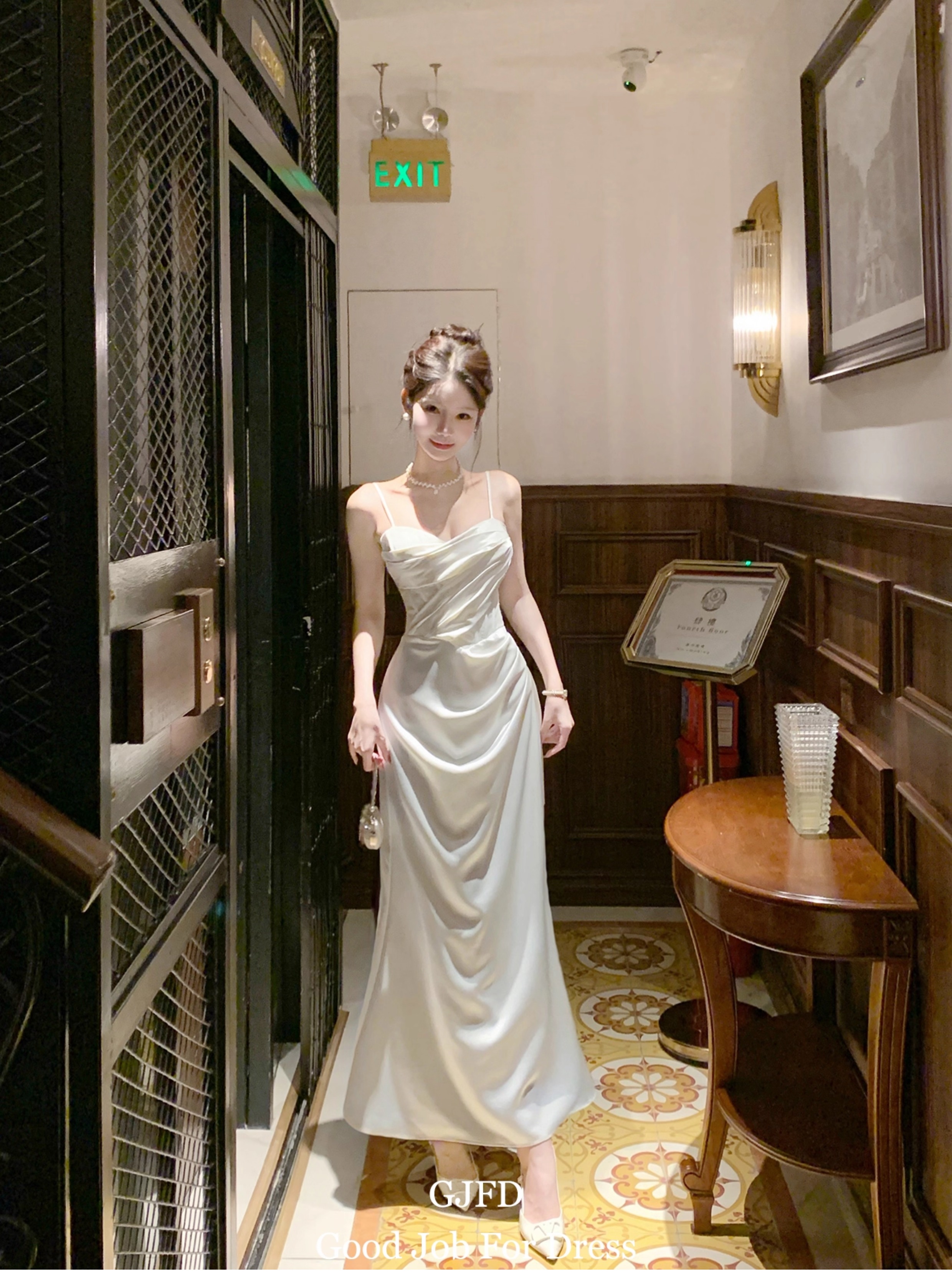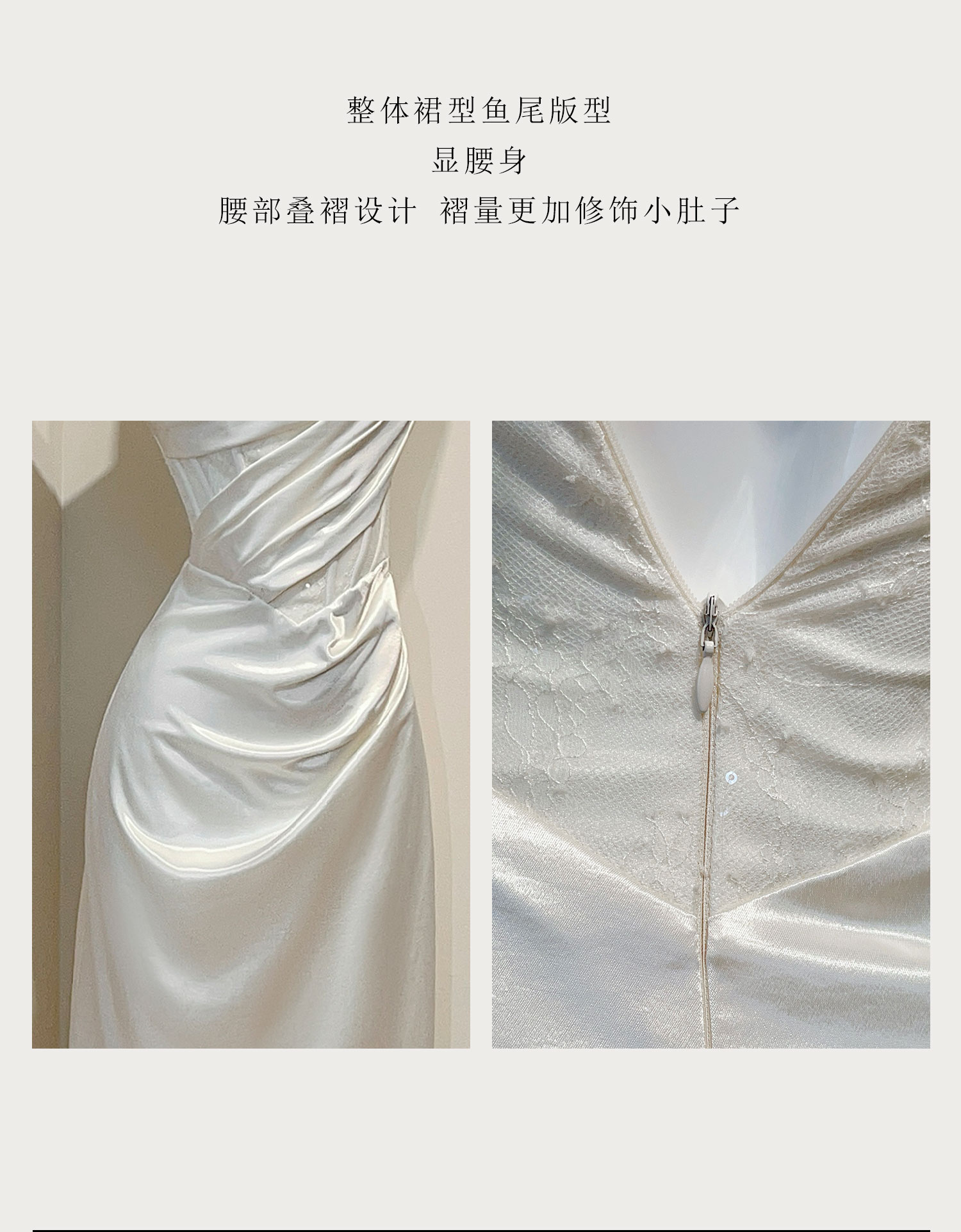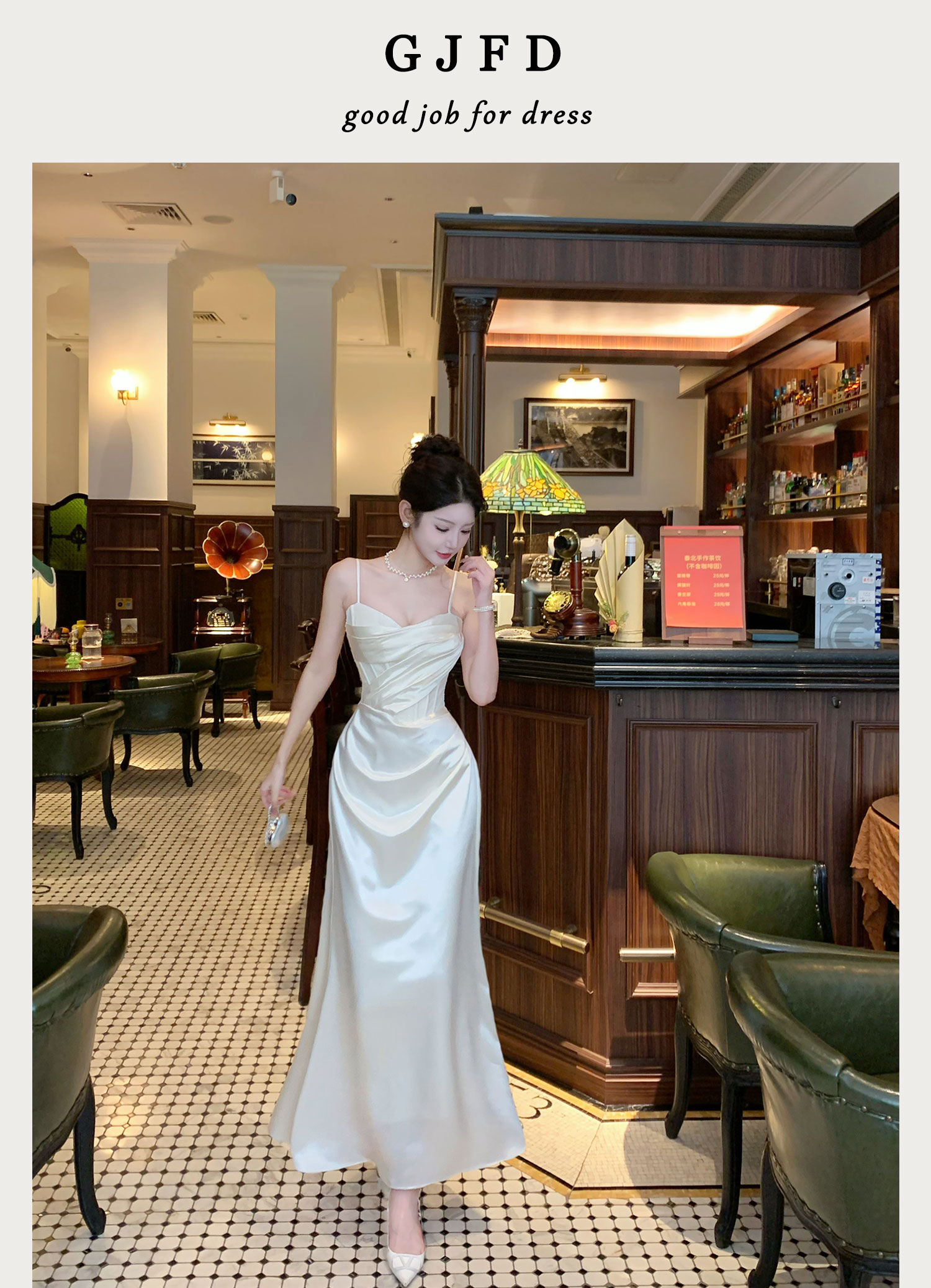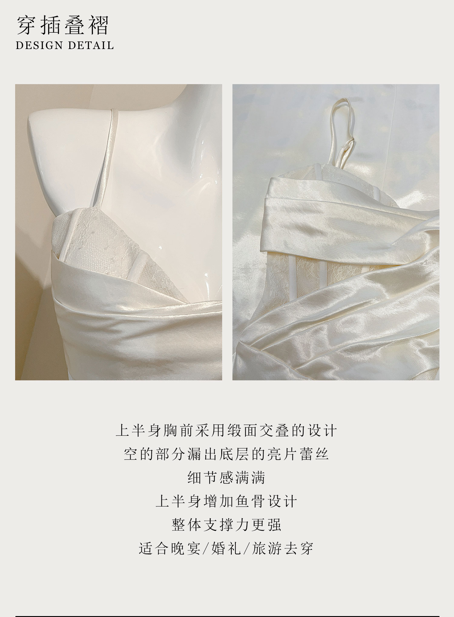 Good Job【Flower Path Dream】French Lace Satin Camisole Dress with Sequins, High-End Fishtail Long Skirt