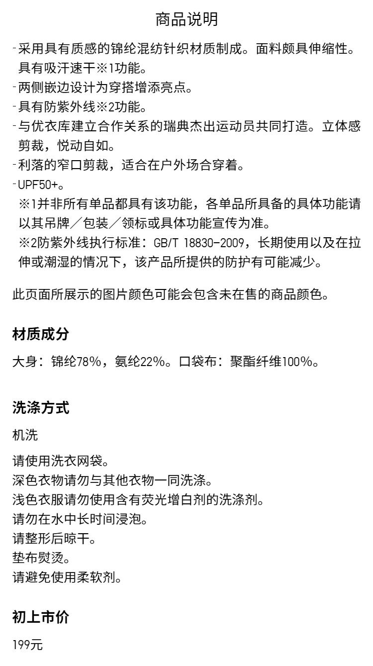 Regular Style Uniqlo Collaboration Men's High-Elastic Sports Pants Uv Protection Casual Pants Lightweight 480412