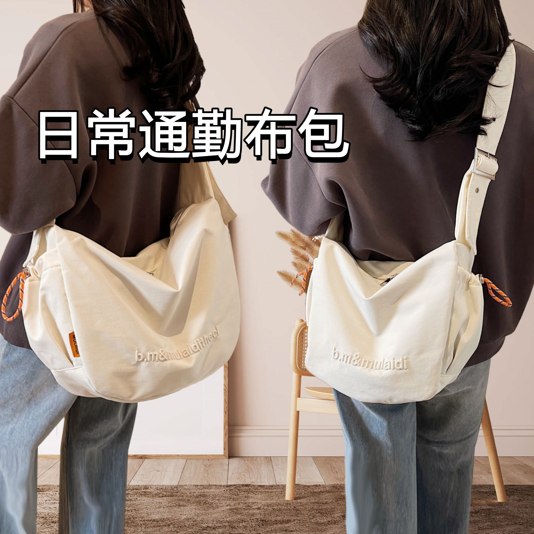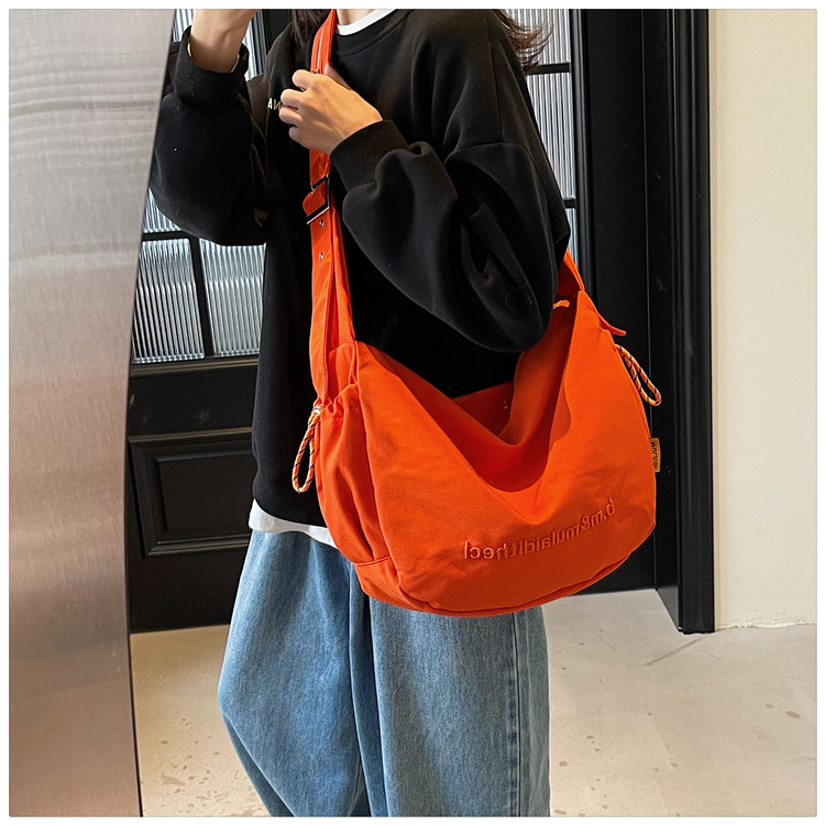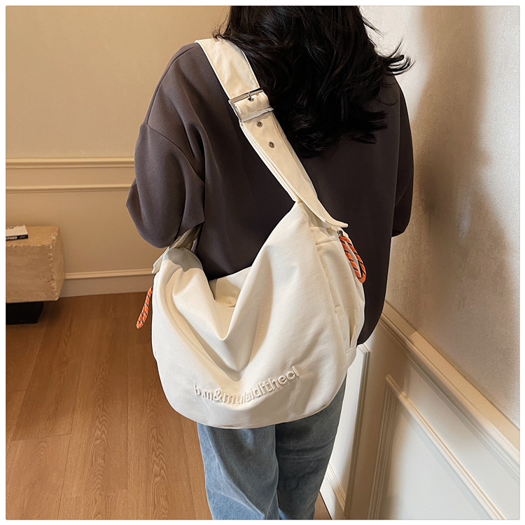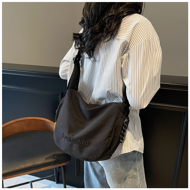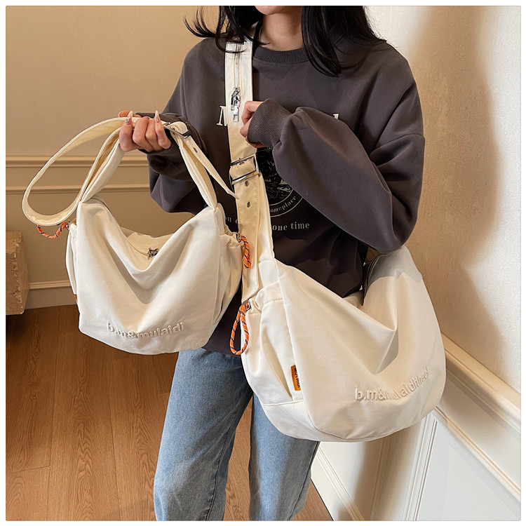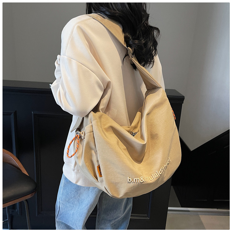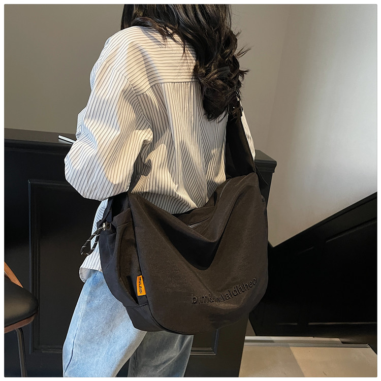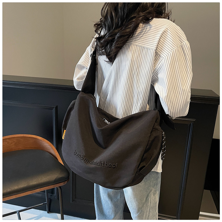 Canvas Bag for Women 2025 New Trendy Men's Dumpling Bag for Work and Commuting with Letter Design, Large Capacity, Single Shoulder Crossbody Bag