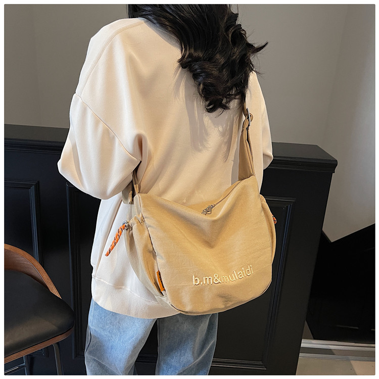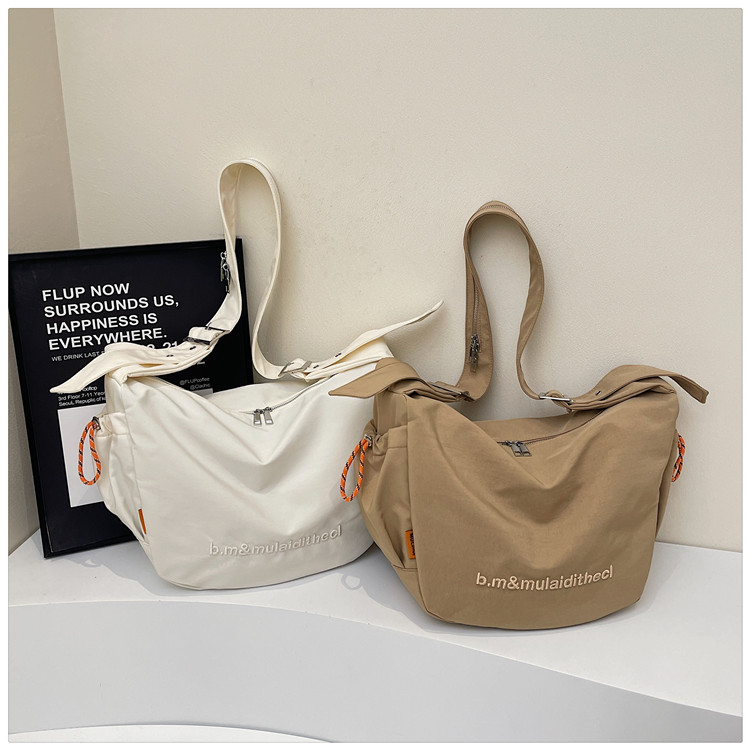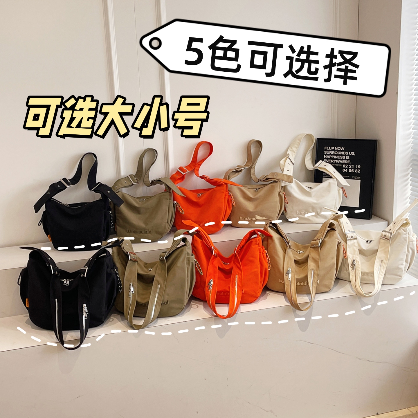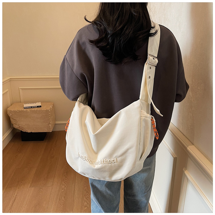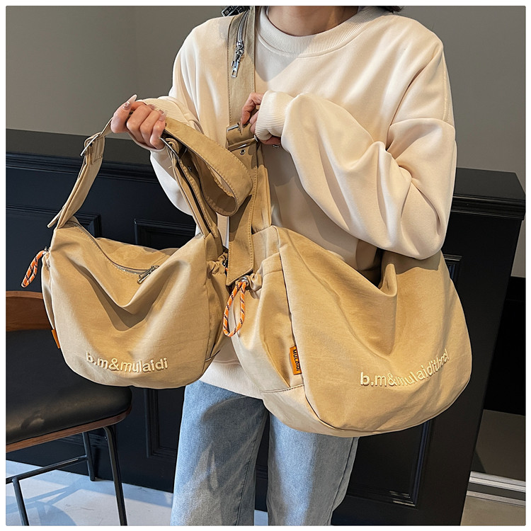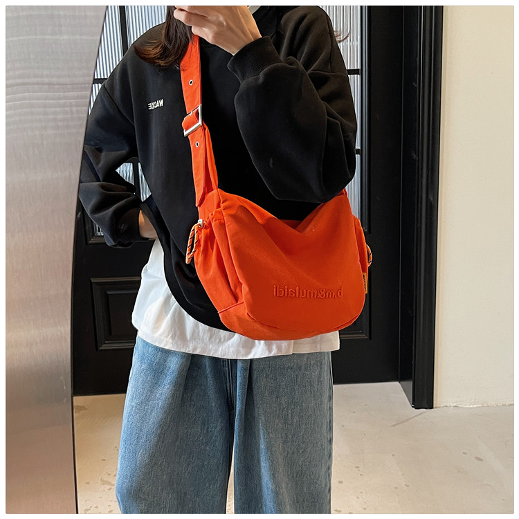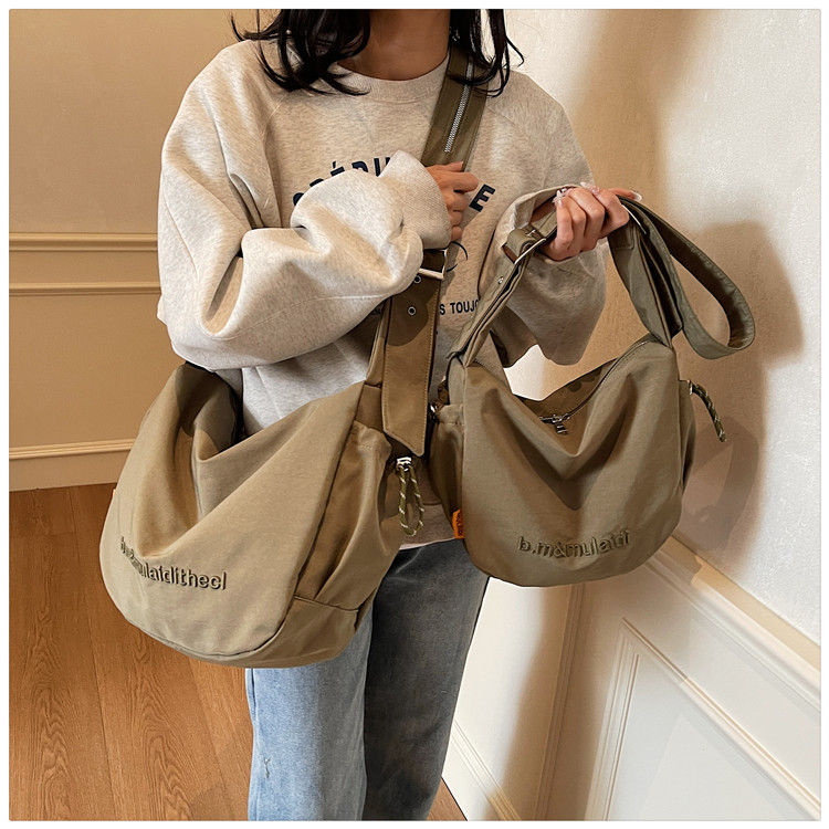 Canvas Bag for Women 2025 New Trendy Men's Dumpling Bag for Work and Commuting with Letter Design, Large Capacity, Single Shoulder Crossbody Bag