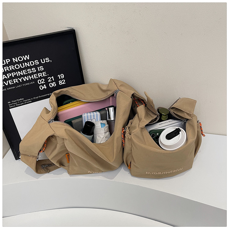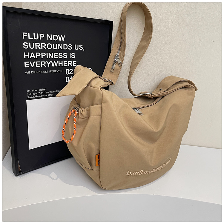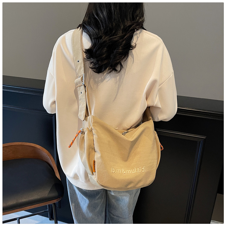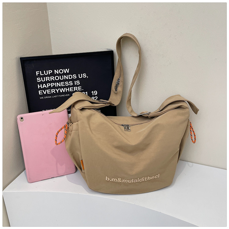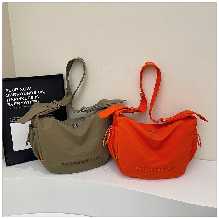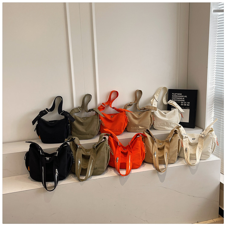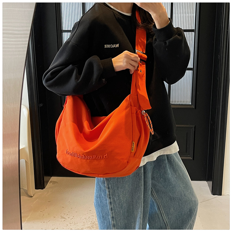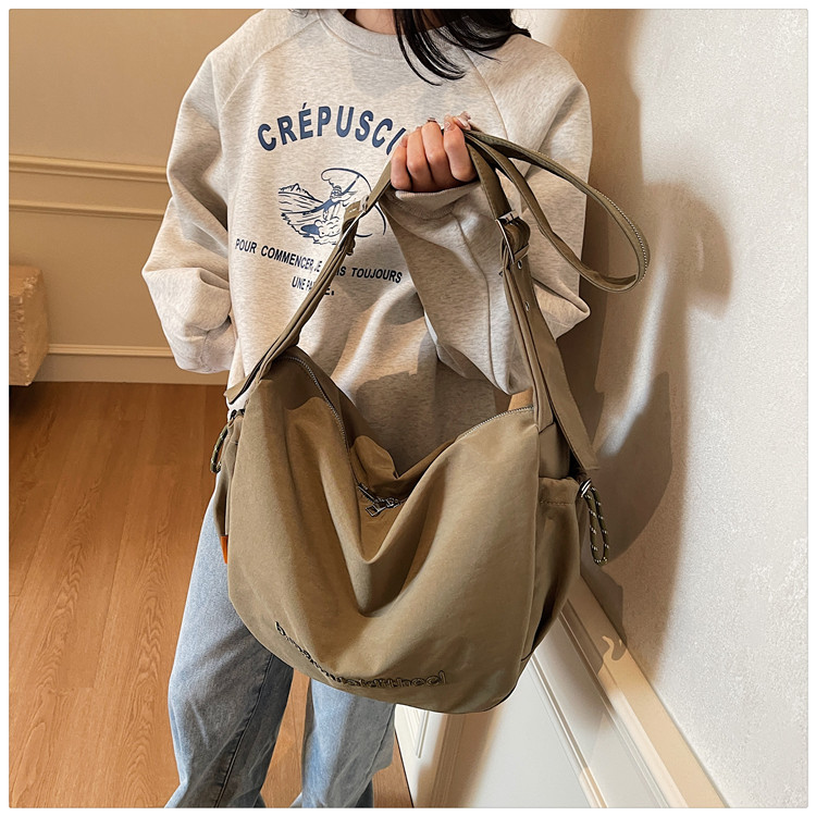 Canvas Bag for Women 2025 New Trendy Men's Dumpling Bag for Work and Commuting with Letter Design, Large Capacity, Single Shoulder Crossbody Bag