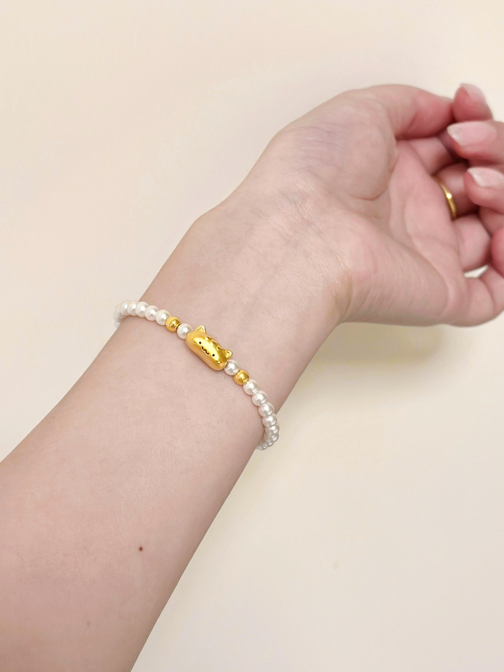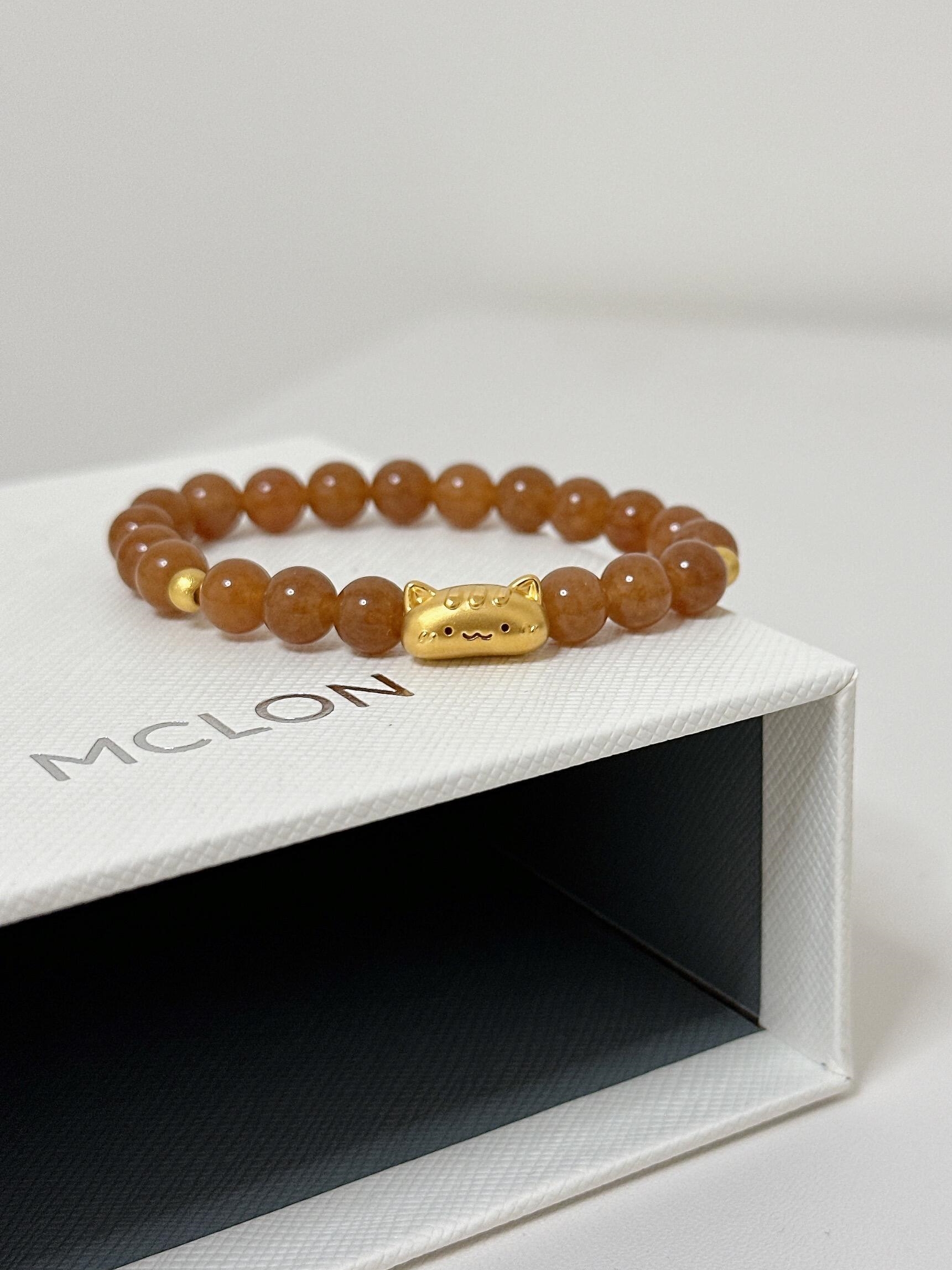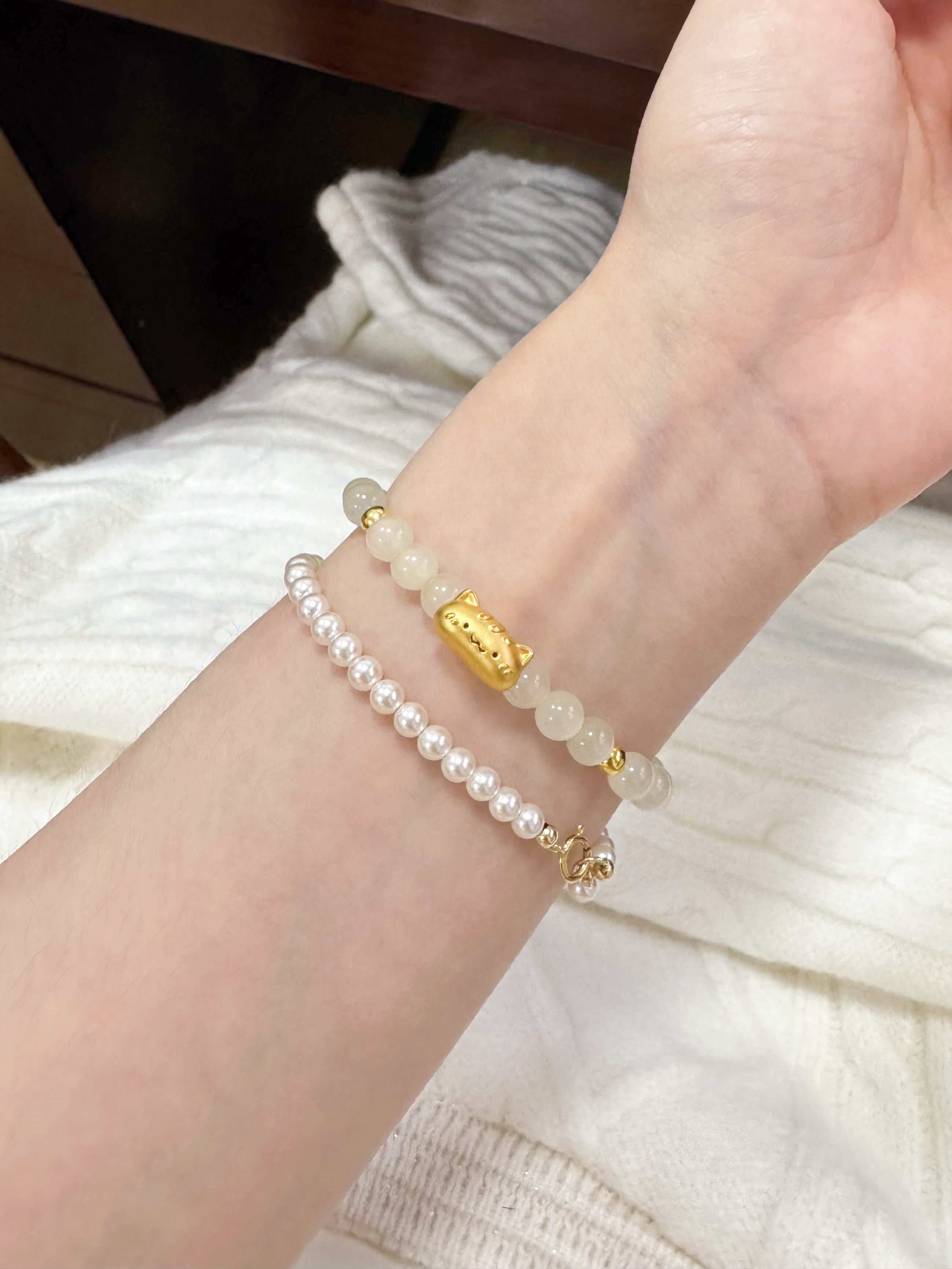 Gold baguette cat hand string gold 999 transfer beads cute cat natural Hetian jade crystal bracelet for girlfriend