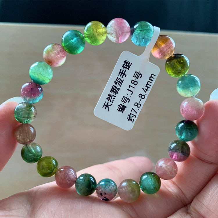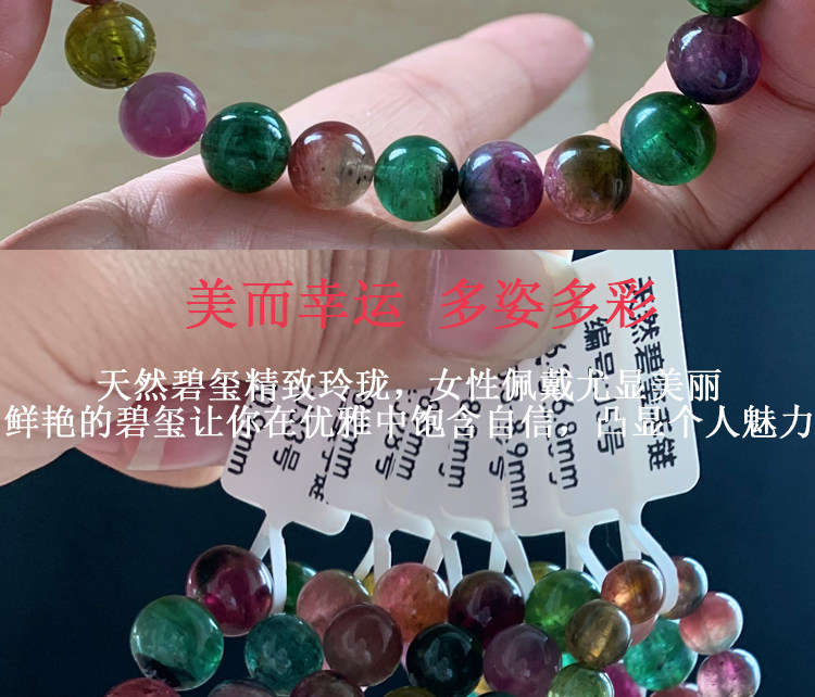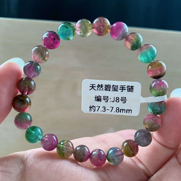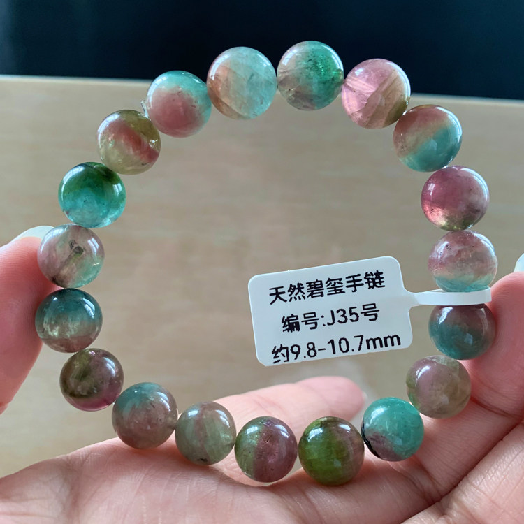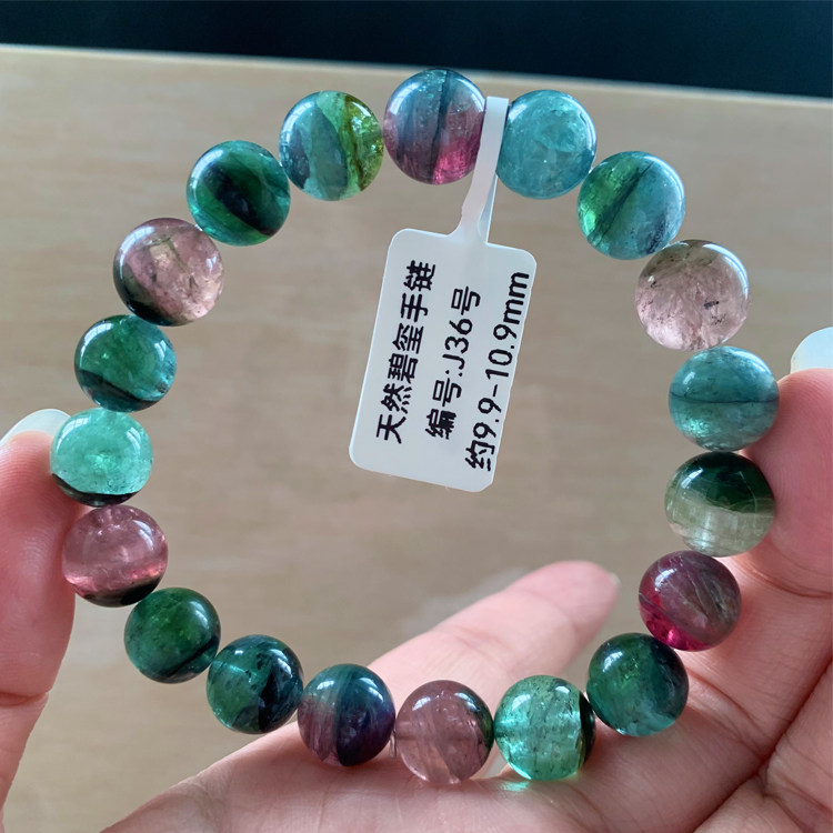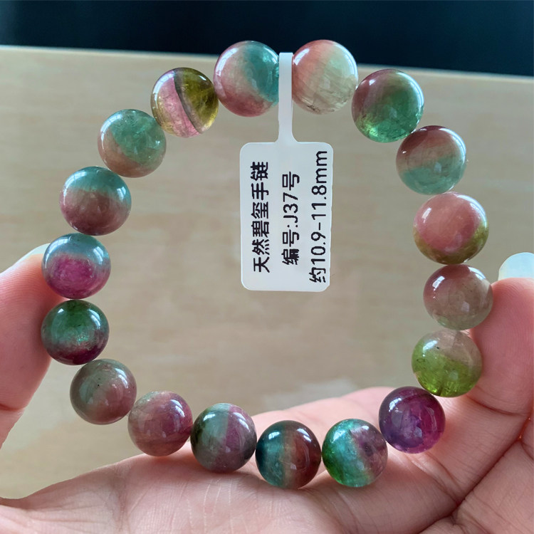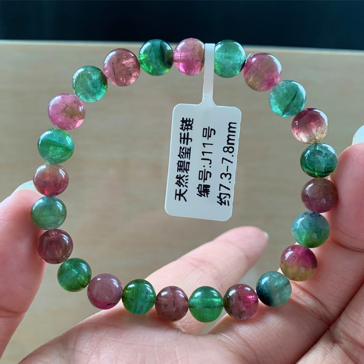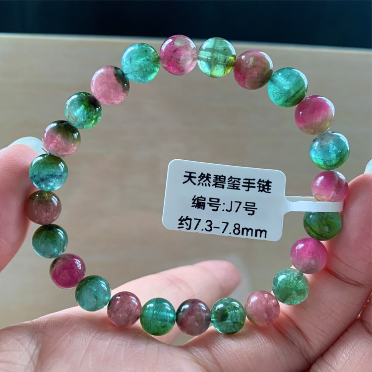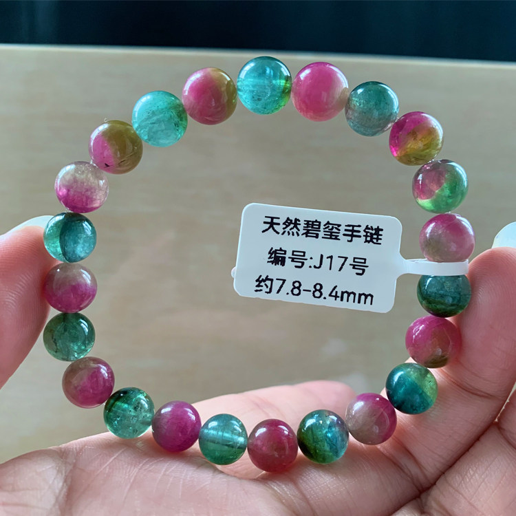 Natural Brazilian Blue Pink Tourmaline Bracelet, Old Mine Watermelon Jewelry, Two-Tone Watermelon Ethnic Style, One Item One Picture