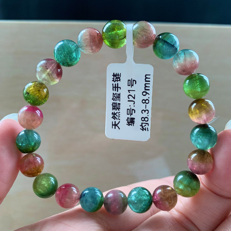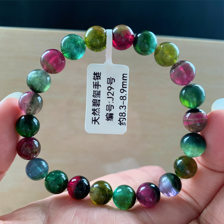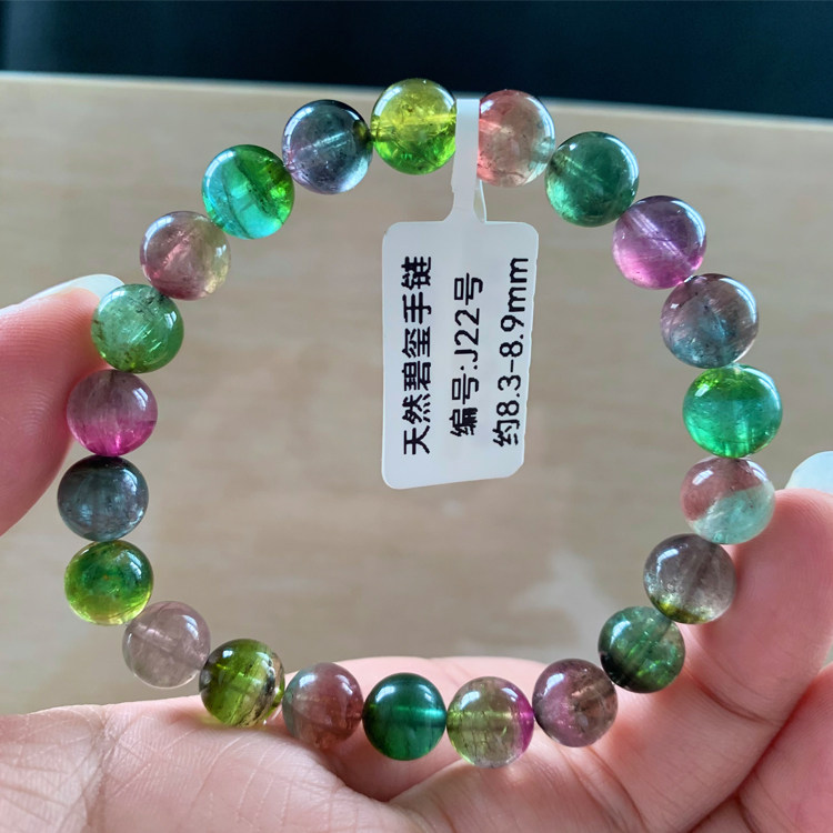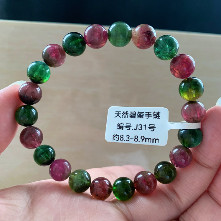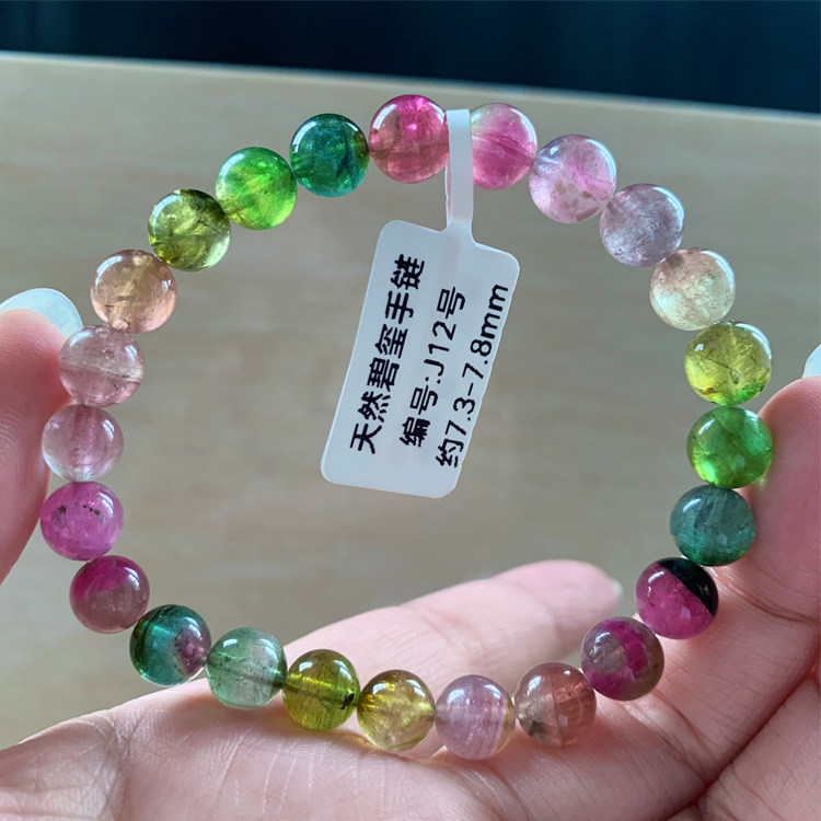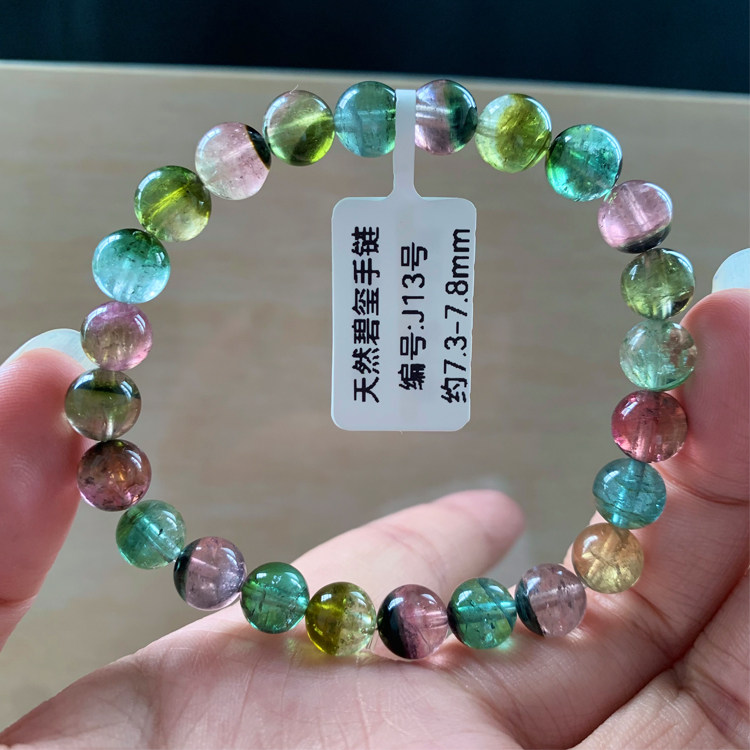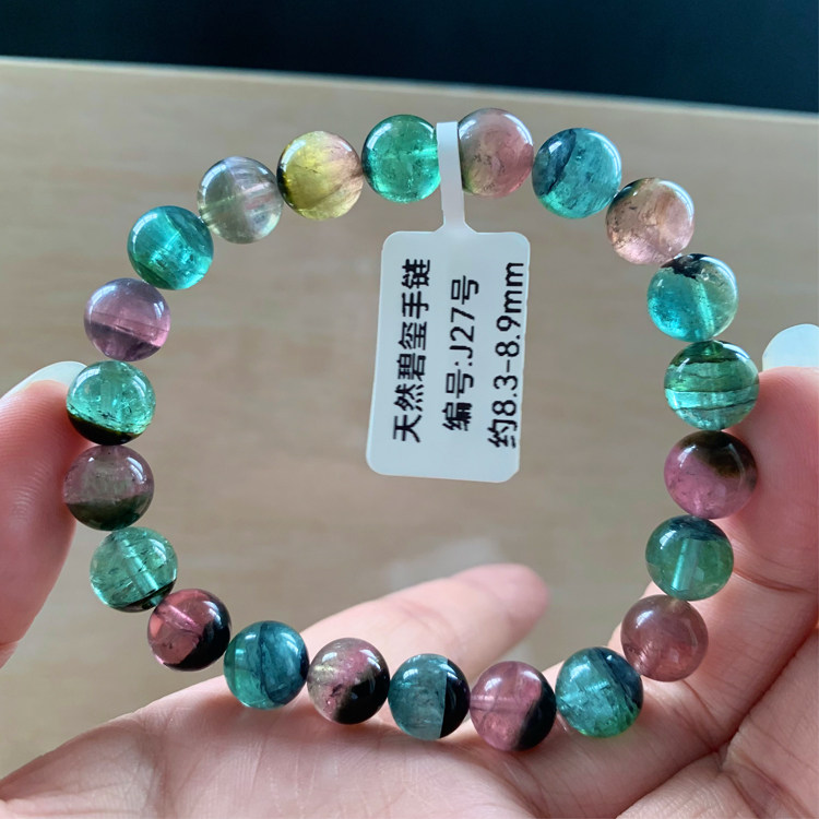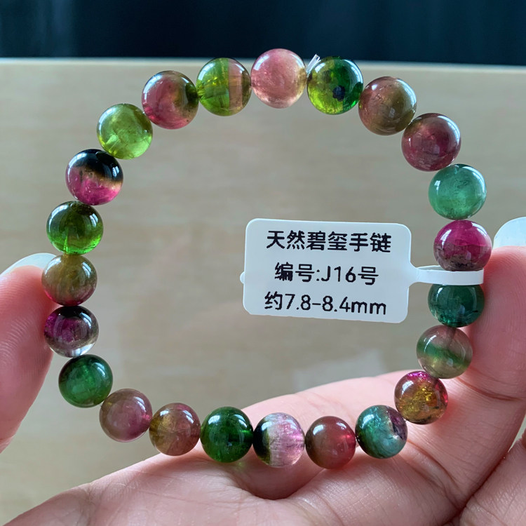 Natural Brazilian Blue Pink Tourmaline Bracelet, Old Mine Watermelon Jewelry, Two-Tone Watermelon Ethnic Style, One Item One Picture