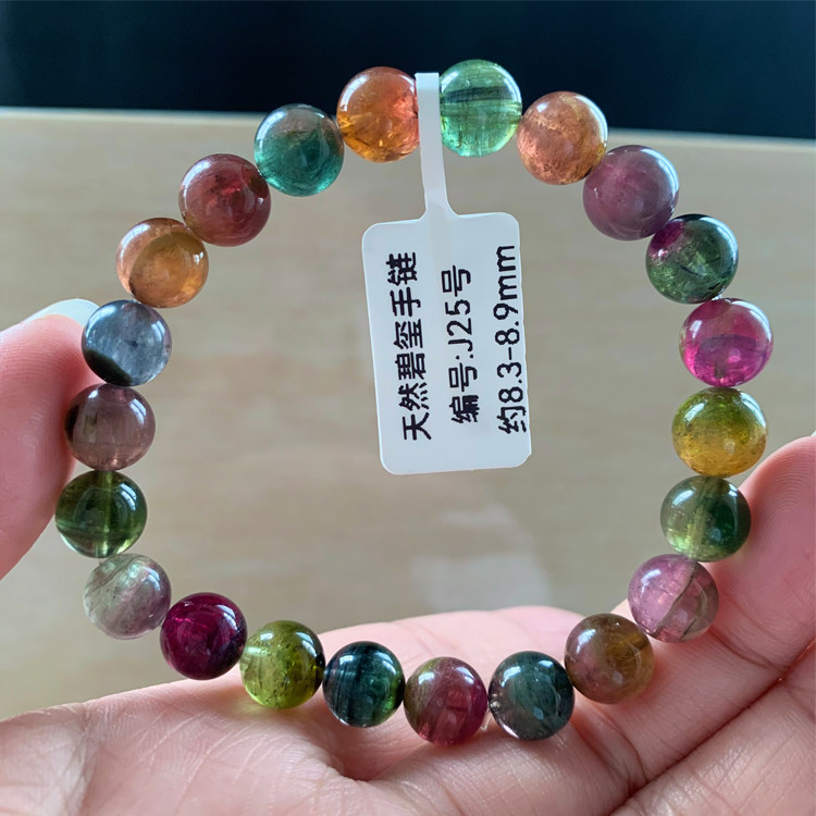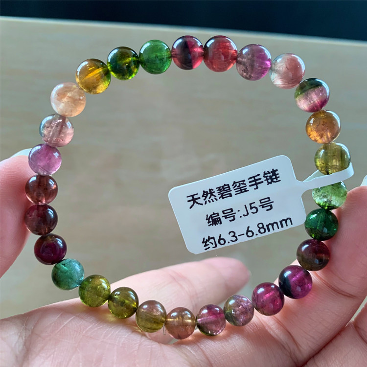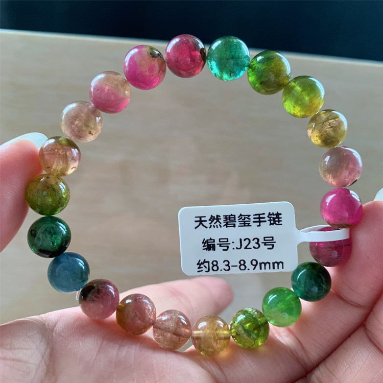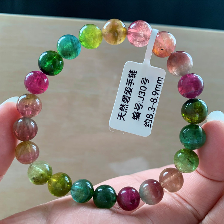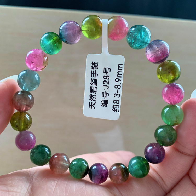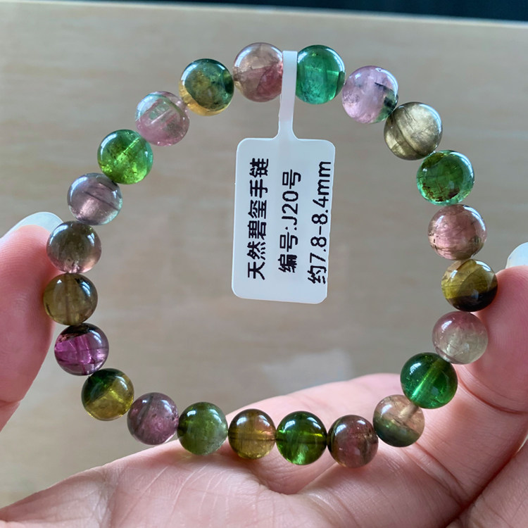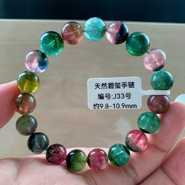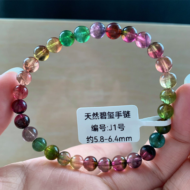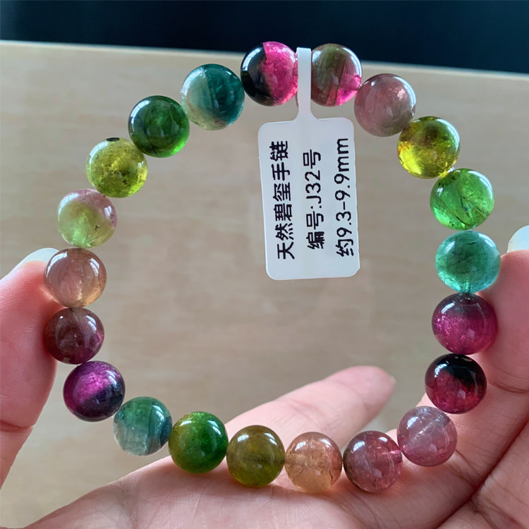 Natural Brazilian Blue Pink Tourmaline Bracelet, Old Mine Watermelon Jewelry, Two-Tone Watermelon Ethnic Style, One Item One Picture