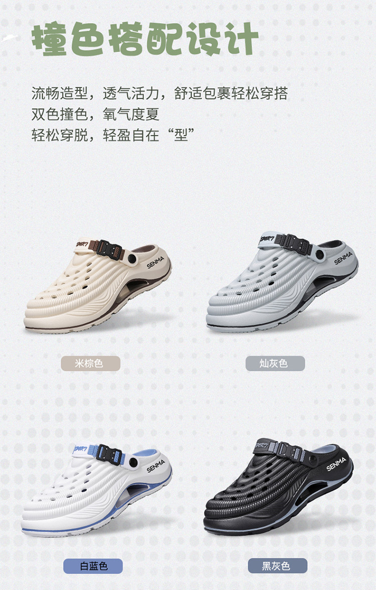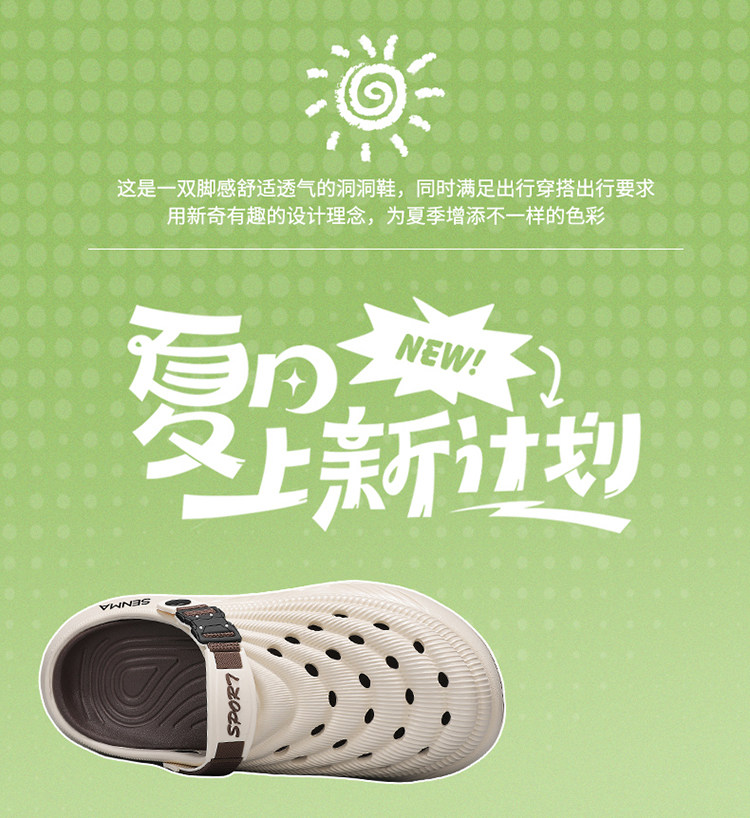 Semir Men's Clogs, Lightweight Outdoor Summer Non-Slip, Odor-Resistant, Closed-Toe Slippers, Fashionable Casual Versatile Beach Sandals