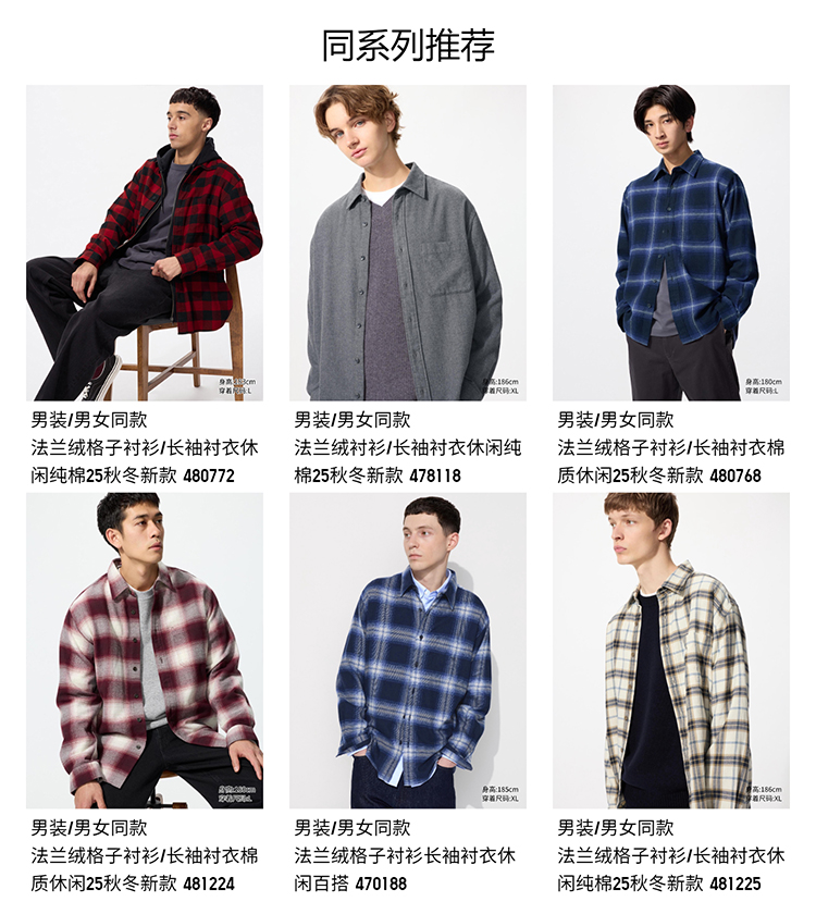Uniqlo Men's and Women's Flannel Plaid Shirt Long-Sleeved Shirt Thin Jacket 25 Autumn and Winter 480771 481227