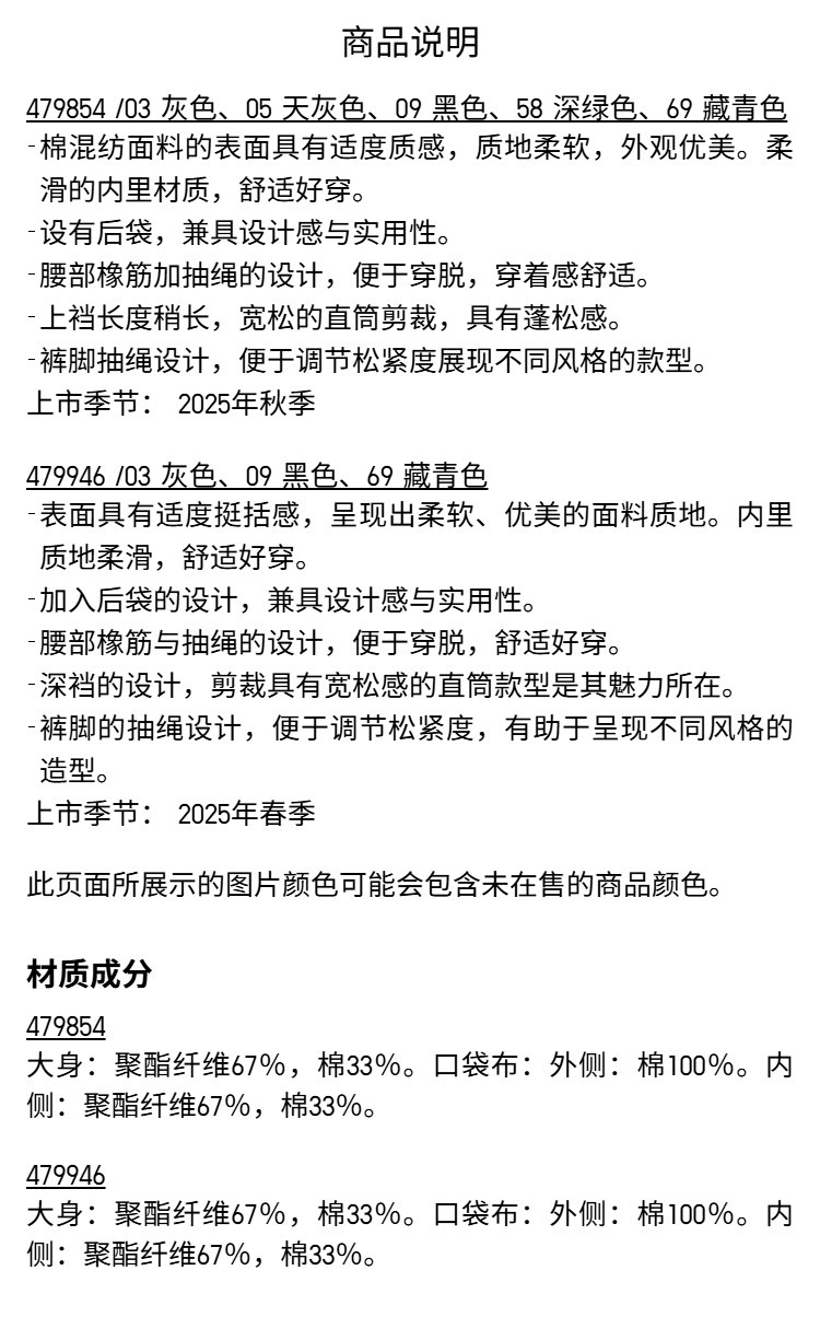 Uniqlo Collaboration Men's and Women's Loose-Fitting Sports Pants Casual Pants Regular Style 479854 479946