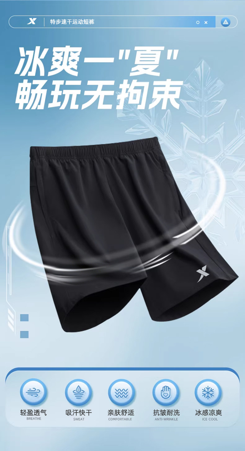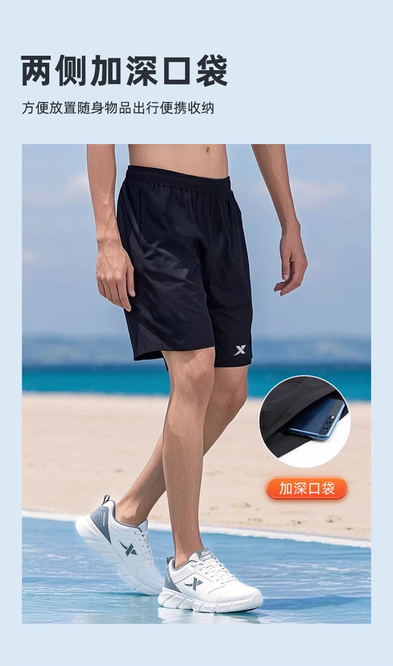Xtep Shorts Summer Breathable Thin Ice Silk Five-Point Pants Official Genuine Men's Running Fitness Quick-Dry Sports Pants
