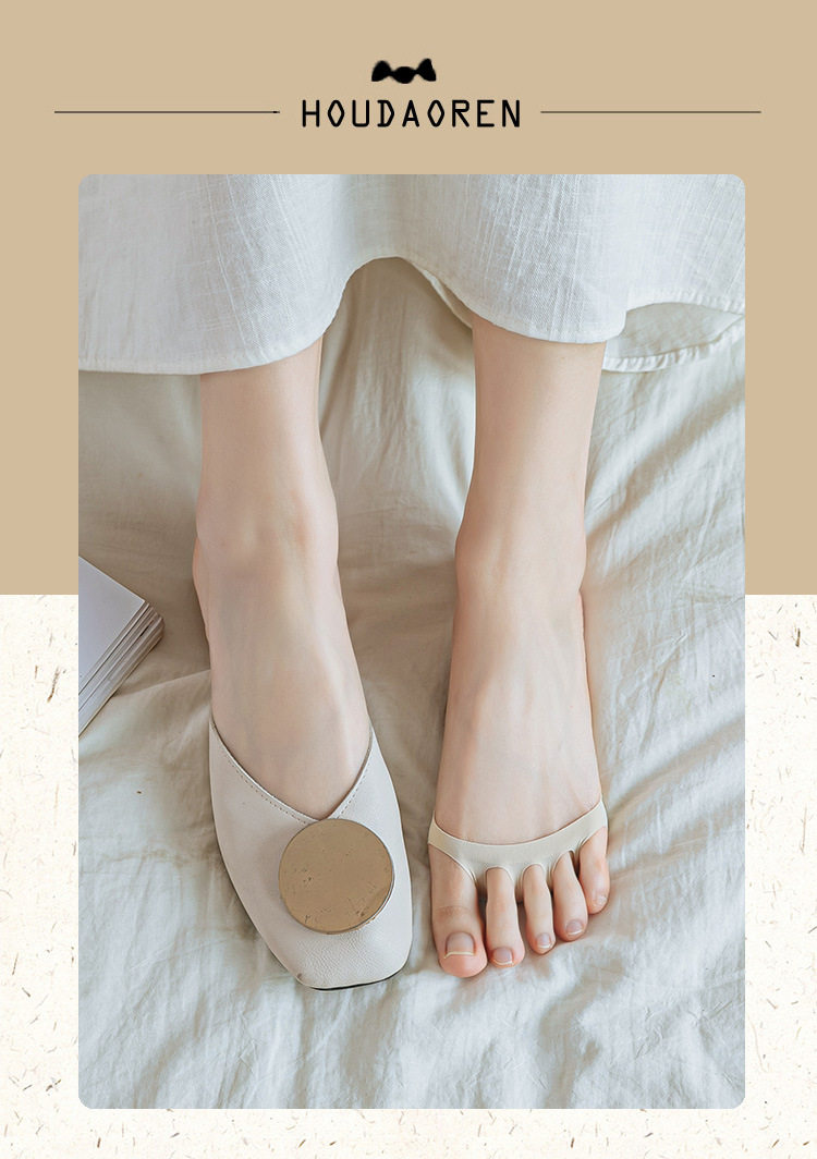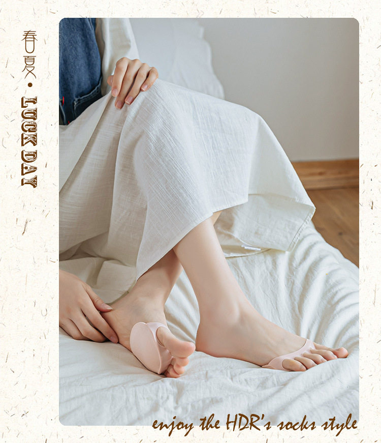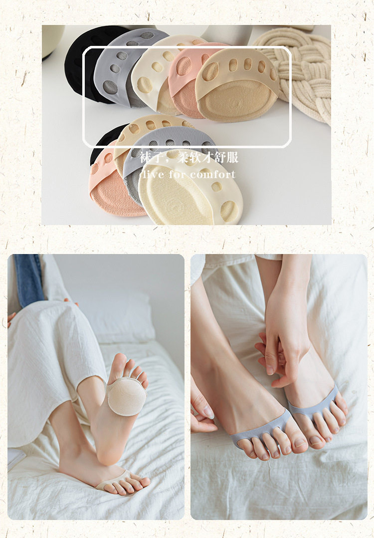 Women's Five-Toe Socks, Invisible Half-Foot Socks, Summer Non-Slip Cotton Half-Cut Boat Socks, Split-Toe High Heel Socks
