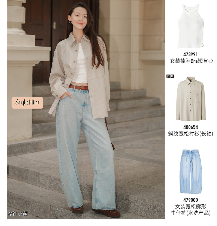 Uniqlo Collaboration/ Men's and Women's Twill Loose Shirt/Long-Sleeved Shirt 25 Autumn/Winter New Style 480654