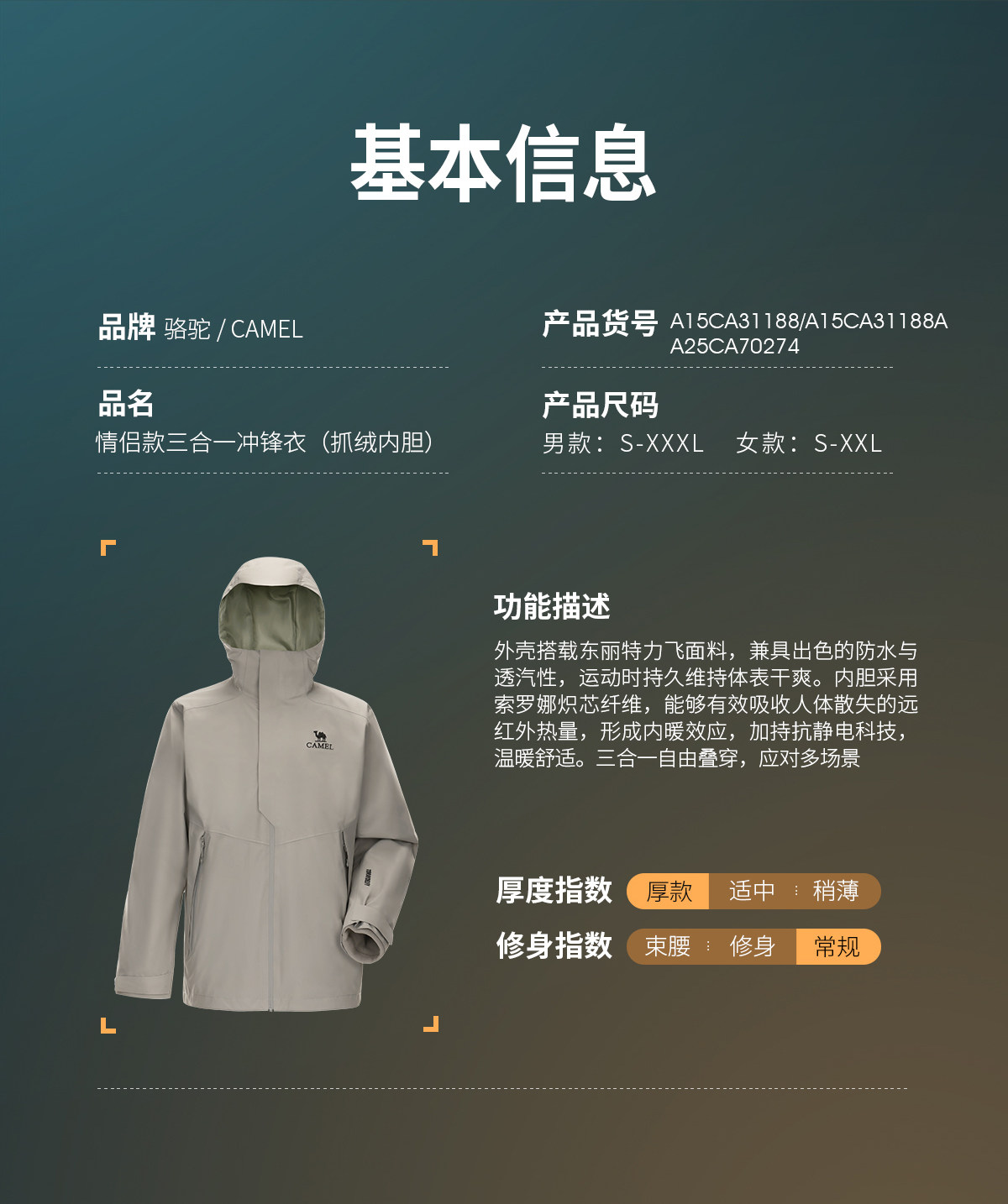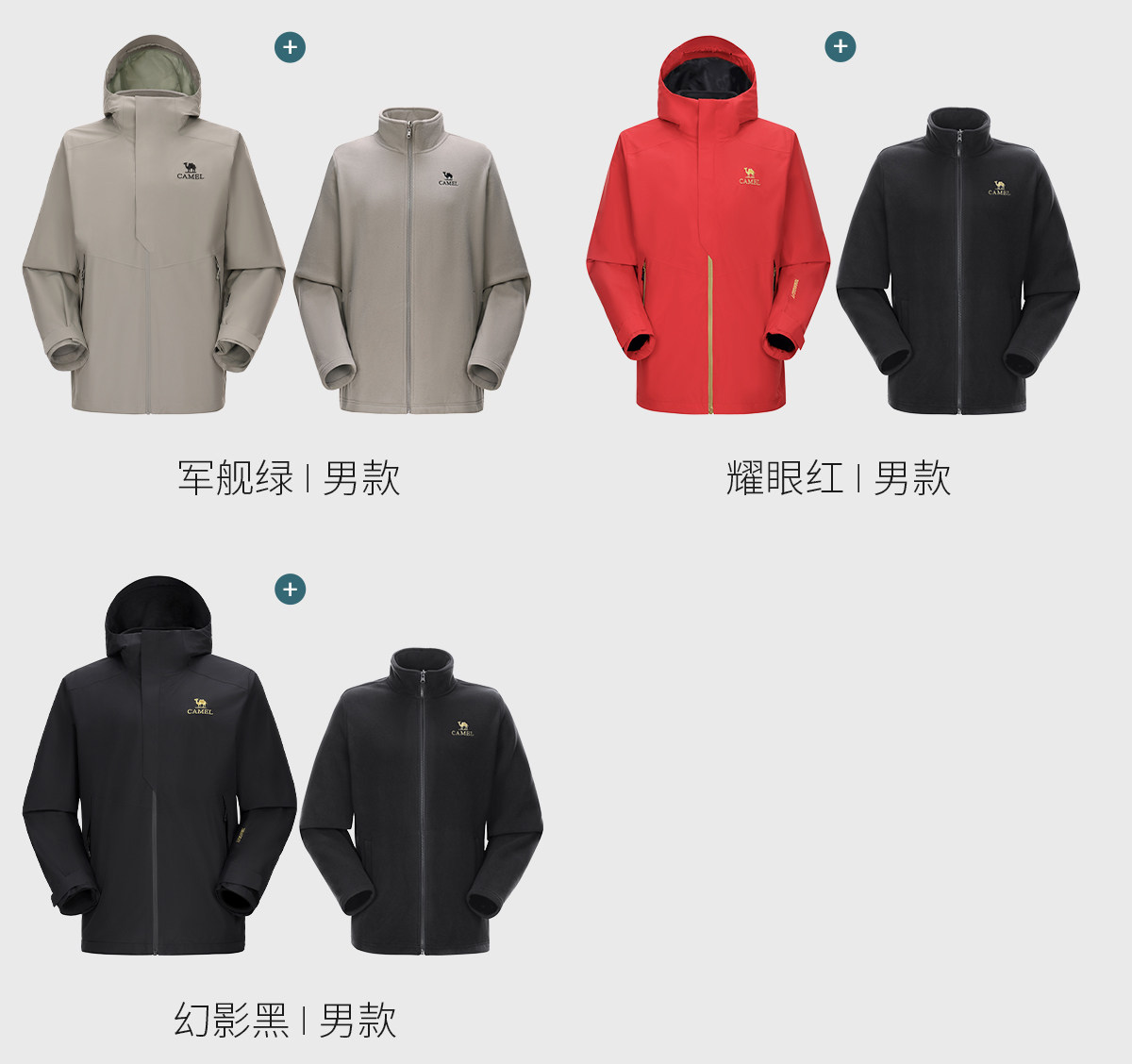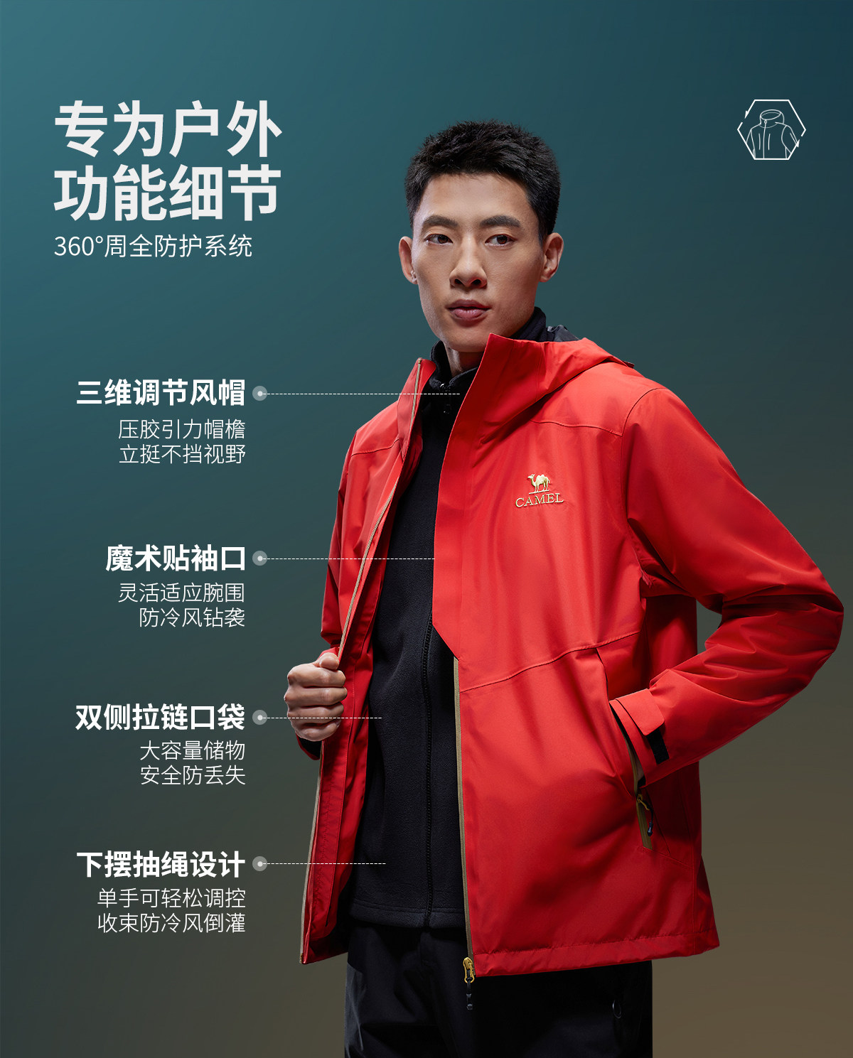 Camel Brand Three-In-One Outdoor Jacket King Kai X Gold Label Men's Professional Waterproof Liner Mountaineering Jacket Women's