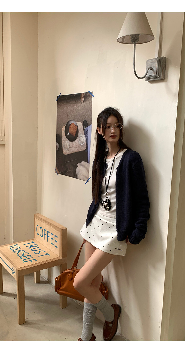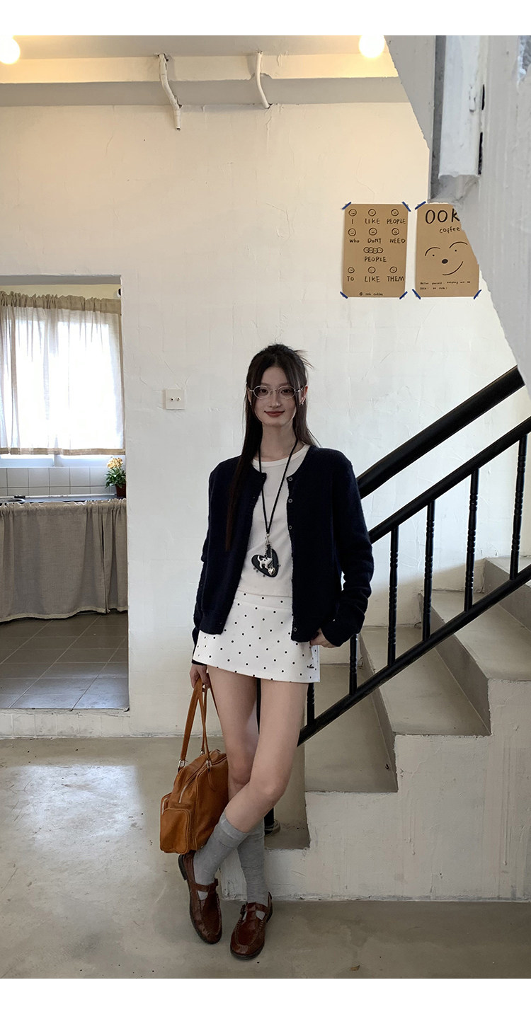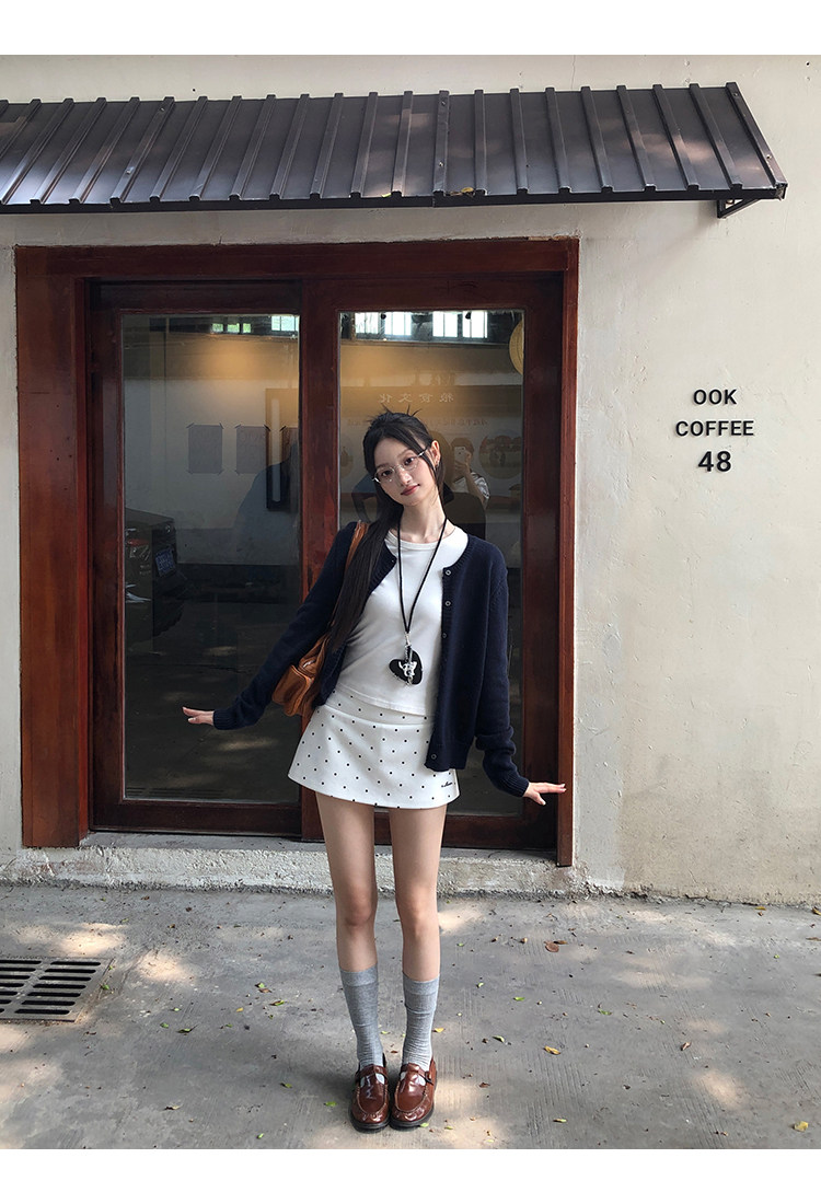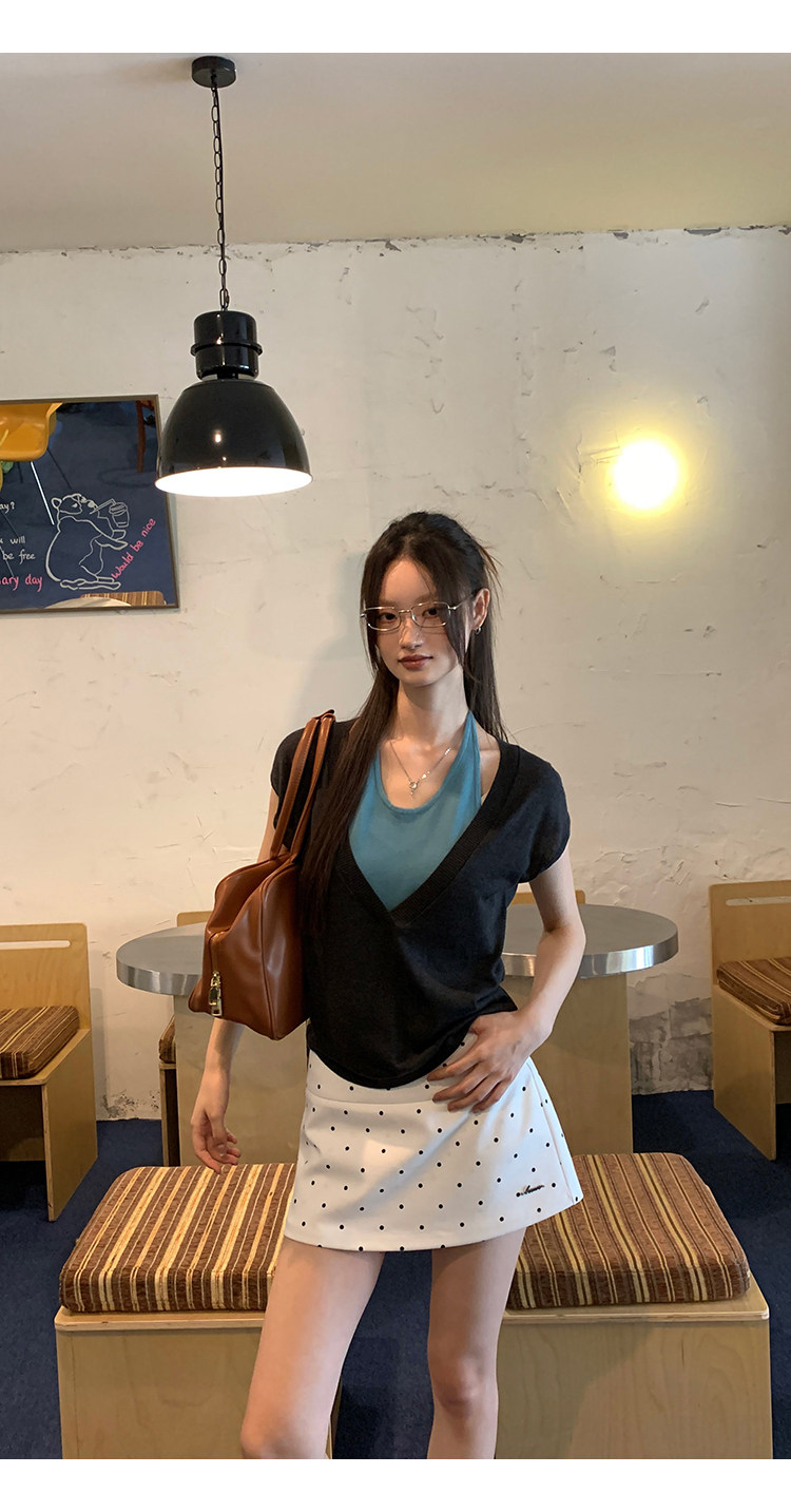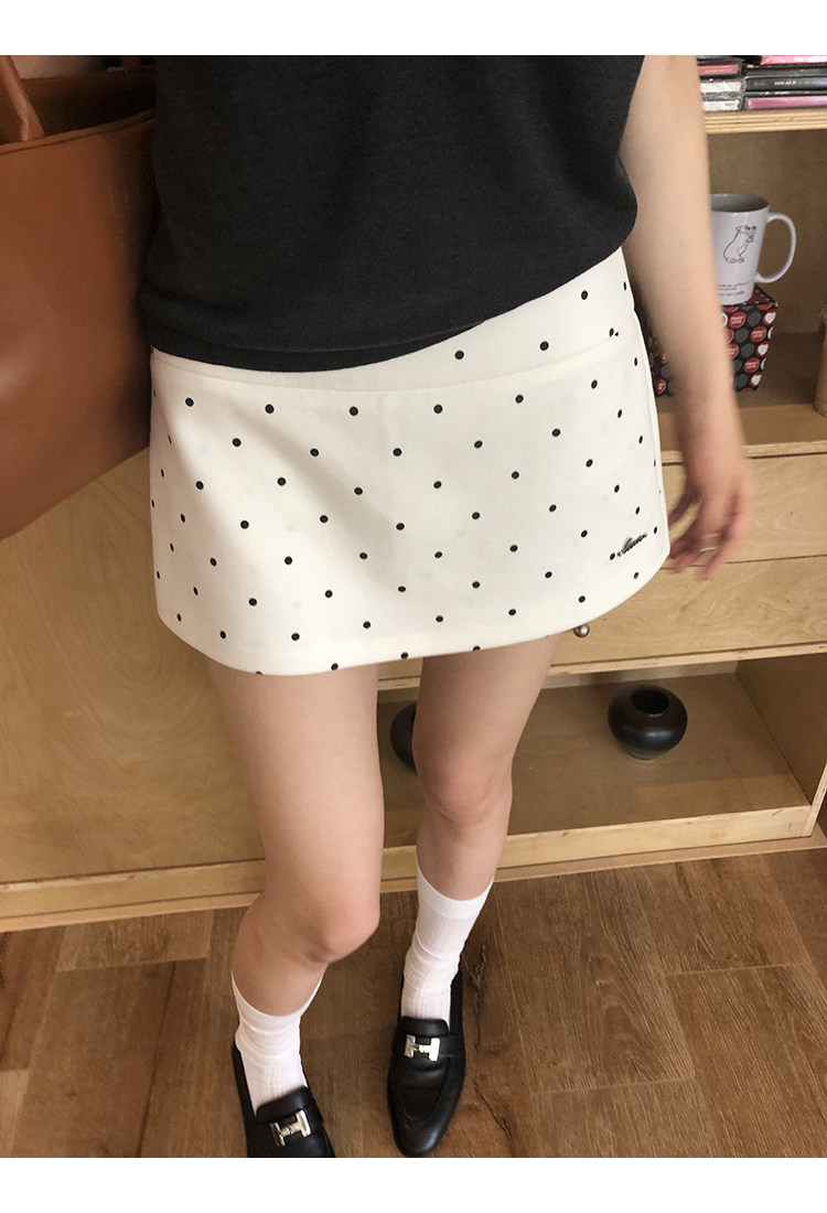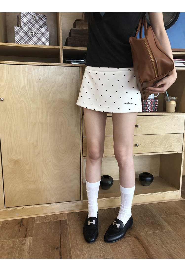 经典黑白波点yong不过时, 外层短裙俏皮,内层短裤防走光, 日常出街、运动健身都适配 高腰勾勒腰线,金属字母标添精致感, 面料舒适又好搭,一键解锁甜酷风格, 谁穿谁爱上