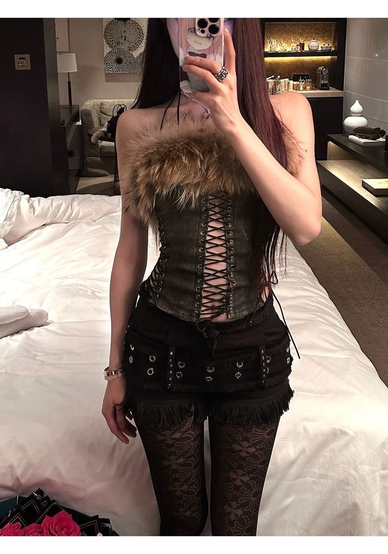 【Versatile Styles】Furry Belt for Women Pu Leather Patchwork Bohemian Vintage Niche ins Accessories