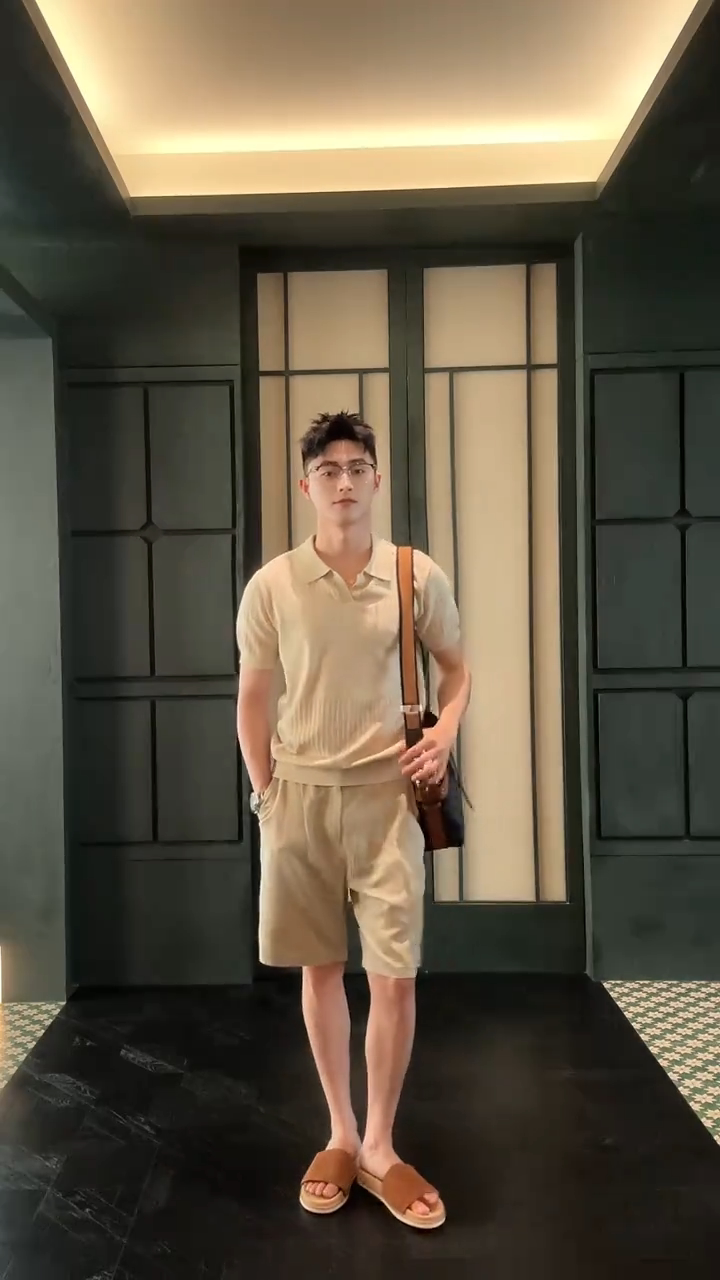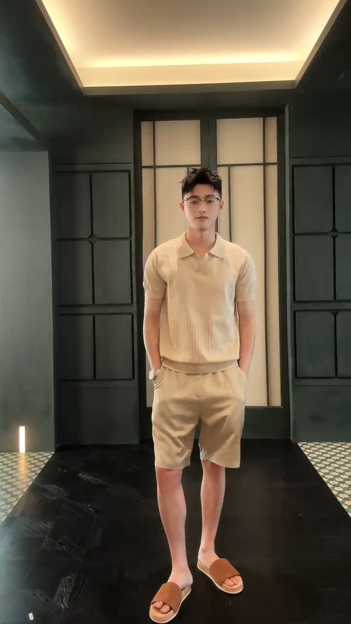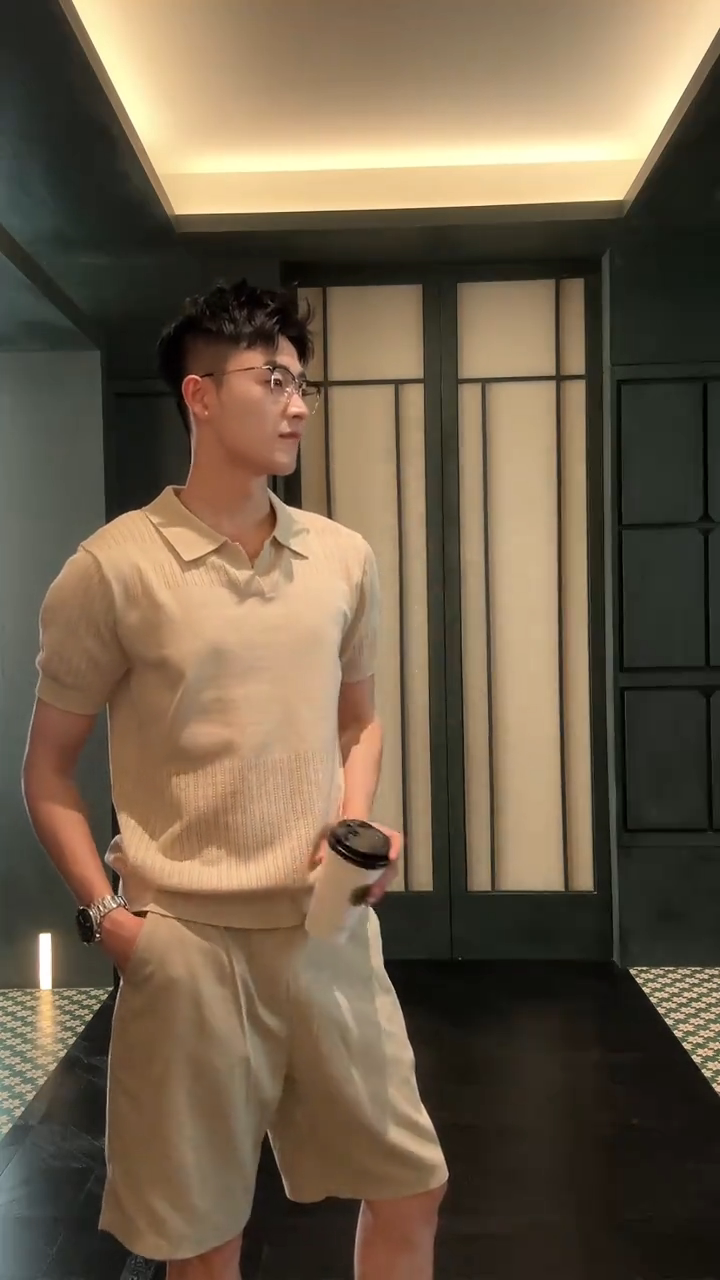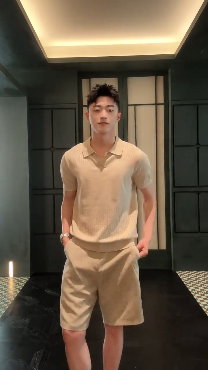 Elegant Old Money Style V-Neck Short-Sleeved Knitted Polo Shirt Set for Men, Summer High-End Commuter Casual Complete Set