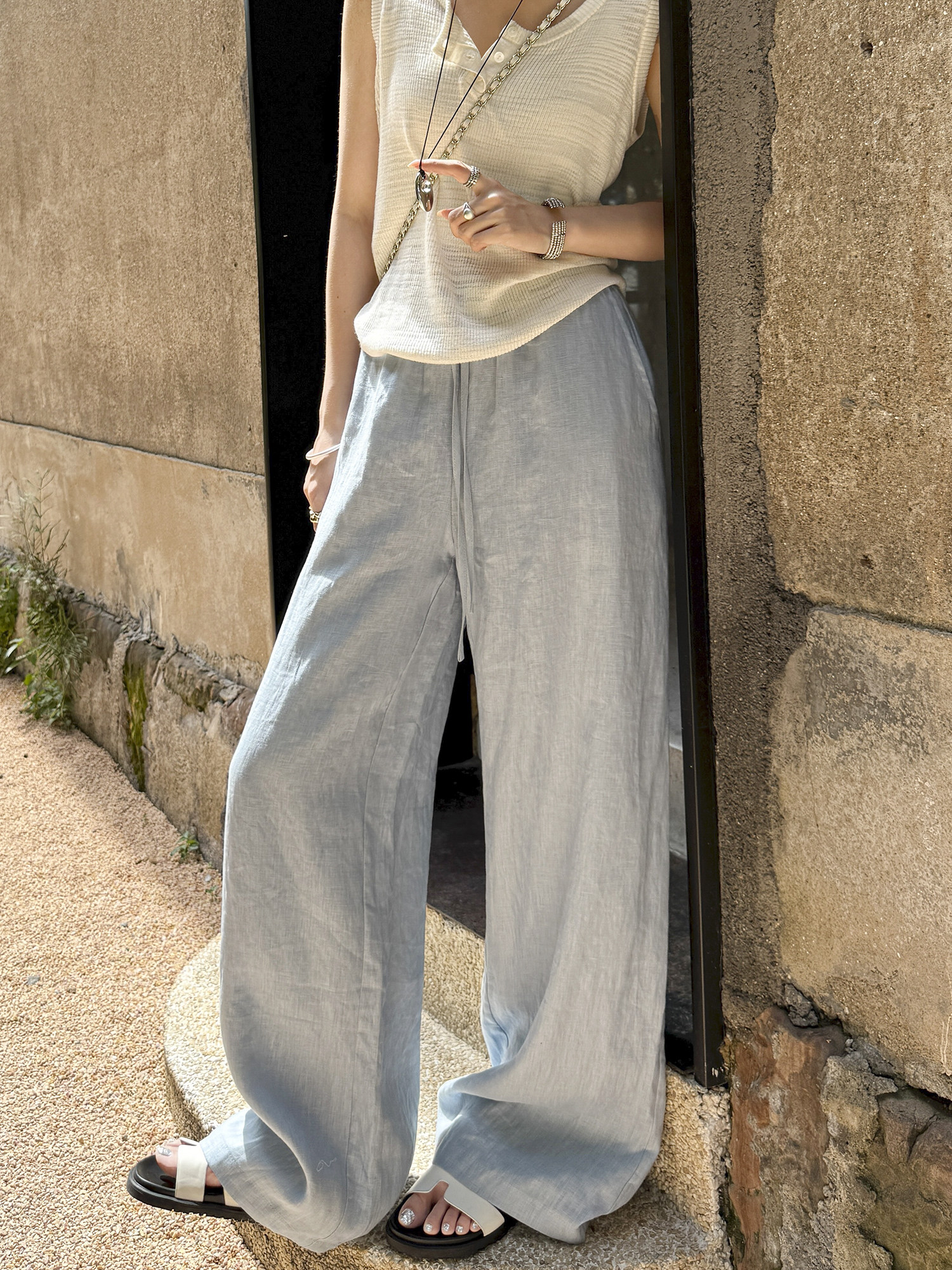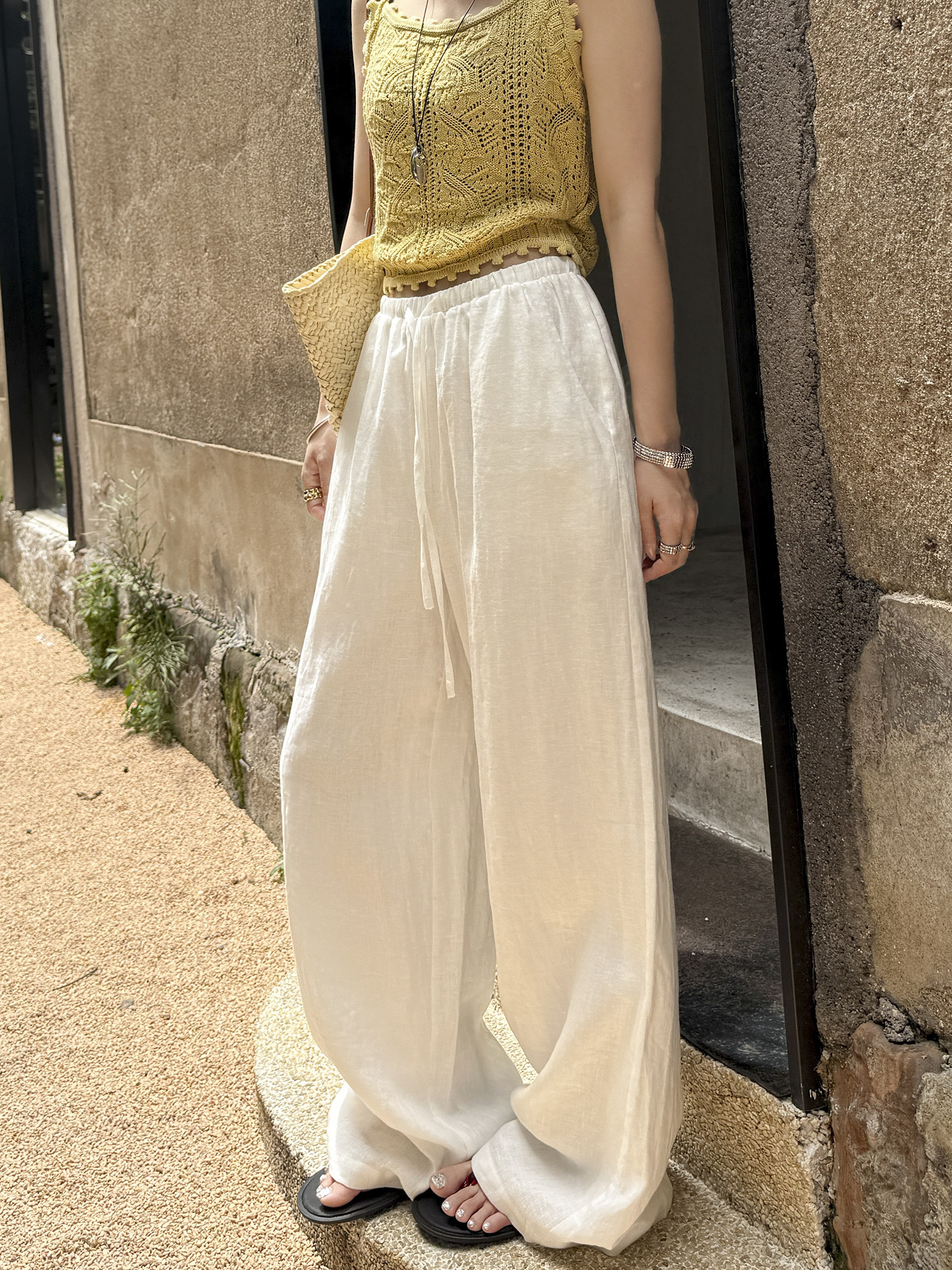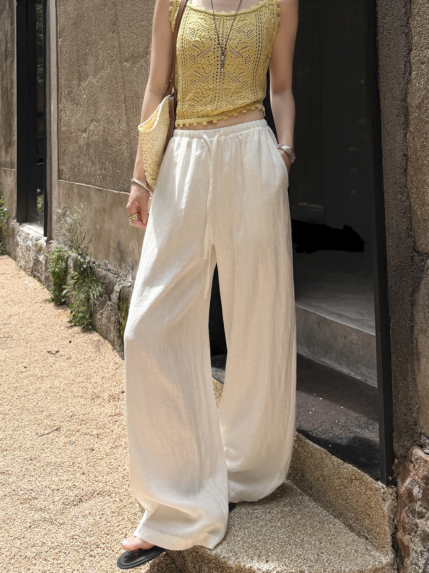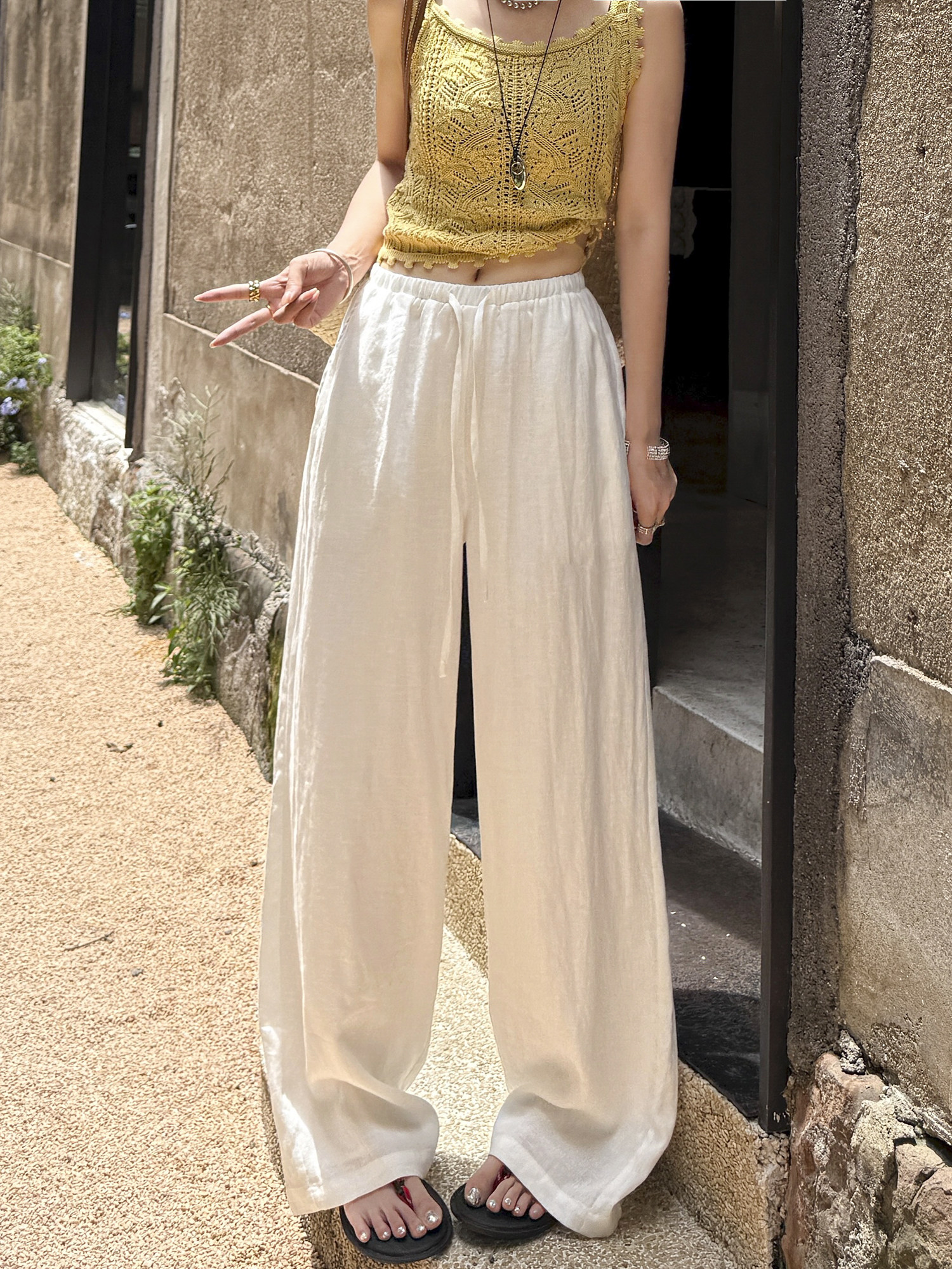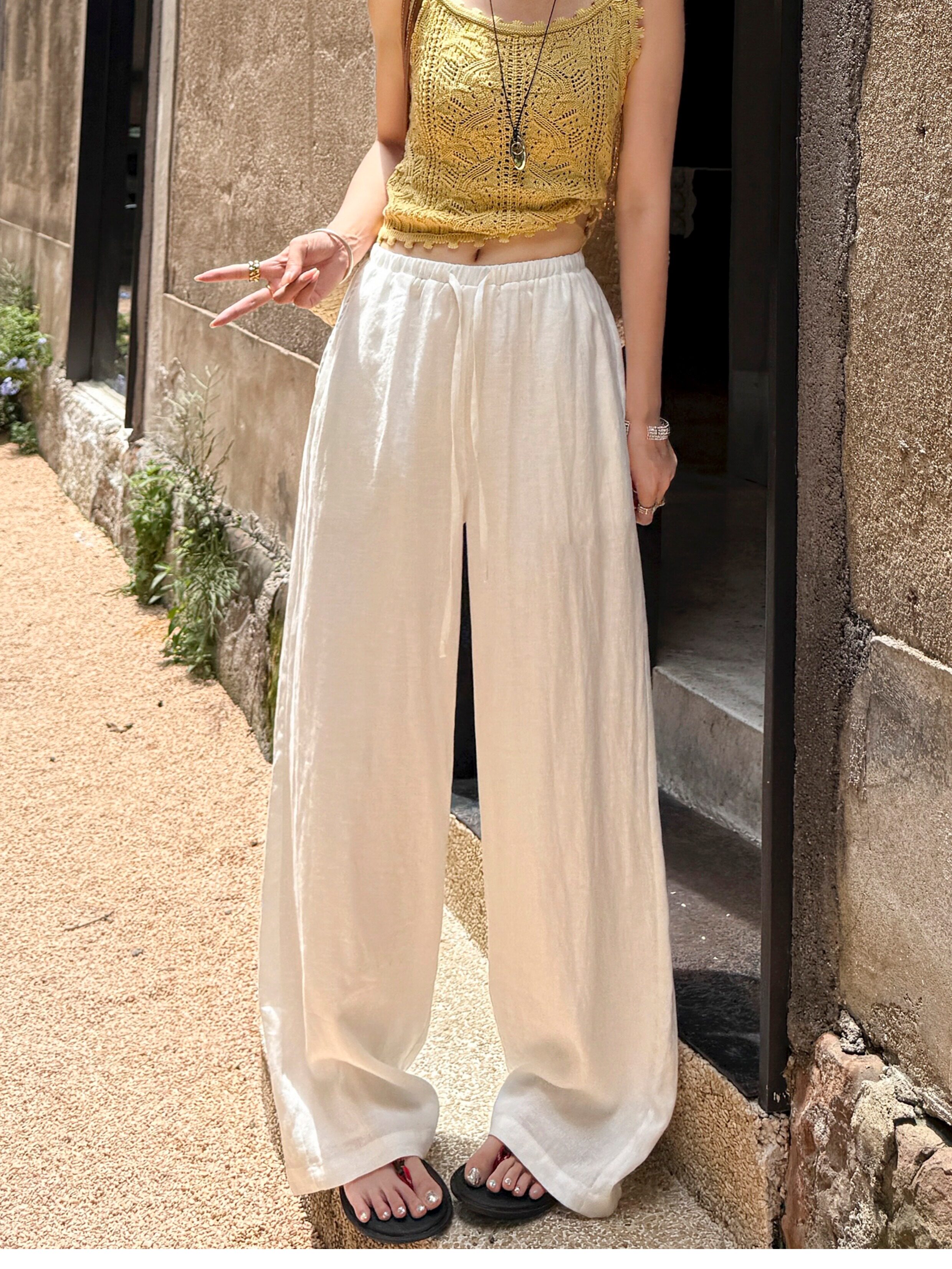 White 100% Linen Pants for Women, Summer 2025, Lightweight, Relaxed, Old Money Style, Straight-Leg Pants, Breathable, Casual Wide-Leg Pants