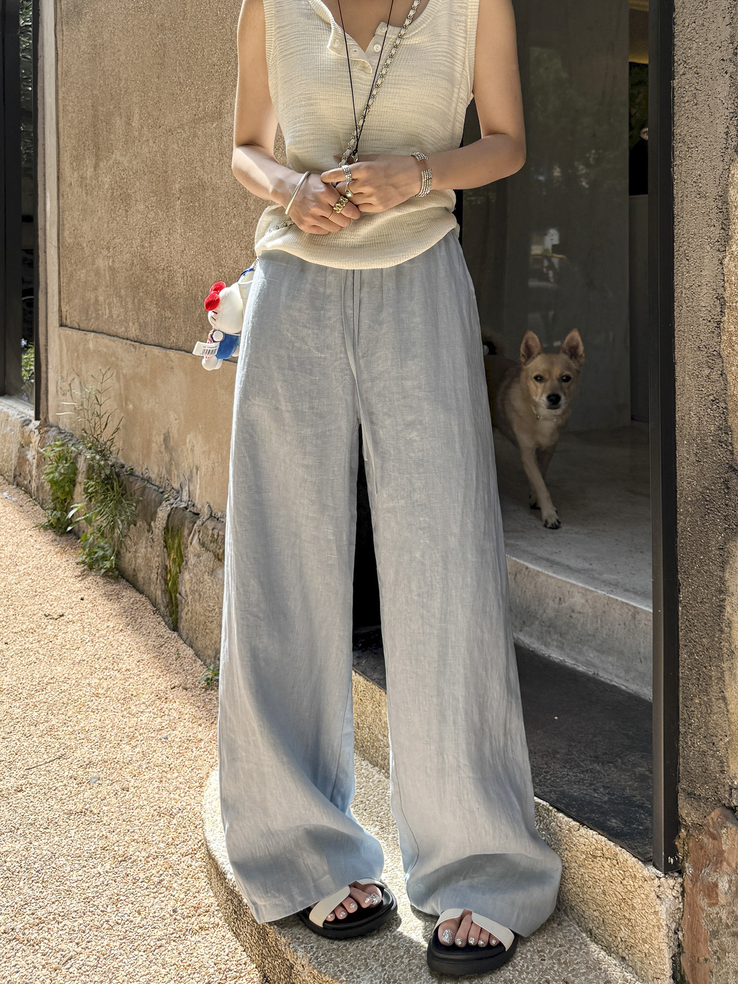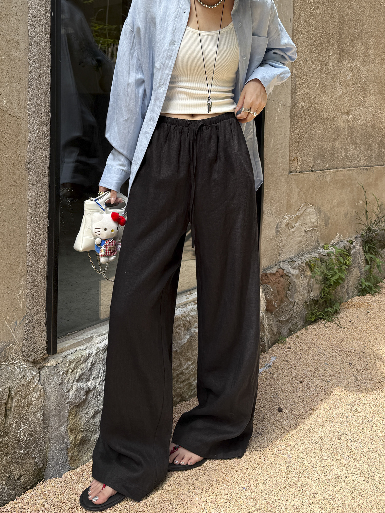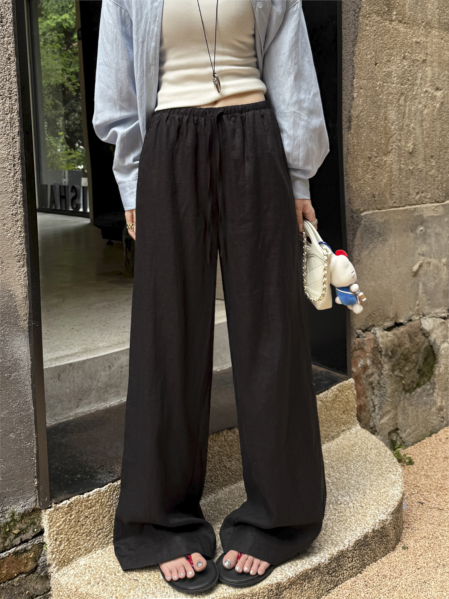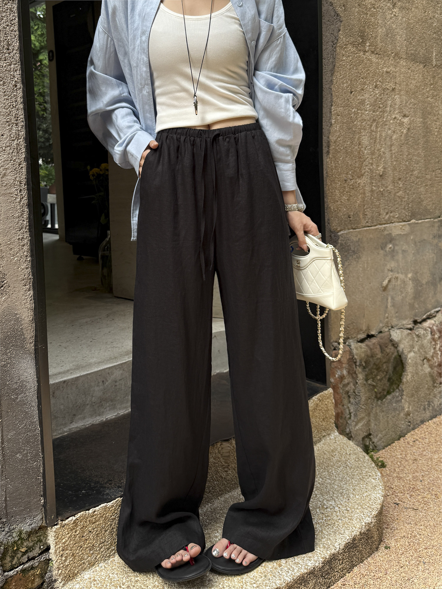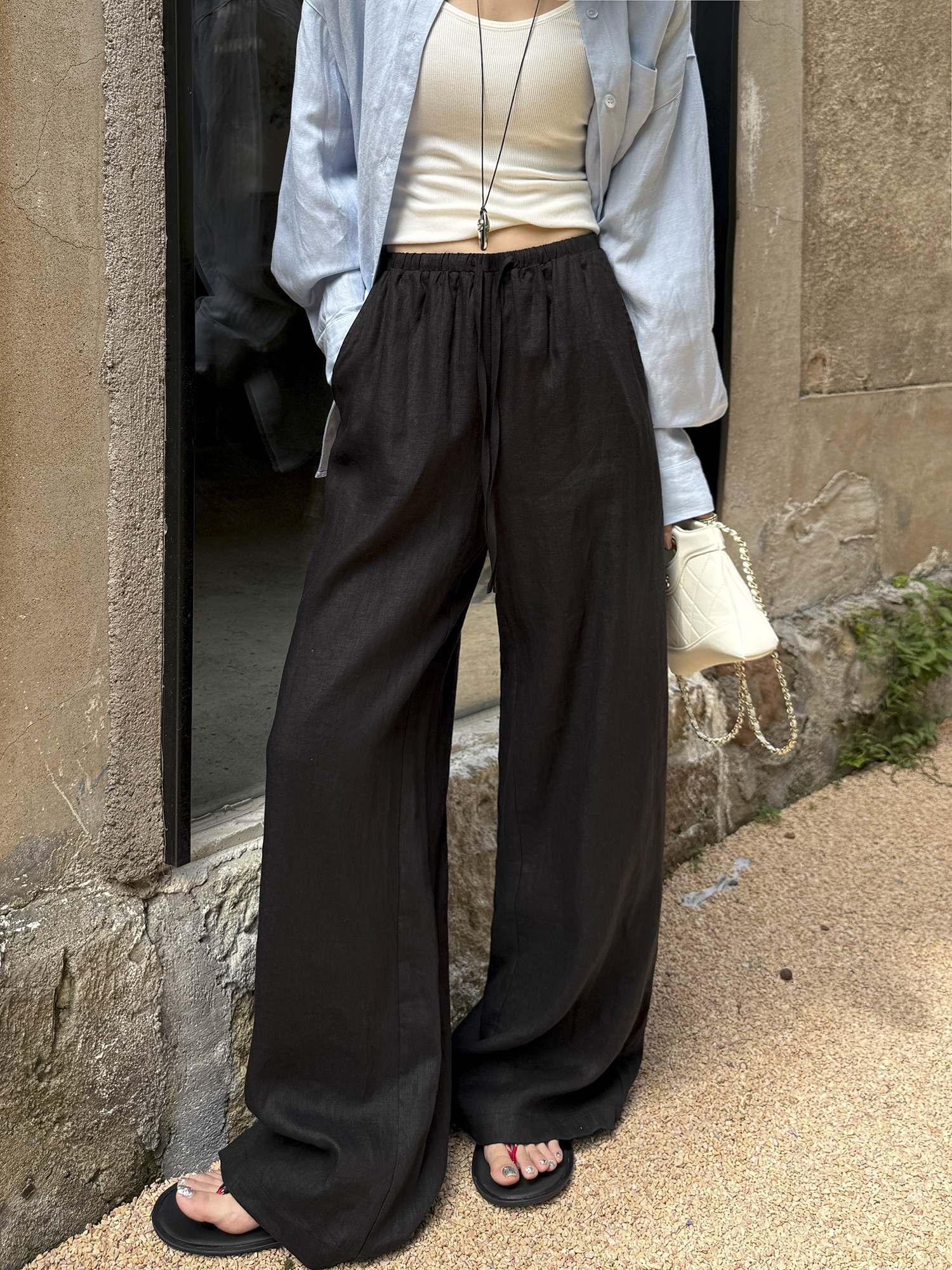 White 100% Linen Pants for Women, Summer 2025, Lightweight, Relaxed, Old Money Style, Straight-Leg Pants, Breathable, Casual Wide-Leg Pants